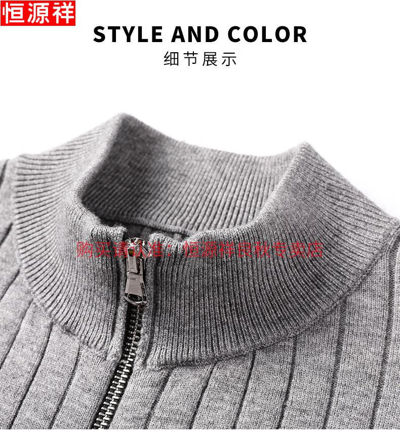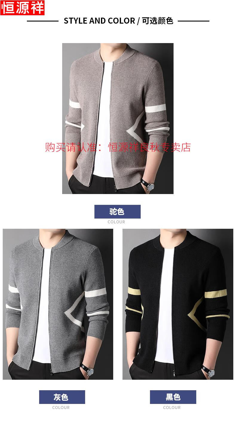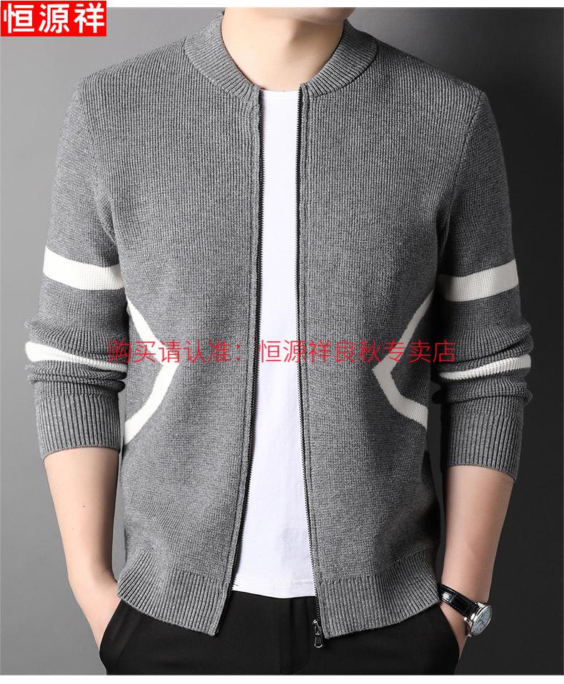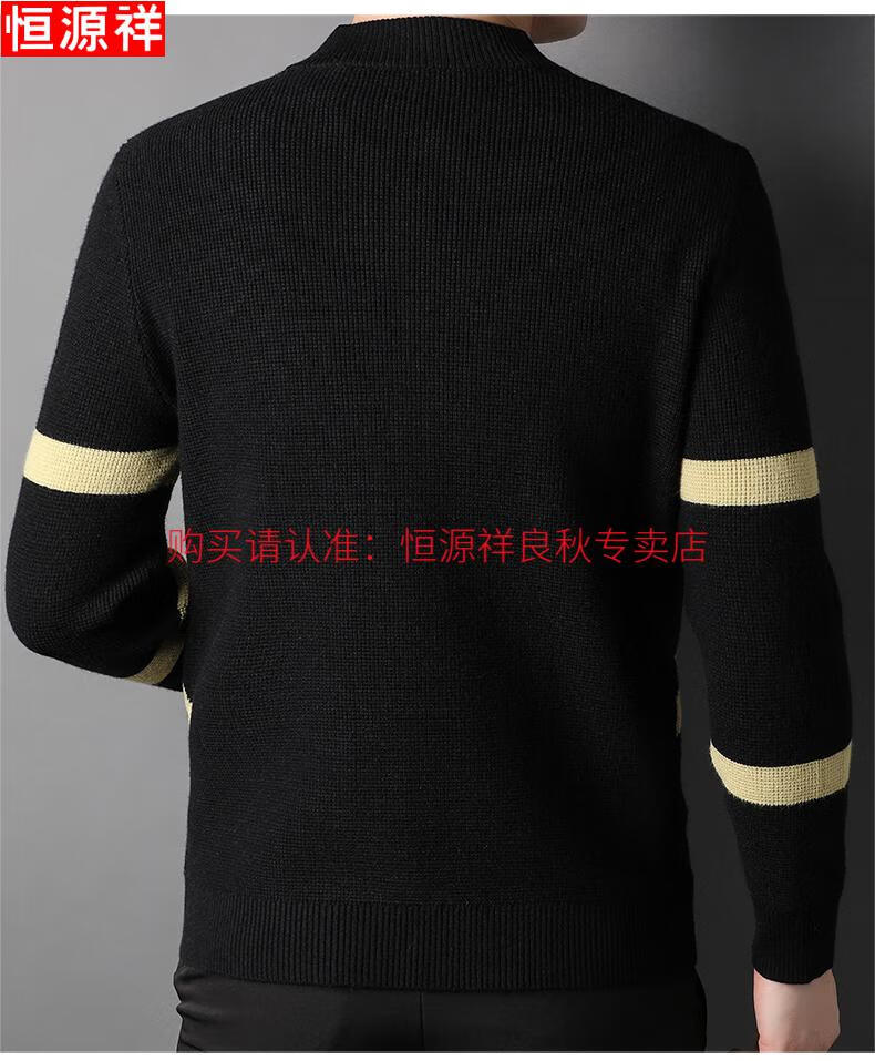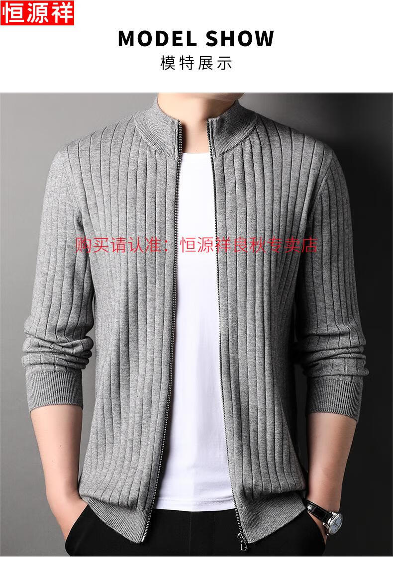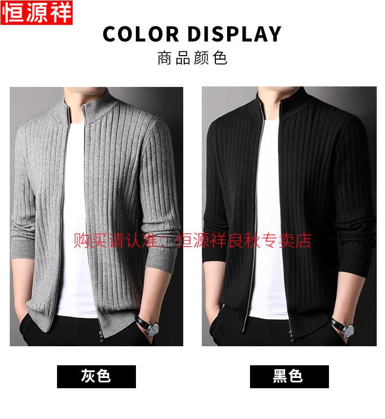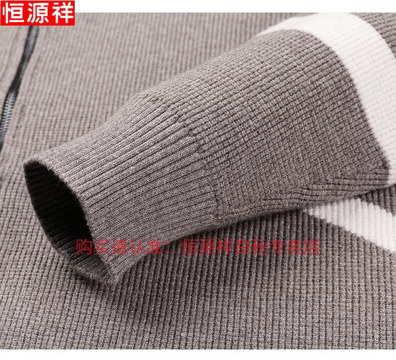 Hengyuanxiang cardigan sweater men's jacket spring and autumn middle-aged men's thickened stand-up collar zipper knitted woolen sweater top K2007 black 175/XL recommended 140-160Jin Jin equals 0.5 kg