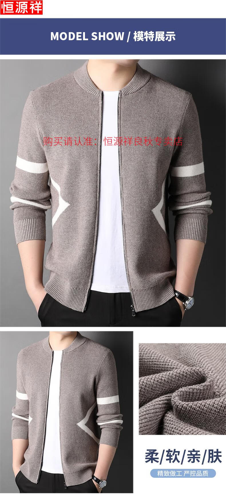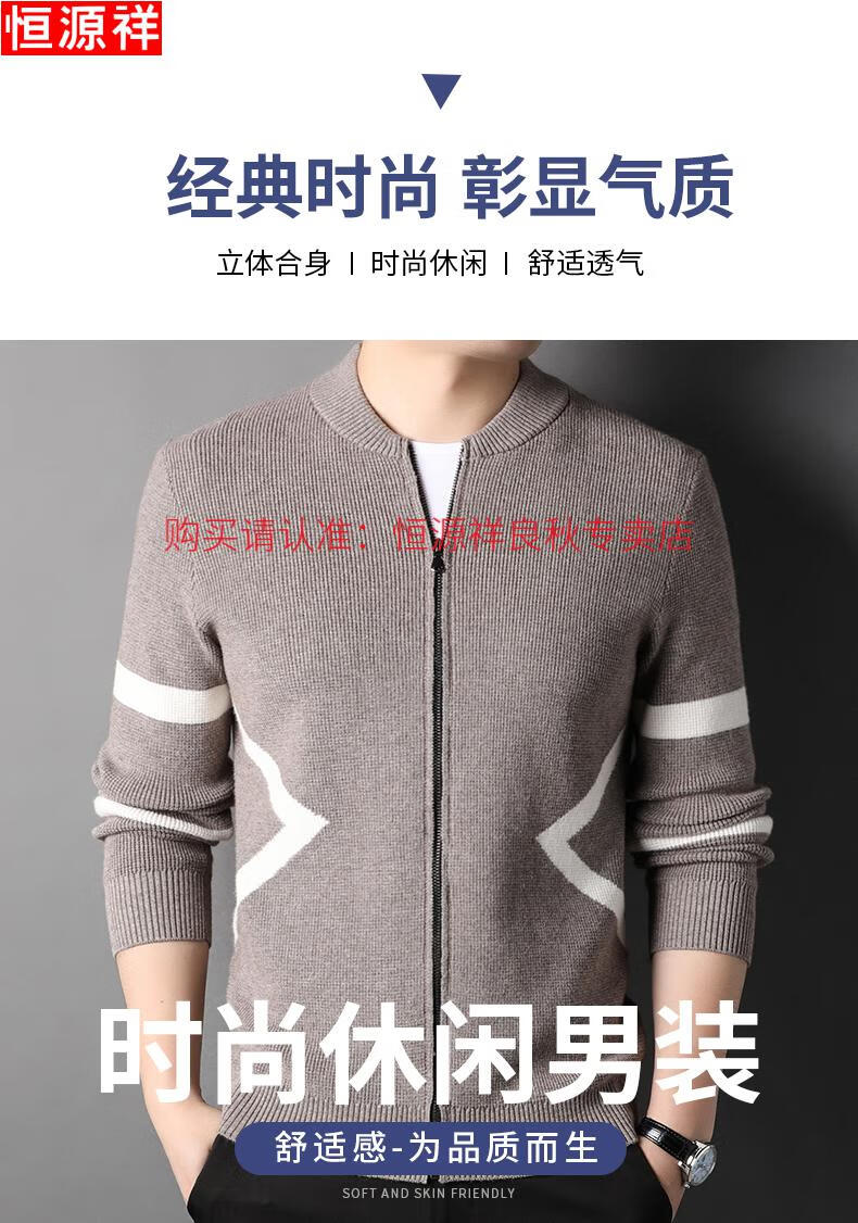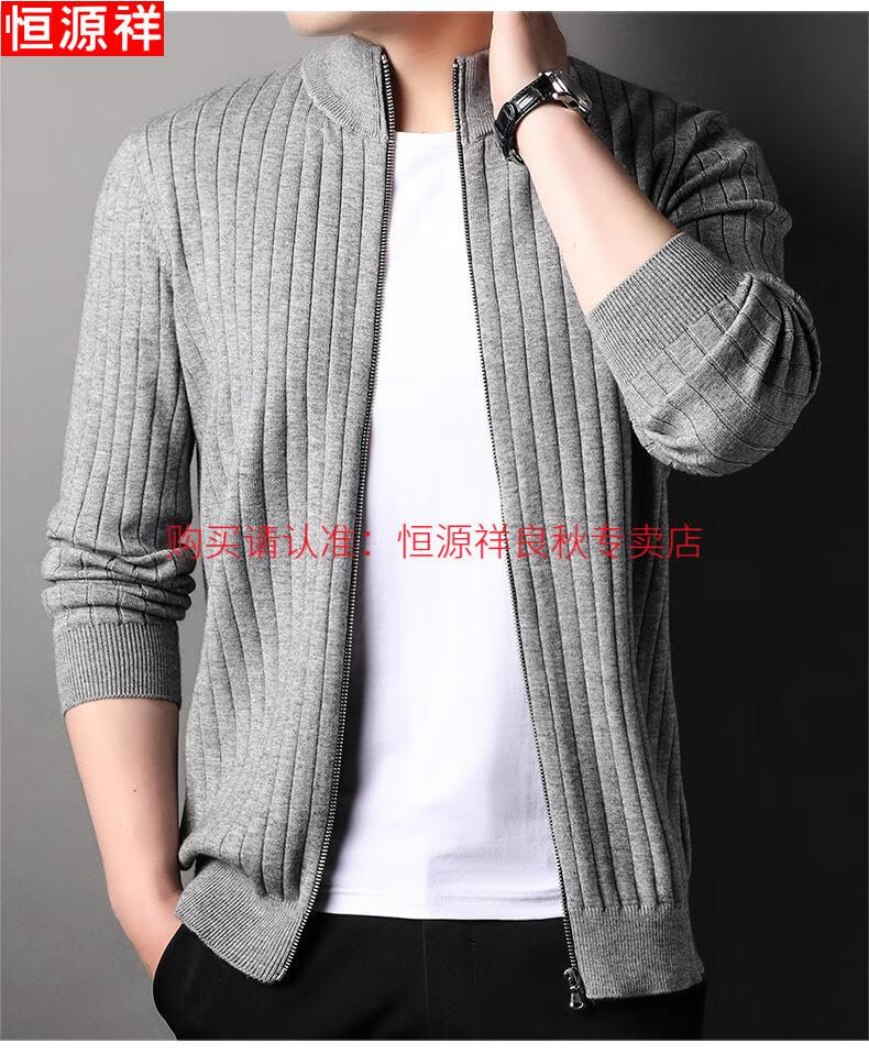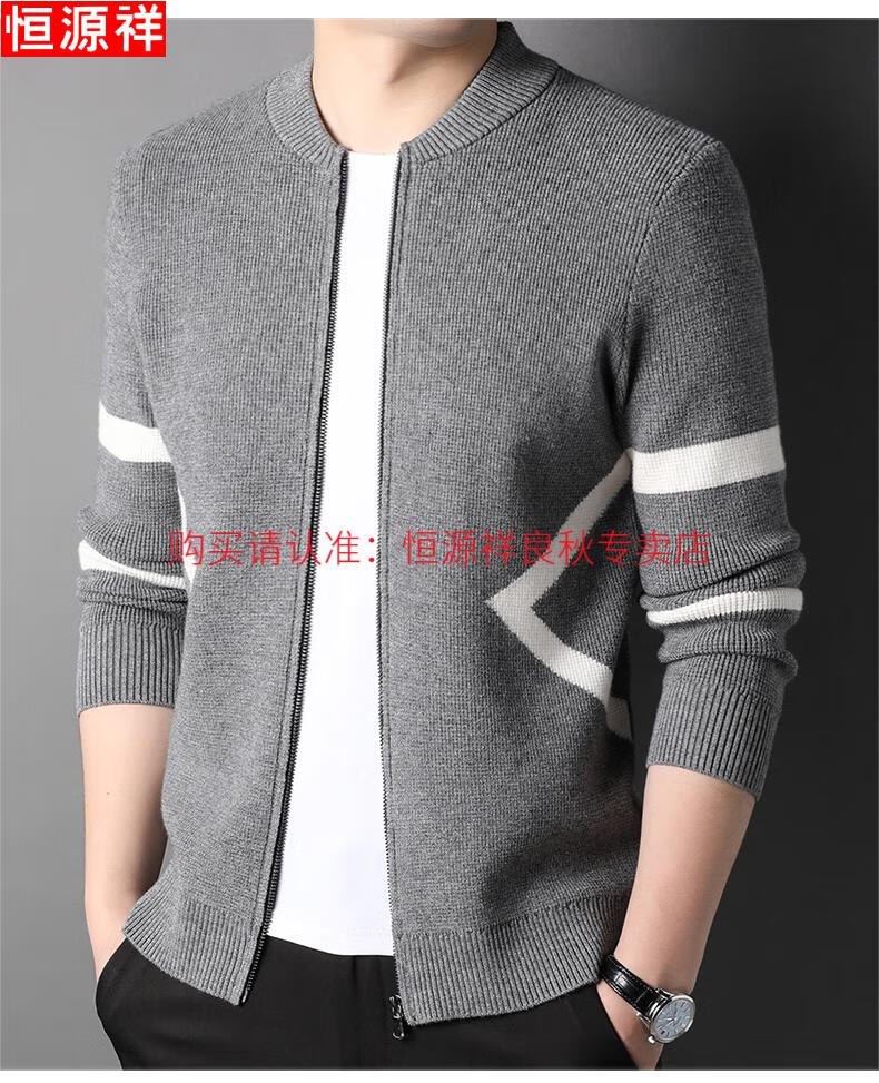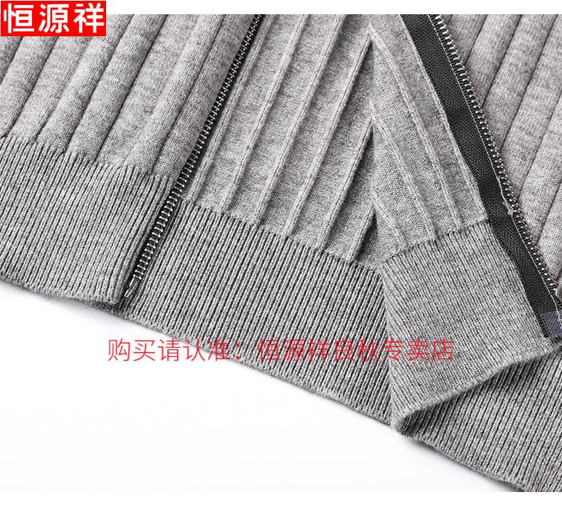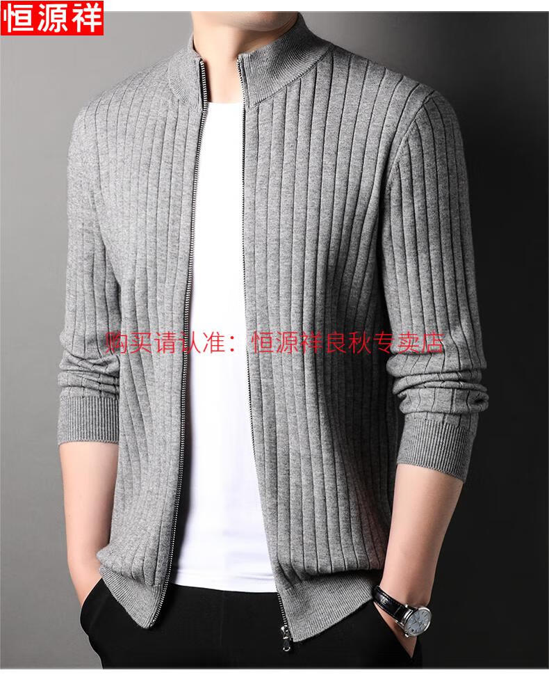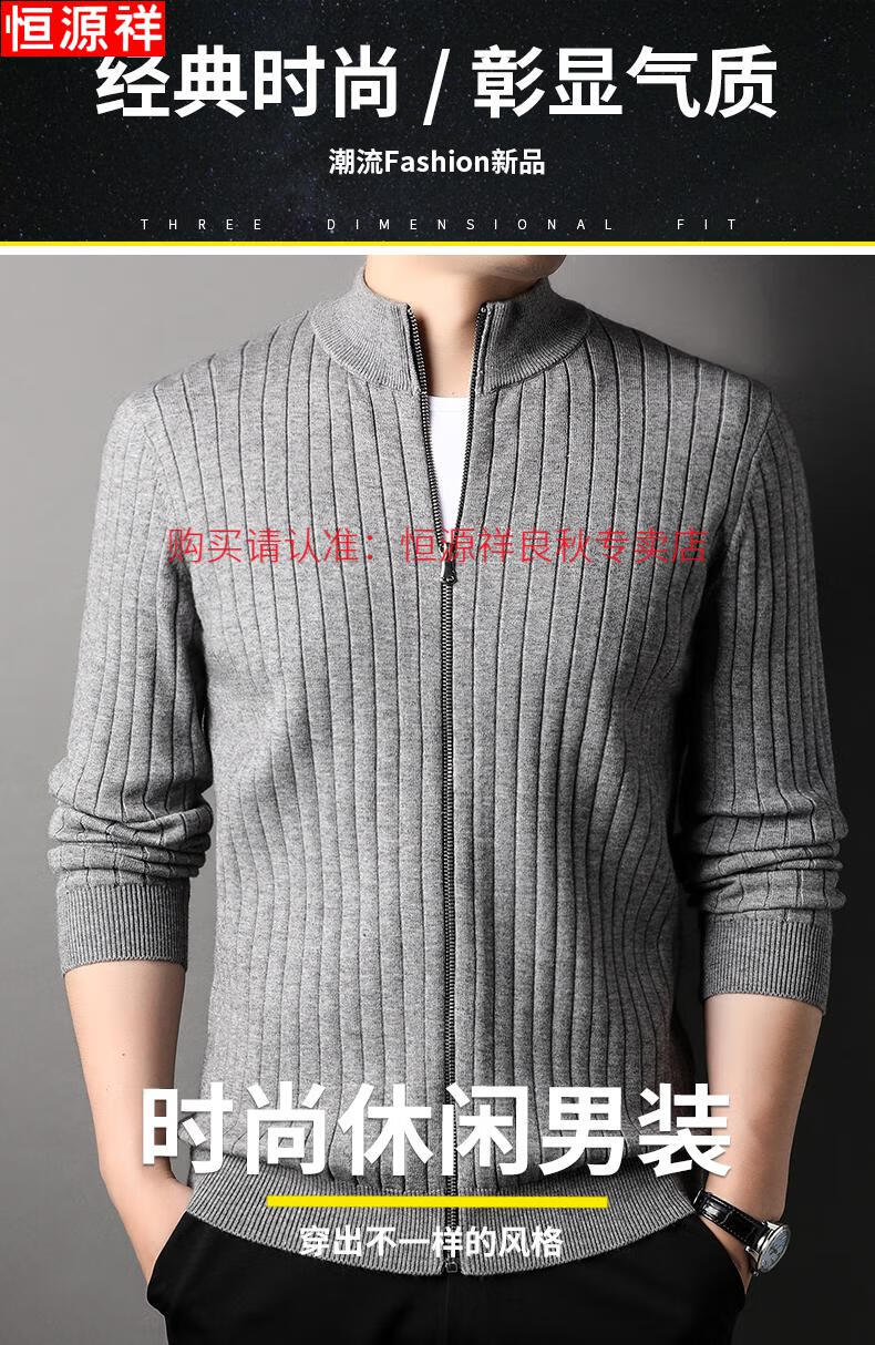 Hengyuanxiang cardigan sweater men's jacket spring and autumn middle-aged men's thickened stand-up collar zipper knitted woolen sweater top K2007 black 175/XL recommended 140-160Jin Jin equals 0.5 kg