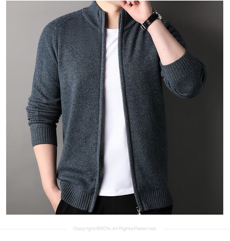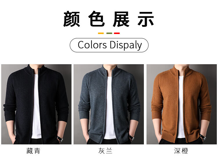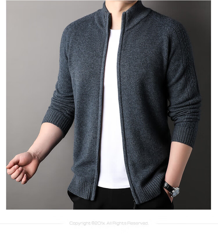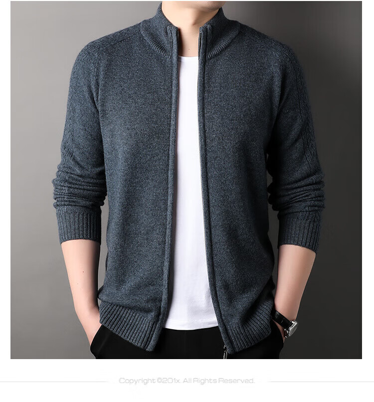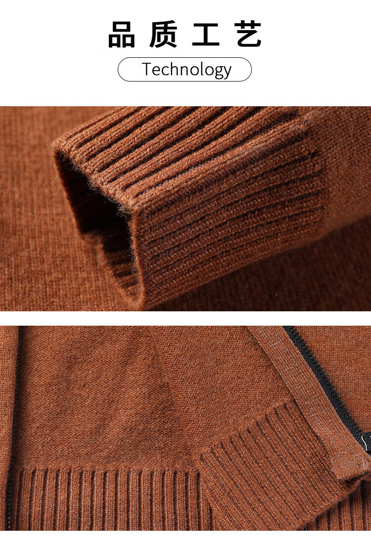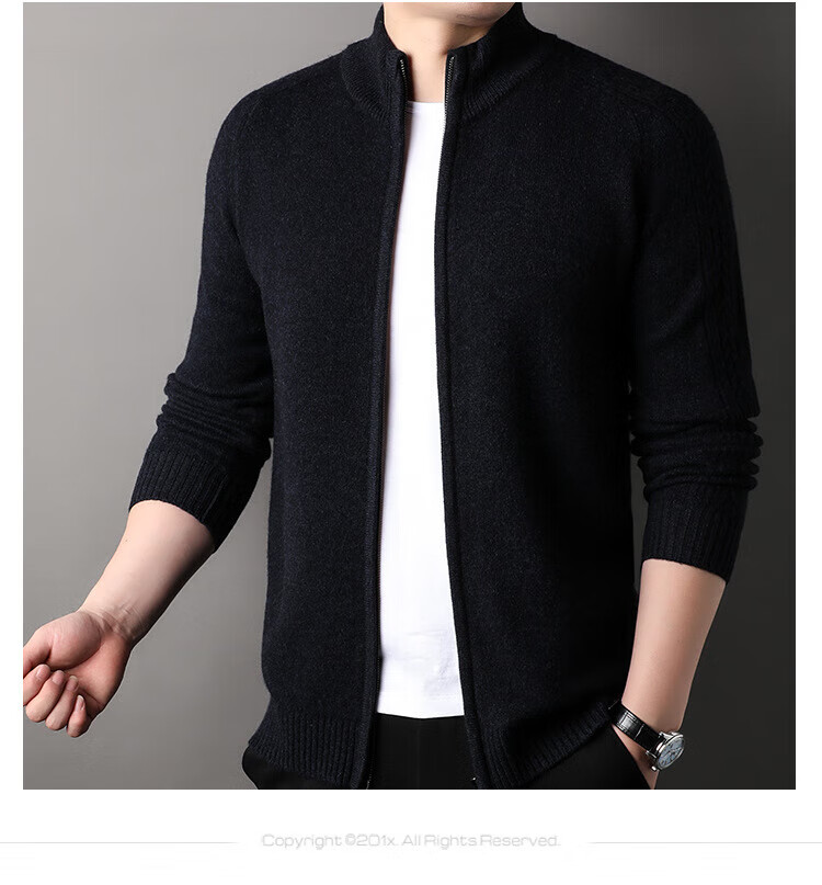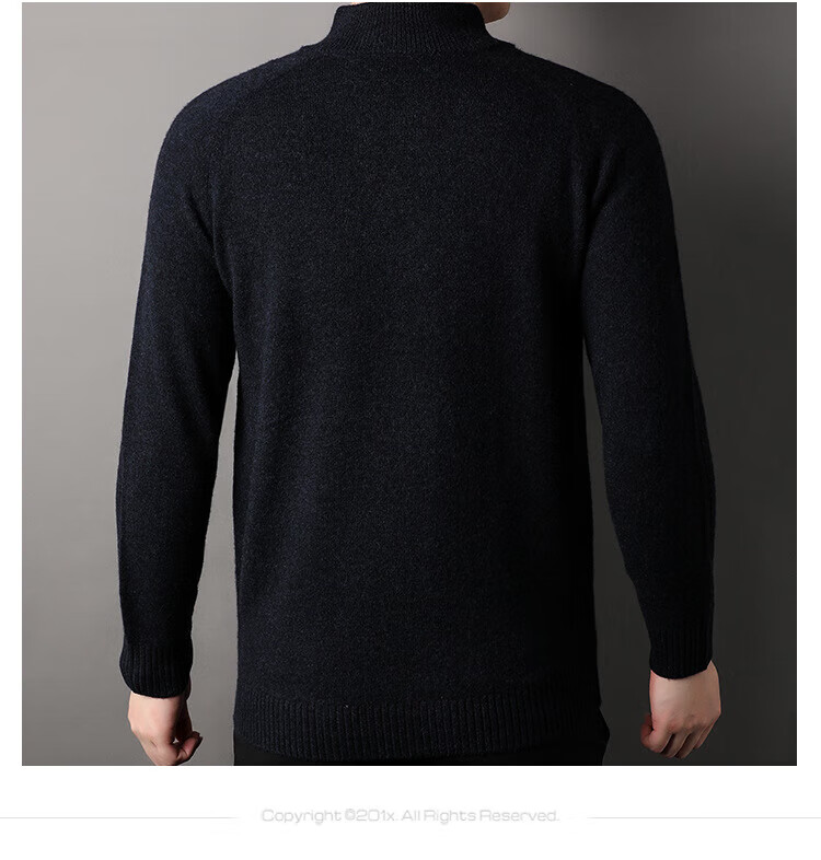 Hengyuanxiang 100% pure wool sweater men's zipper cardigan sweater thickened knitted sweater jacket Korean style autumn and winter half turtleneck men's clothing Navy L 175/50/110