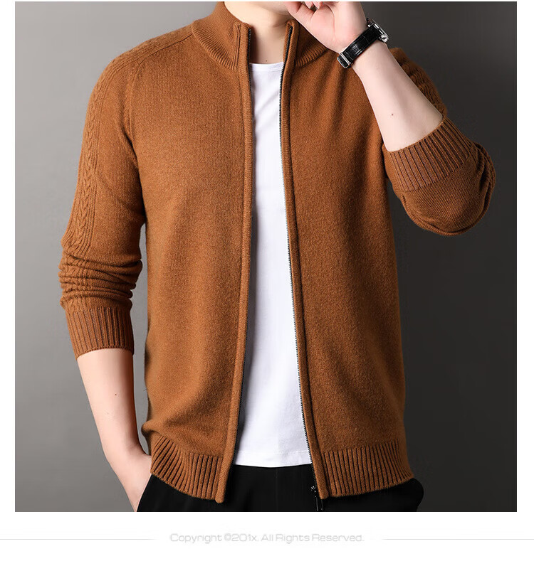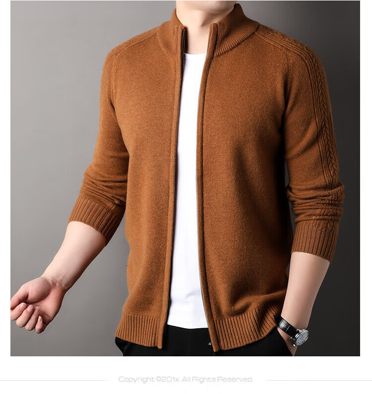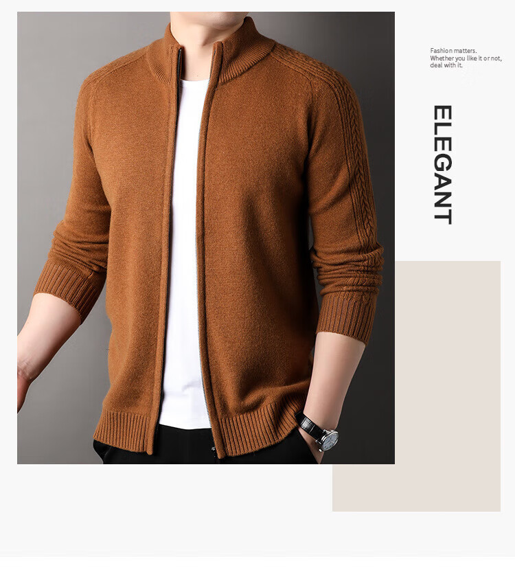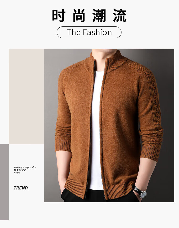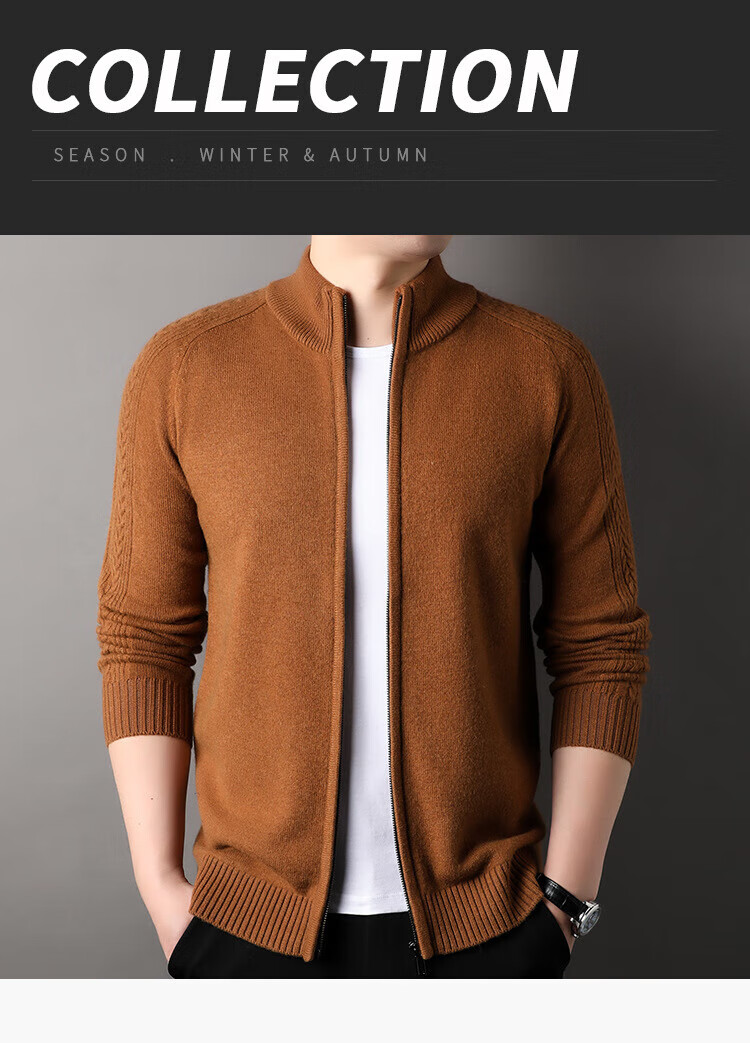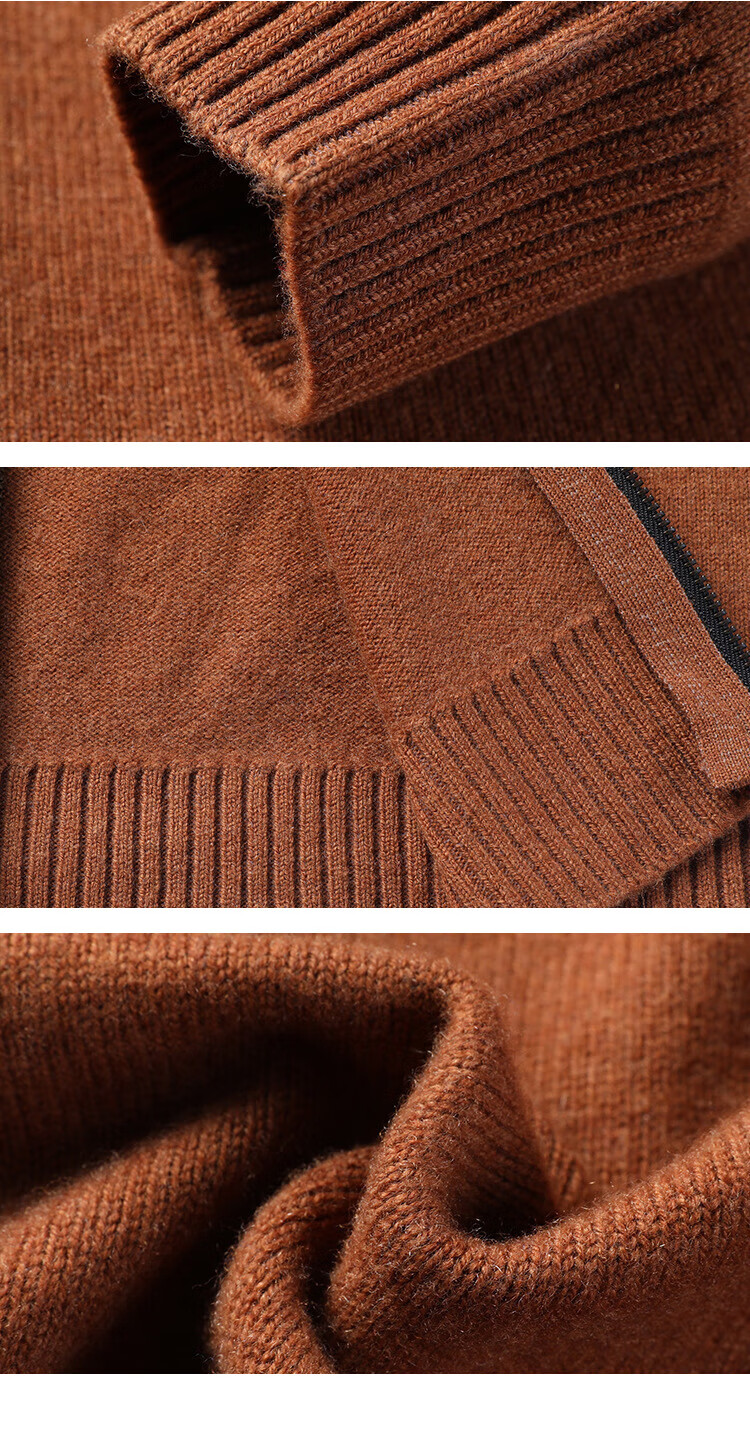 Hengyuanxiang 100% pure wool sweater men's zipper cardigan sweater thickened knitted sweater jacket Korean style autumn and winter half turtleneck men's clothing Navy L 175/50/110