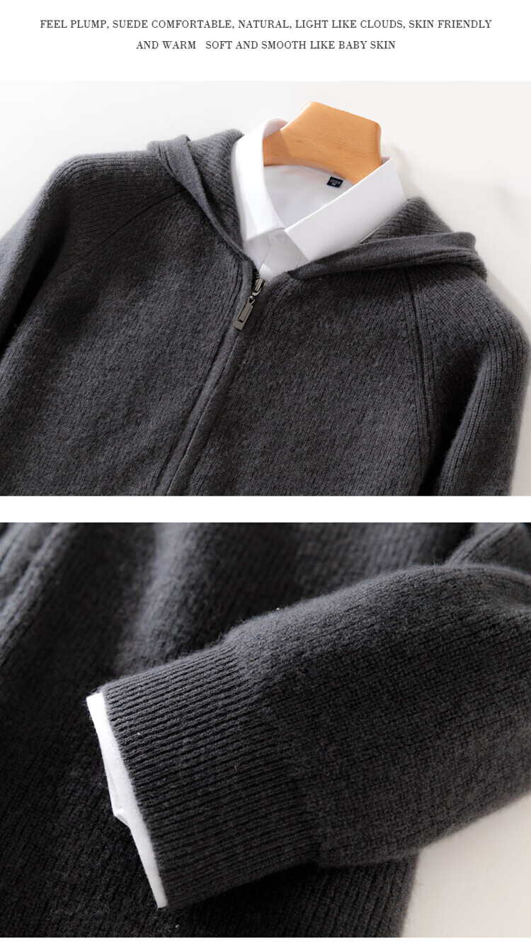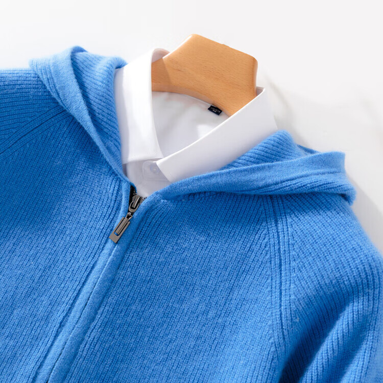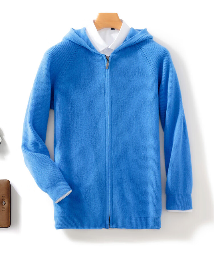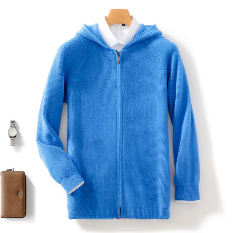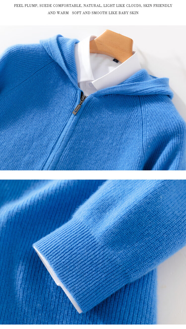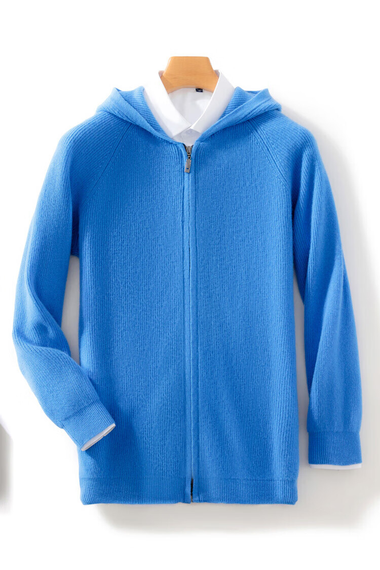 Hengyuanxiang Men's Wool Sweater Hooded Cardigan Solid Color Casual Sweater Hoodie Long Sleeve Zipper Plush Jacket Knitted Jacket Style Blue 3XL