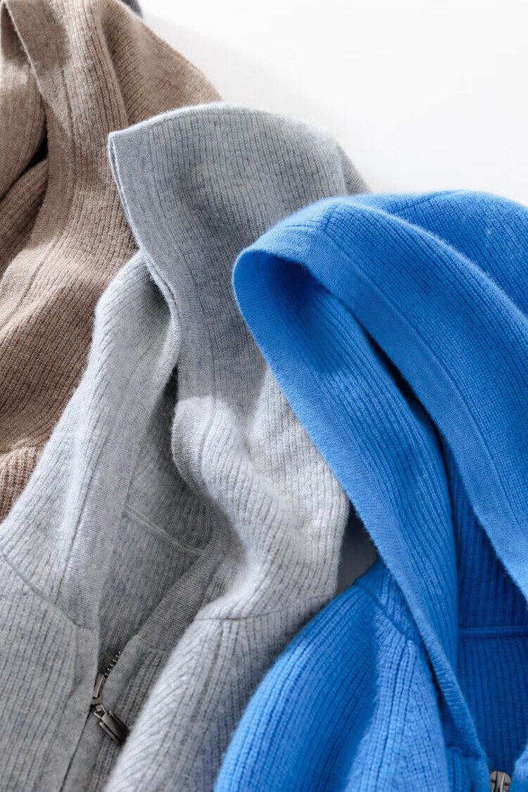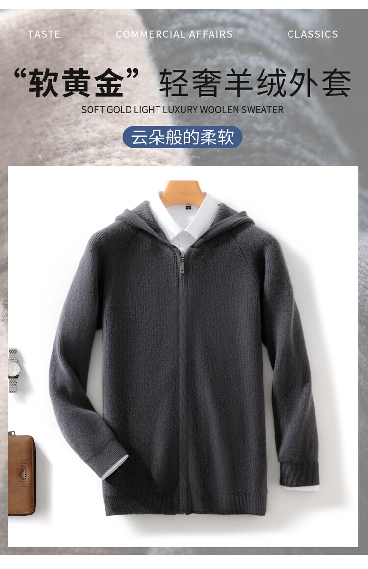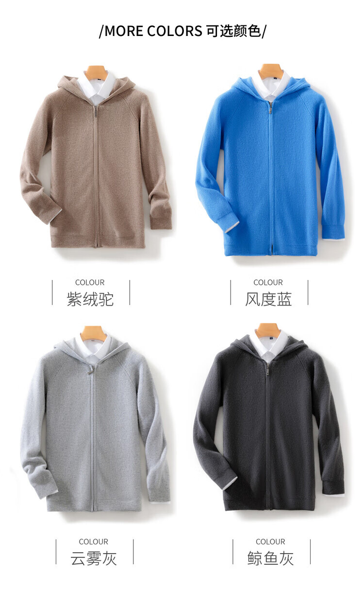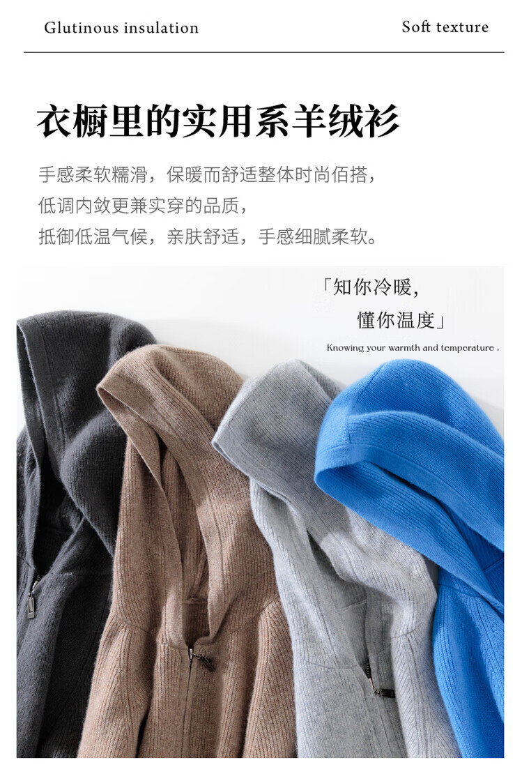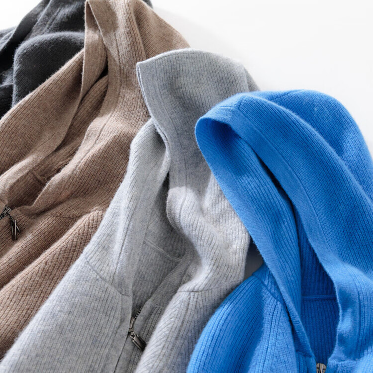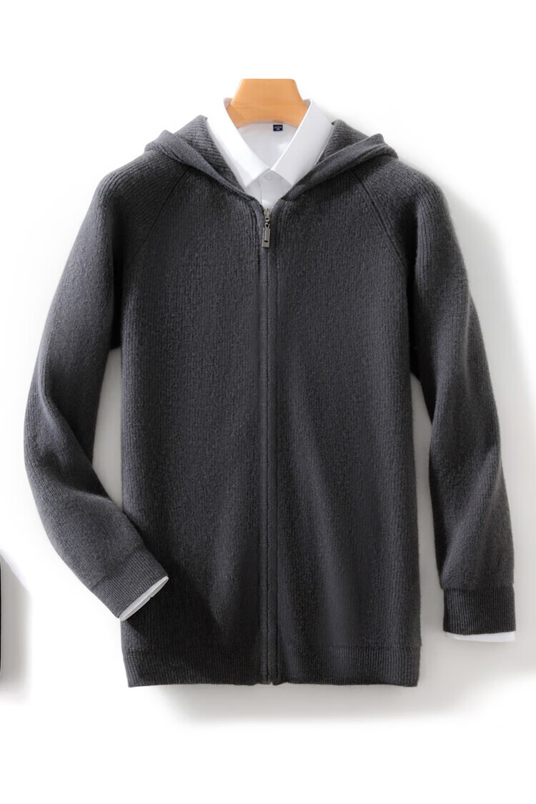 Hengyuanxiang Men's Wool Sweater Hooded Cardigan Solid Color Casual Sweater Hoodie Long Sleeve Zipper Plush Jacket Knitted Jacket Style Blue 3XL