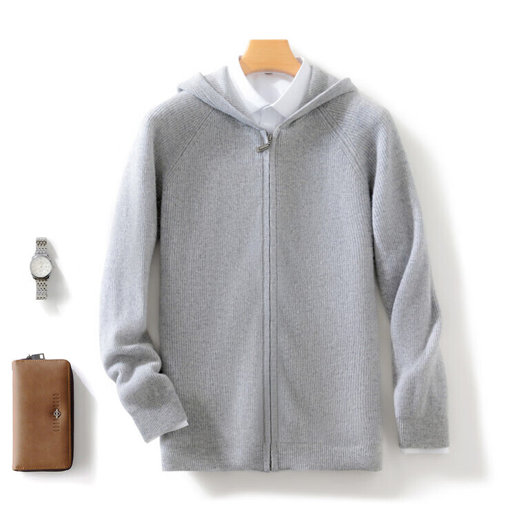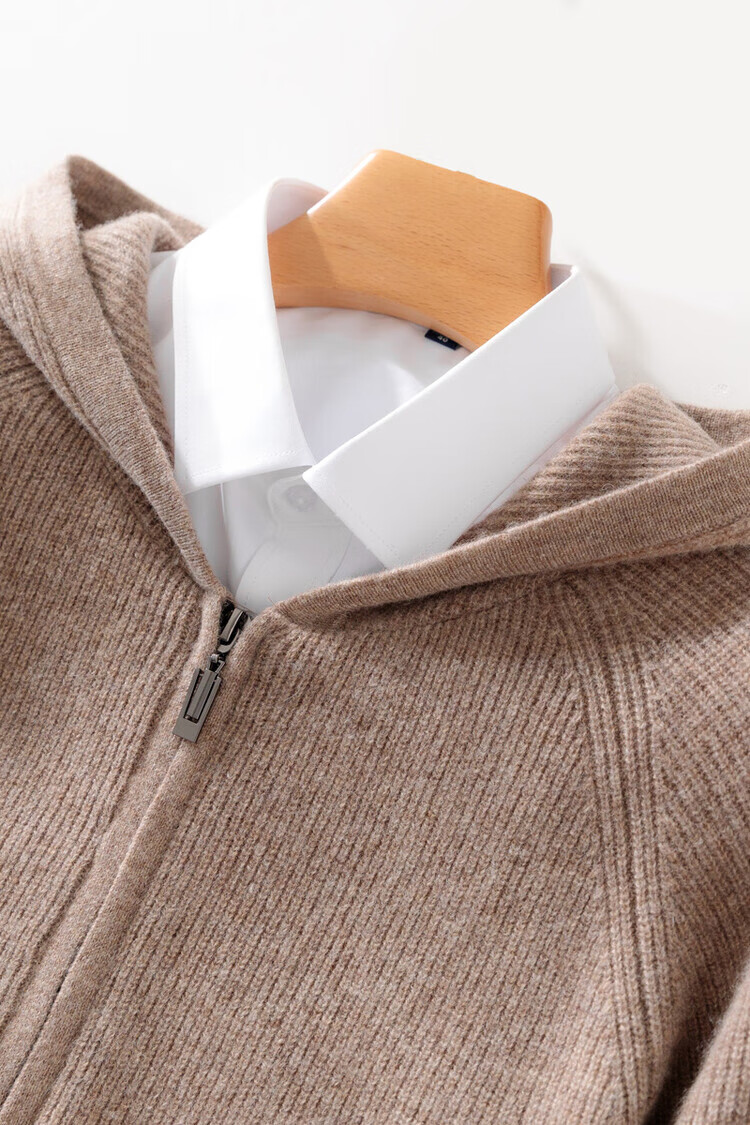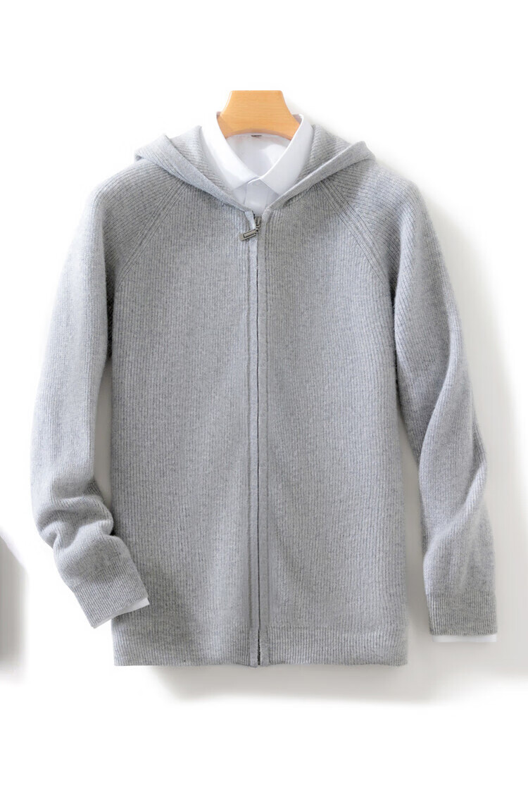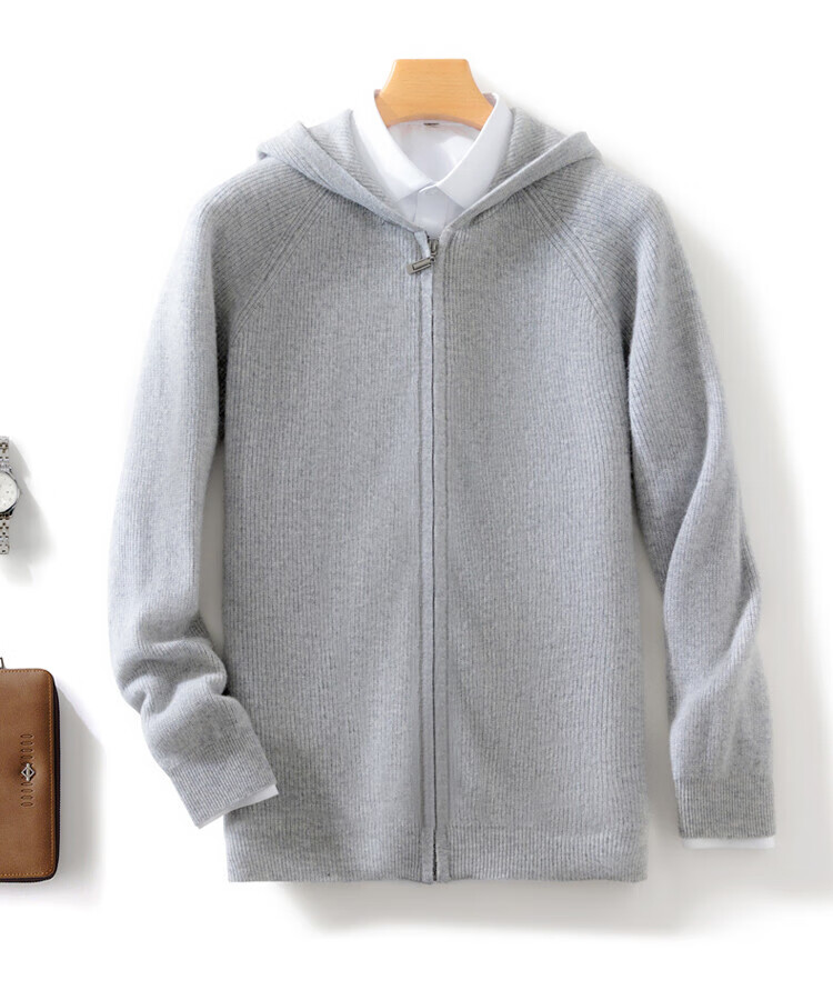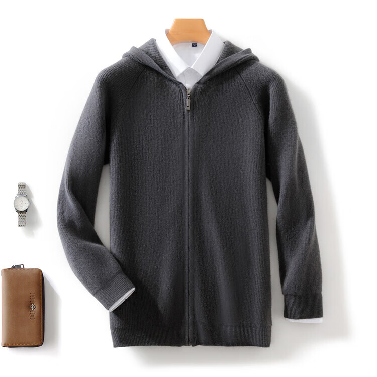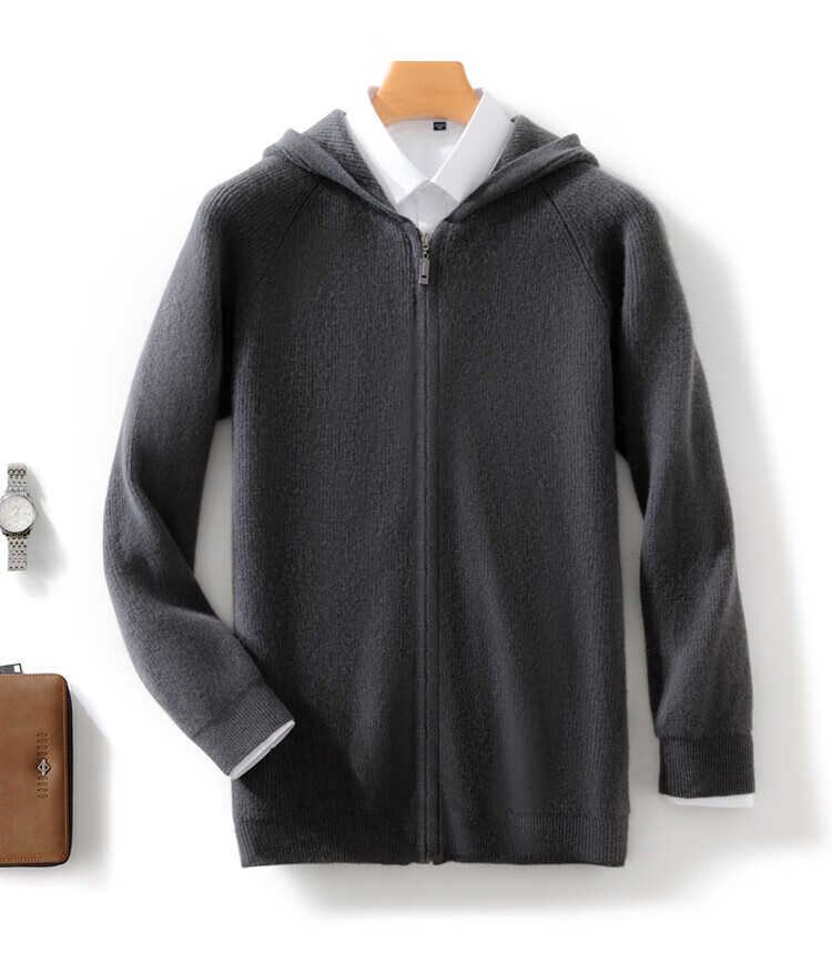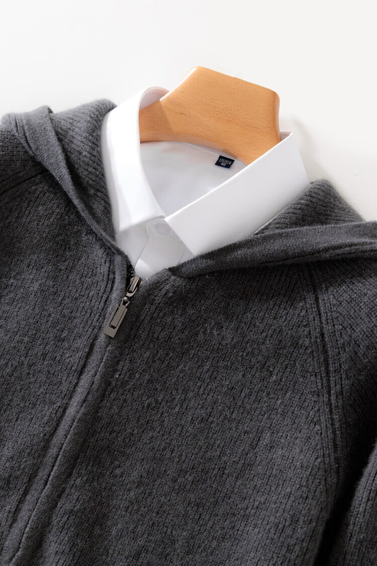 Hengyuanxiang Men's Wool Sweater Hooded Cardigan Solid Color Casual Sweater Hoodie Long Sleeve Zipper Plush Jacket Knitted Jacket Style Blue 3XL