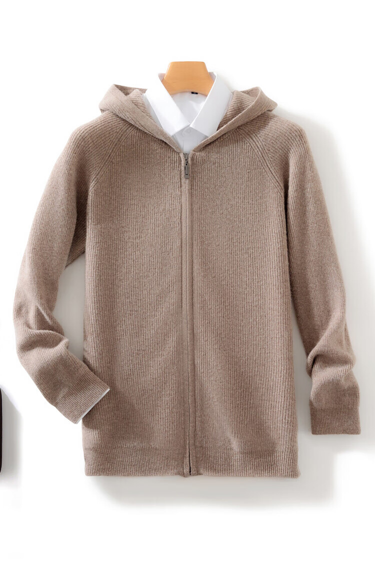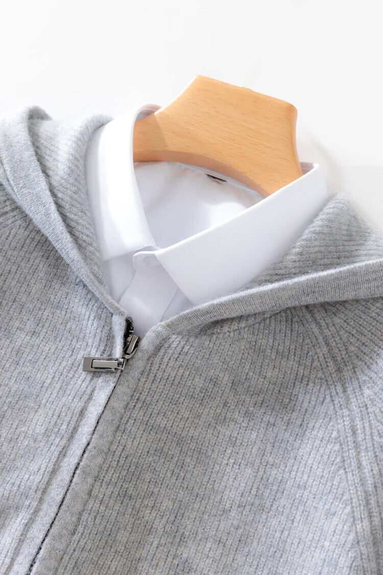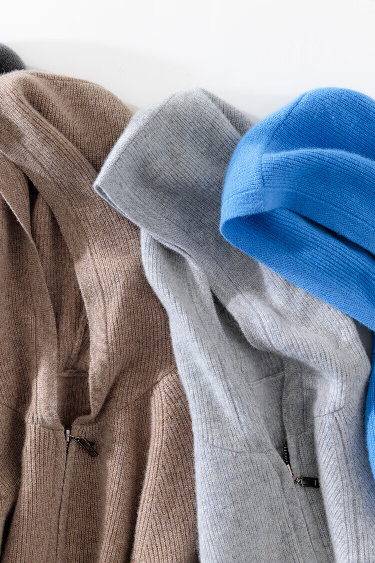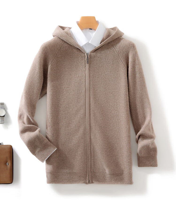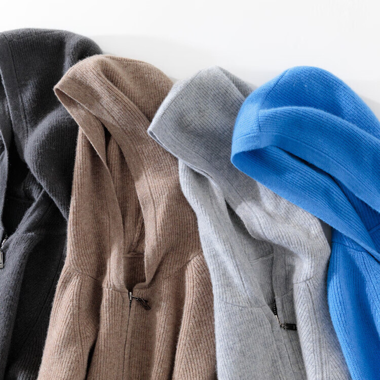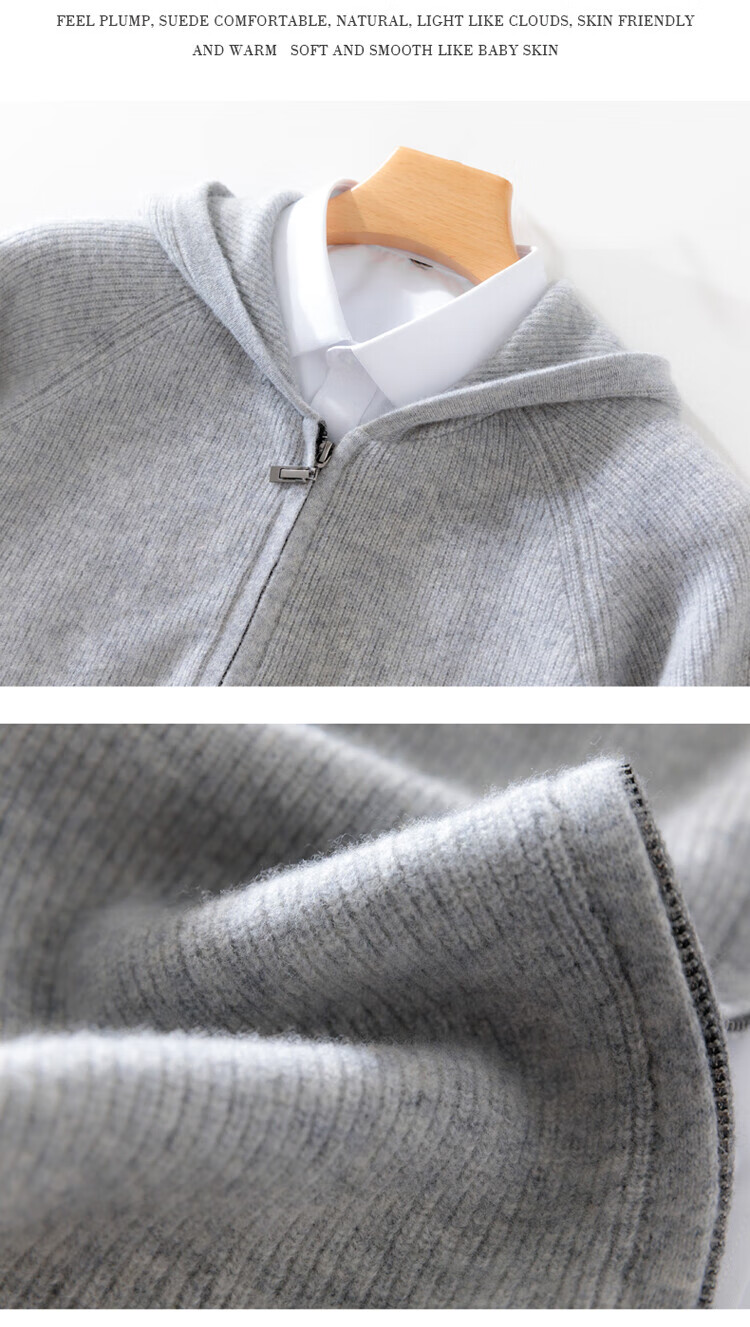 Hengyuanxiang Men's Wool Sweater Hooded Cardigan Solid Color Casual Sweater Hoodie Long Sleeve Zipper Plush Jacket Knitted Jacket Style Blue 3XL