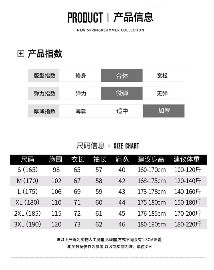 China (cm) 165 / 88-90 170 / 96-98 175 / 108-110 180 / 118-122 185 / 126-130