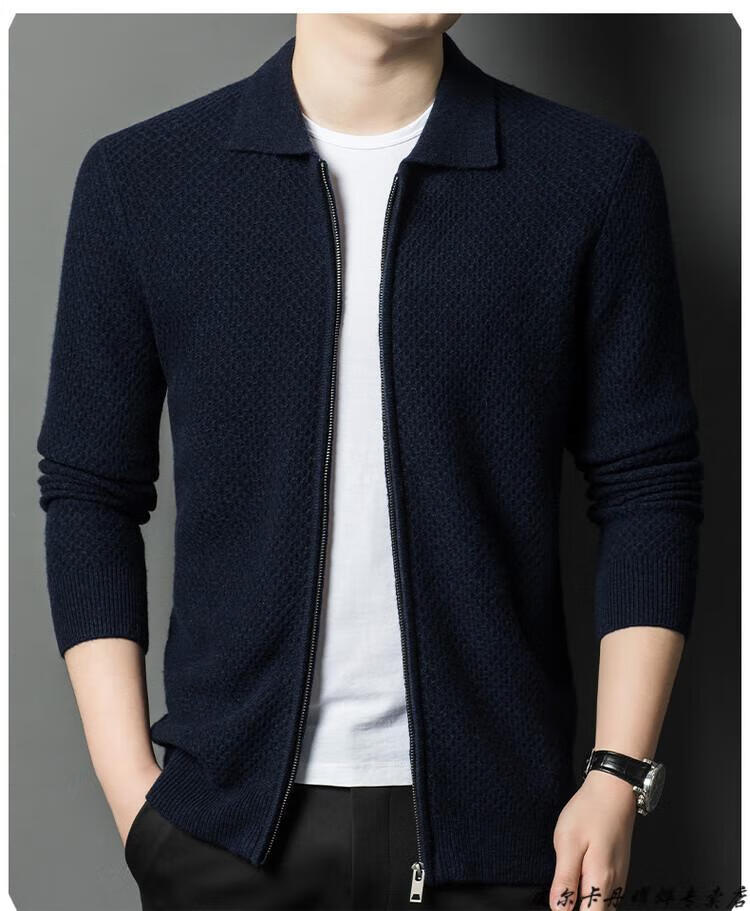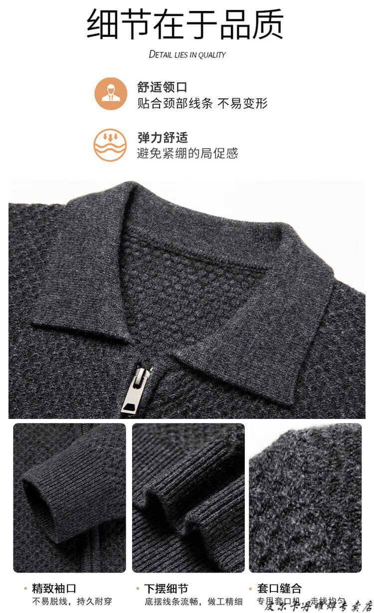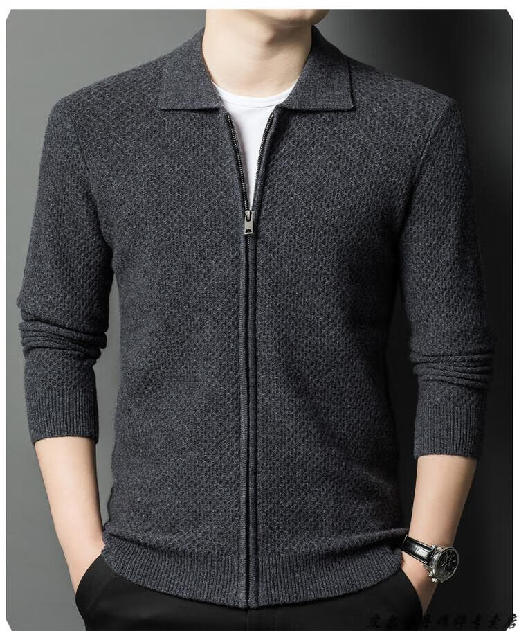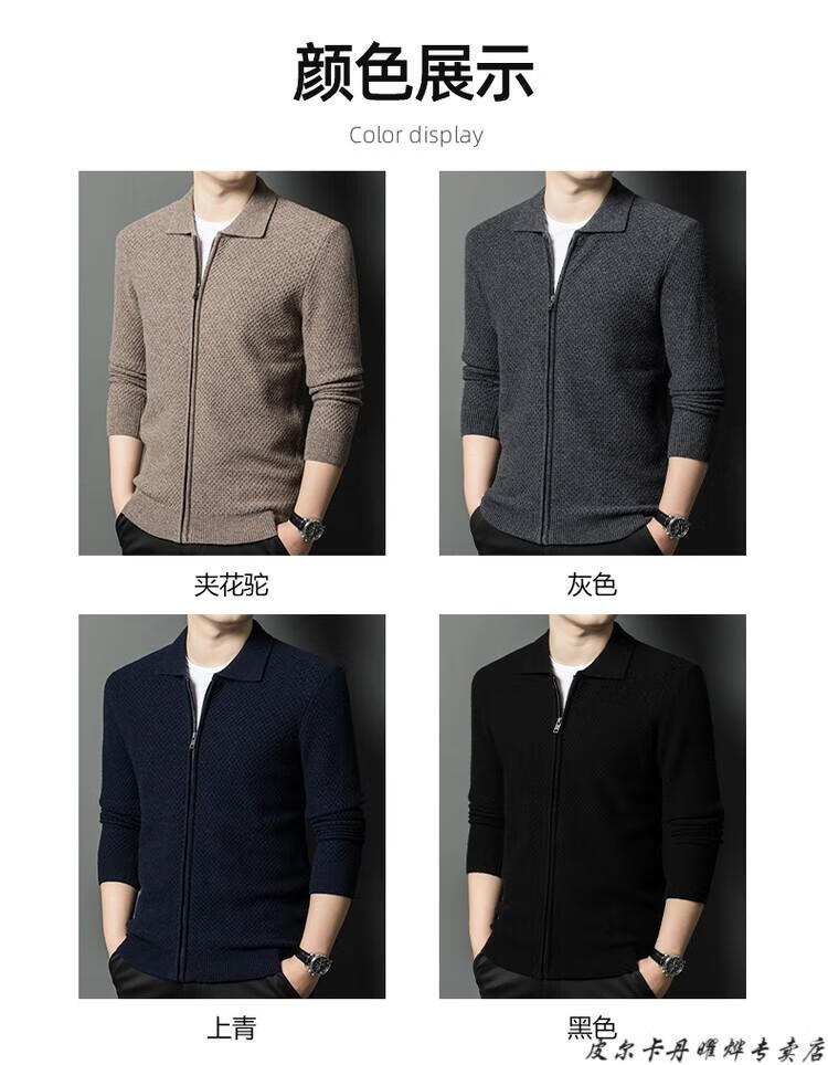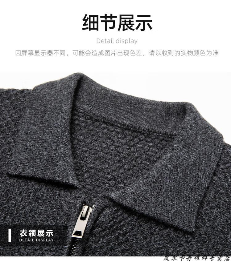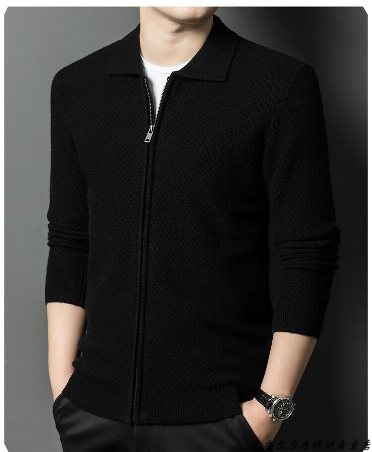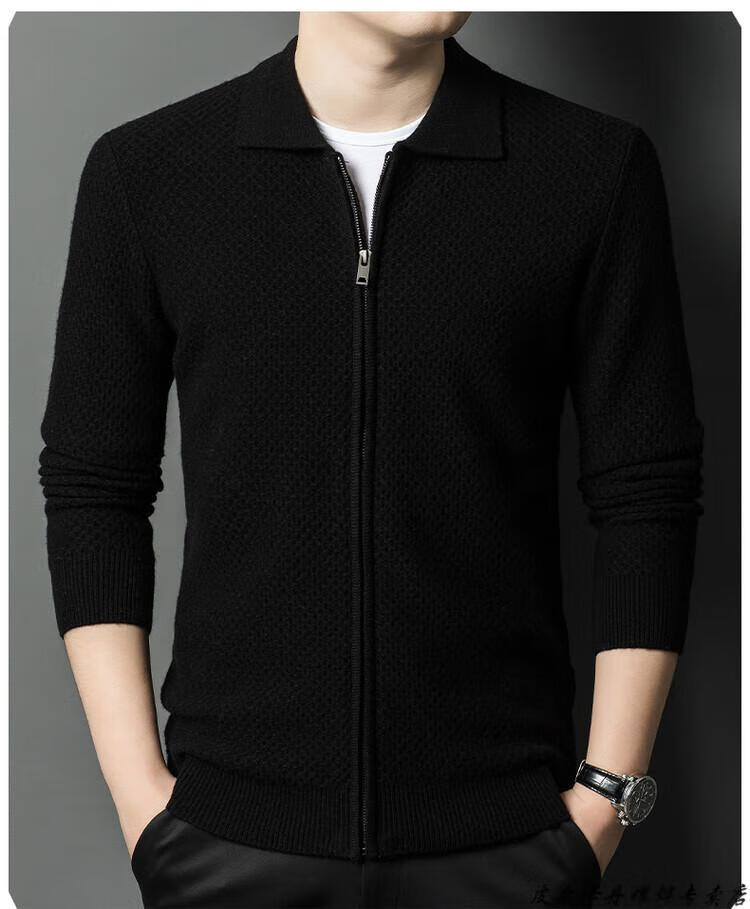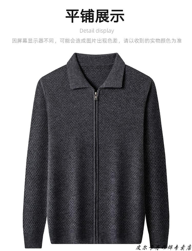 Pierre Cardin heavy wool sweater men's zipper lapel sweater jacket retro style thickened casual loose cardigan sweater for men black 170