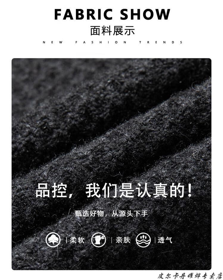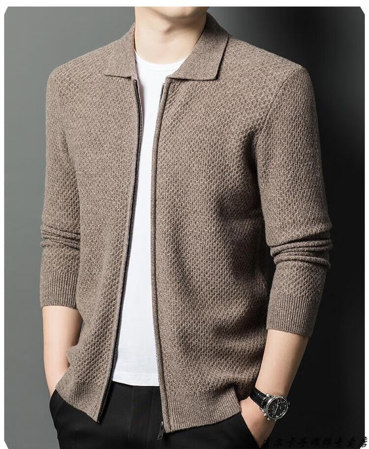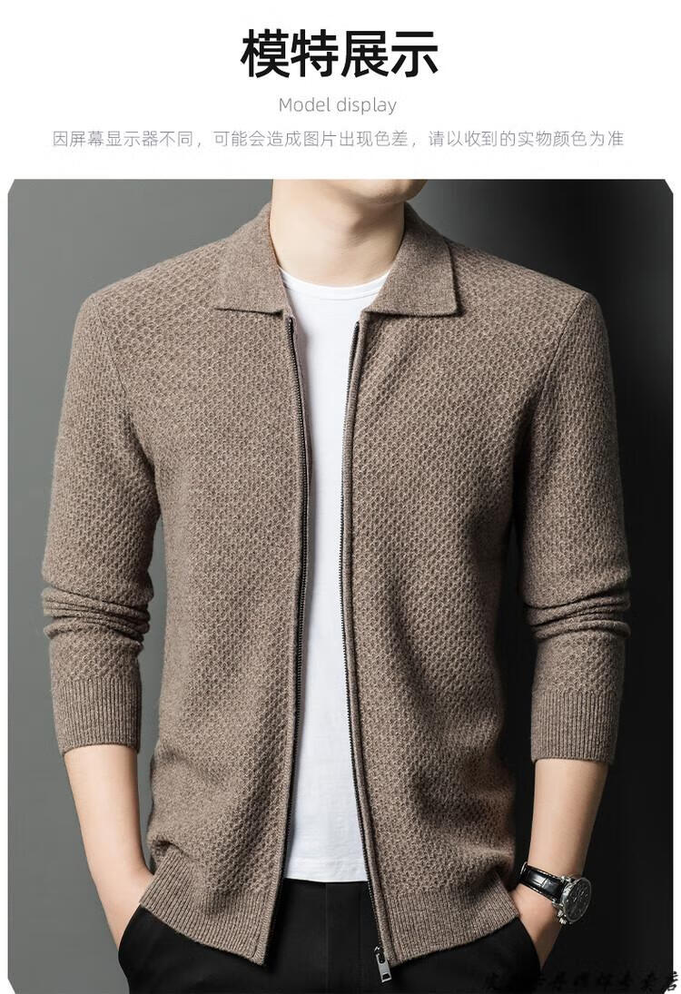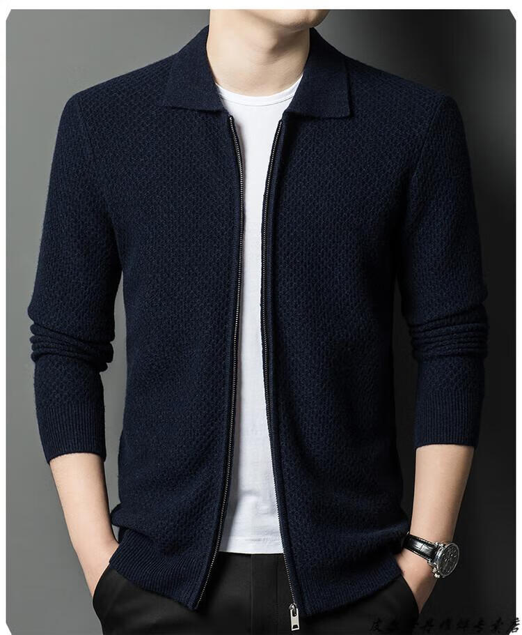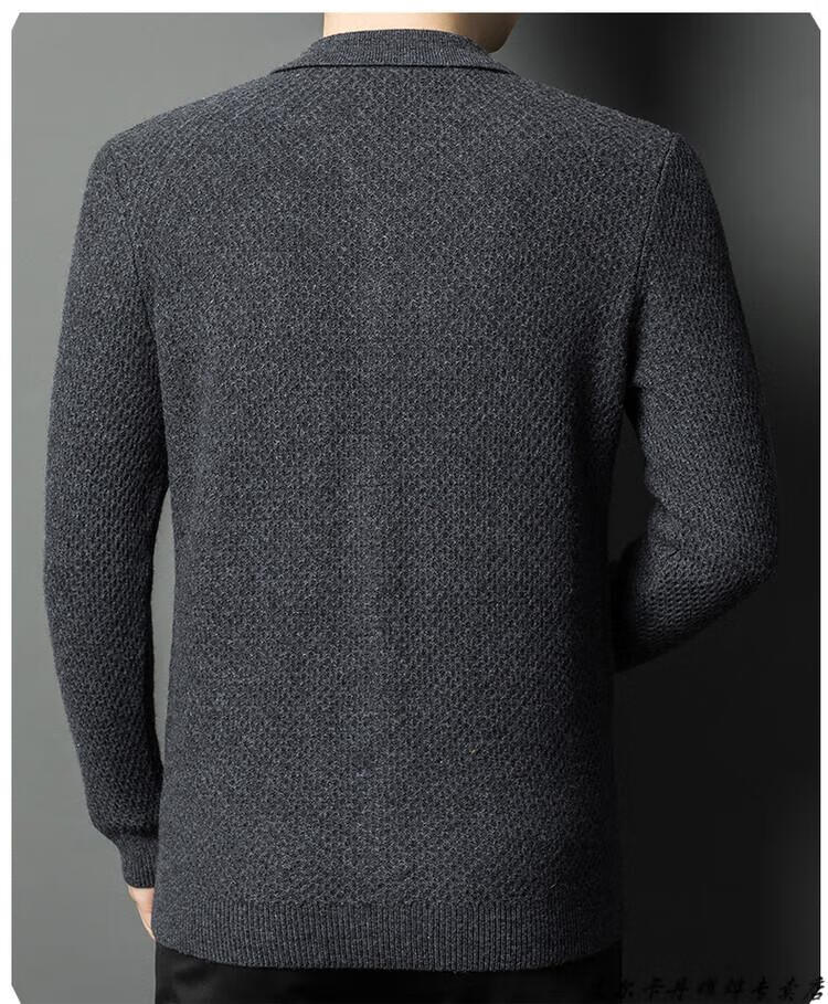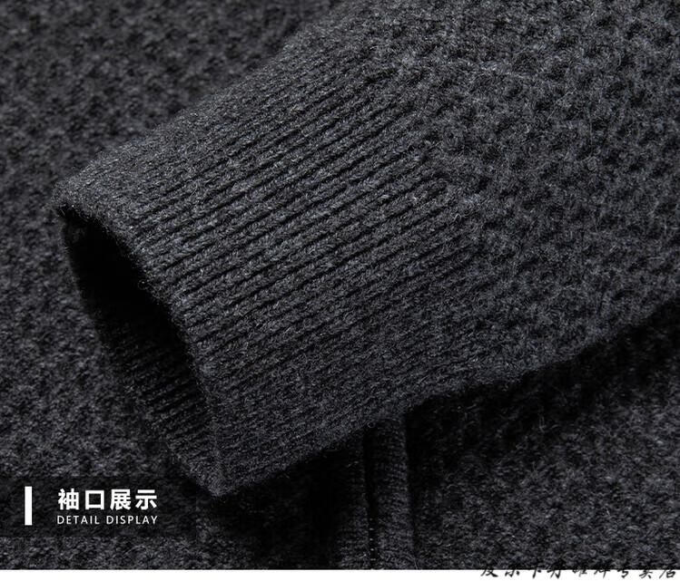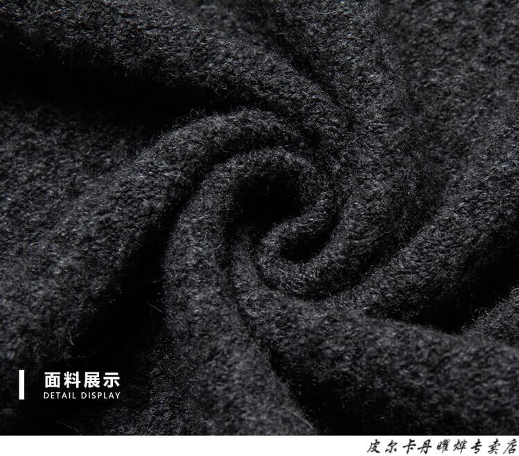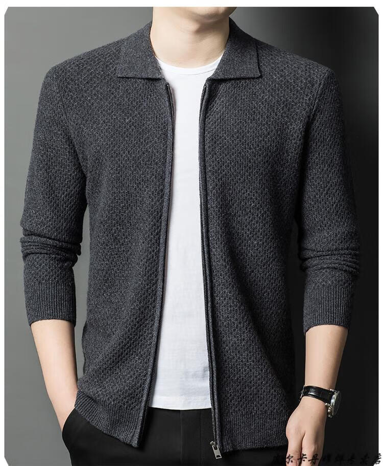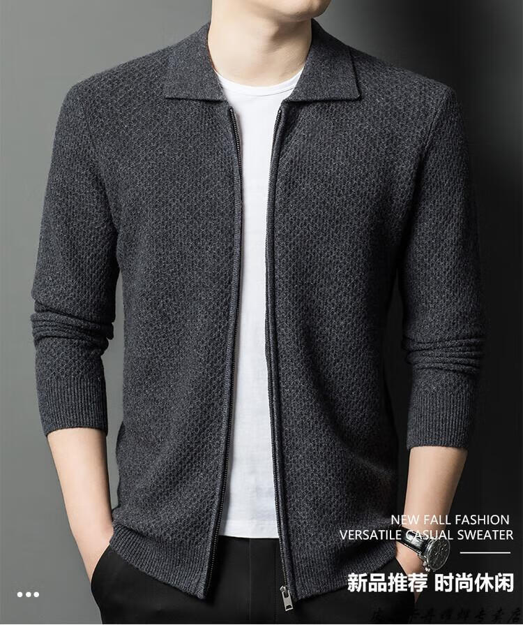 Pierre Cardin heavy wool sweater men's zipper lapel sweater jacket retro style thickened casual loose cardigan sweater for men black 170