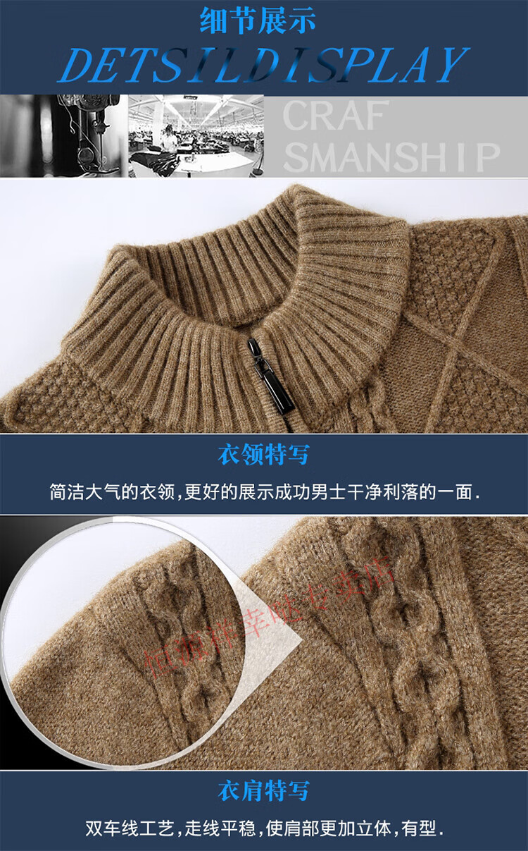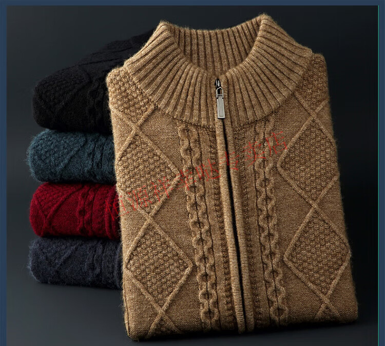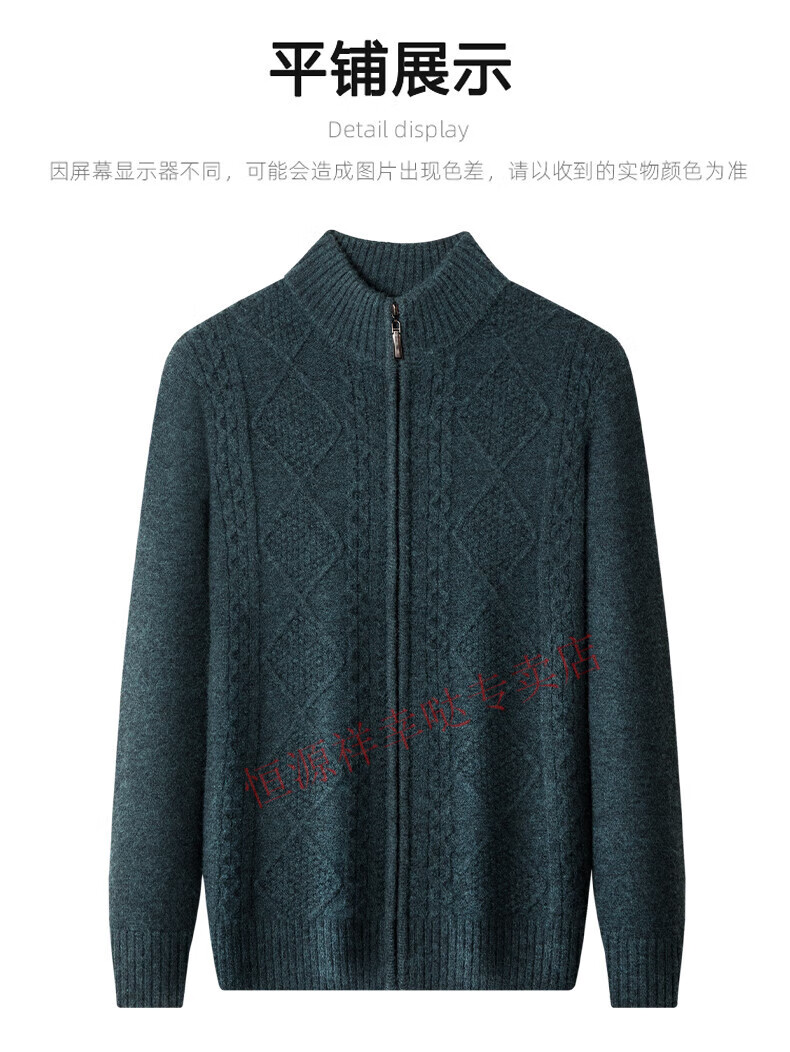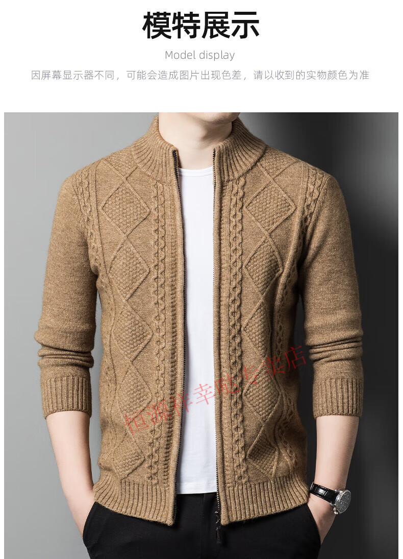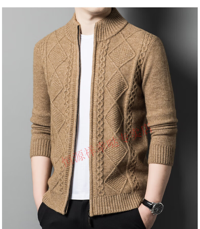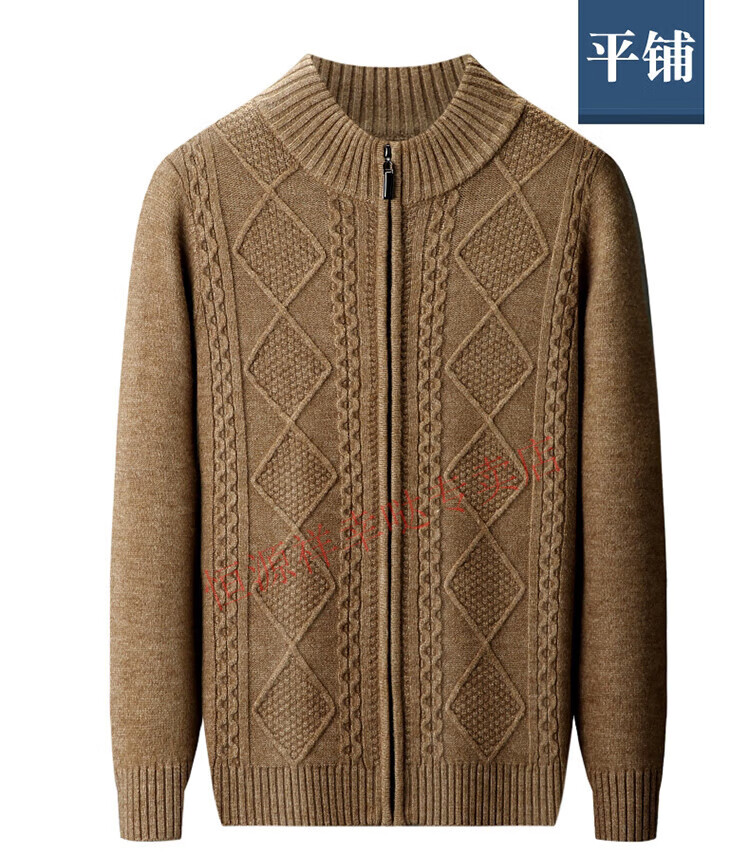 Hengyuanxiang 100% pure wool fleece men's autumn and winter thickened knitted cardigan coat sweater large size wool top men's camel pure new 100 175/XL