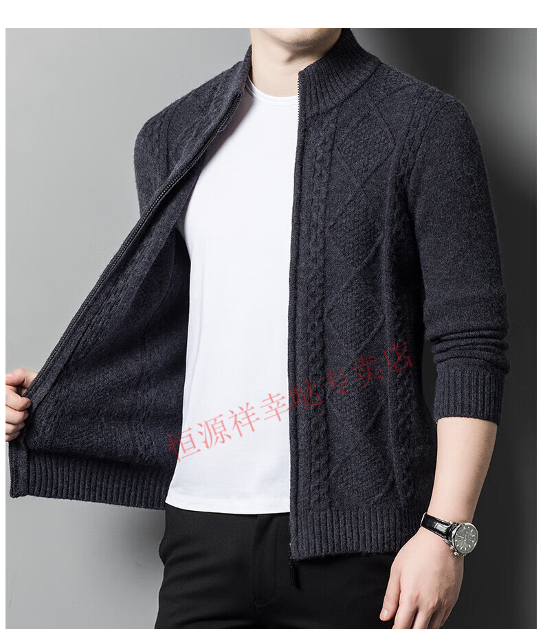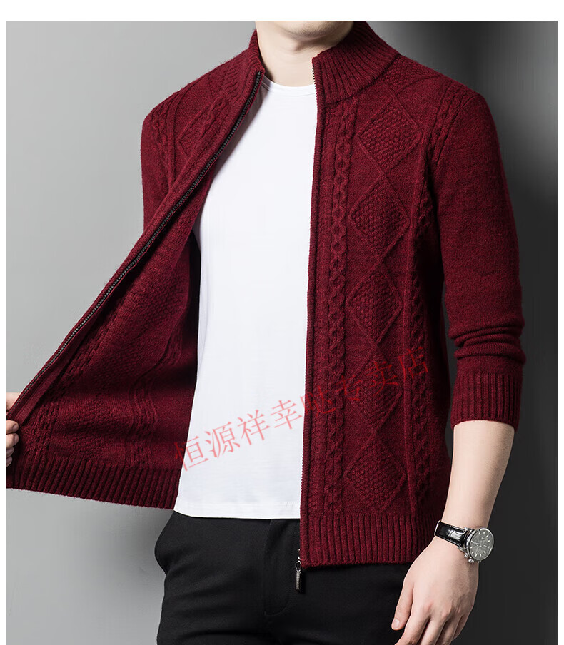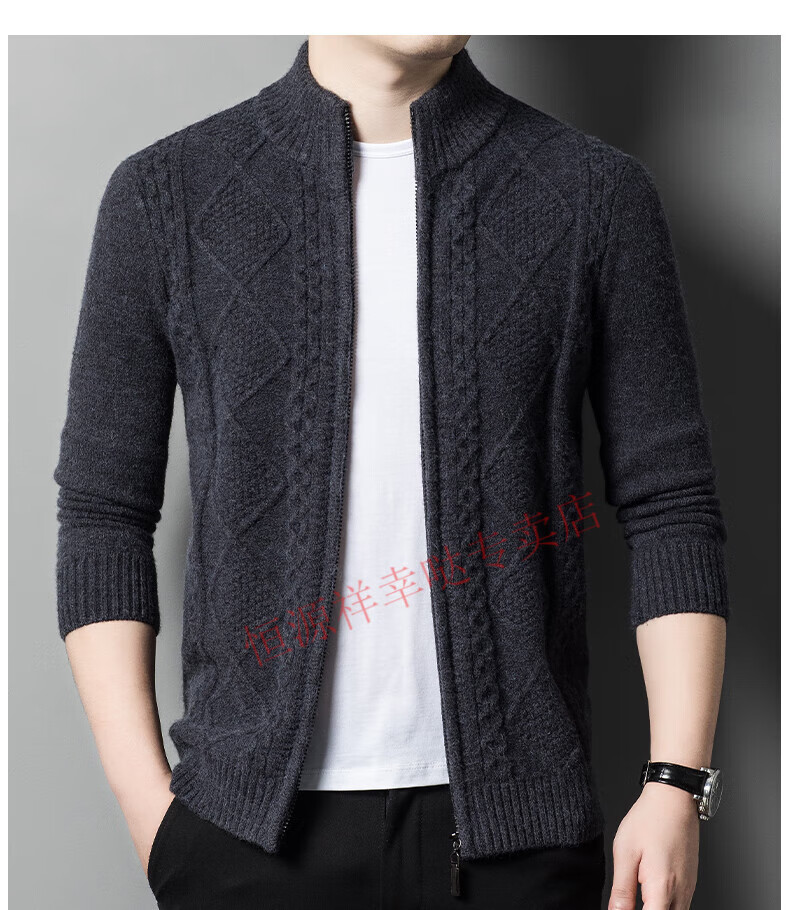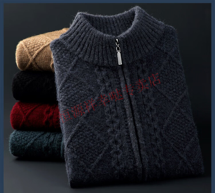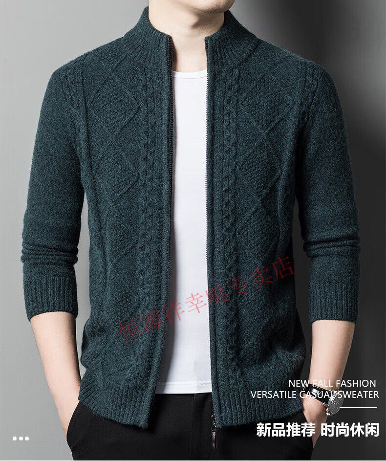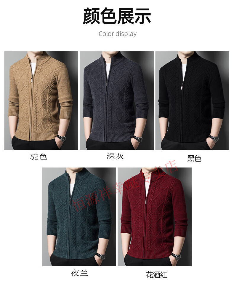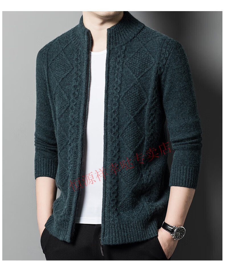 Hengyuanxiang 100% pure wool fleece men's autumn and winter thickened knitted cardigan coat sweater large size wool top men's camel pure new 100 175/XL