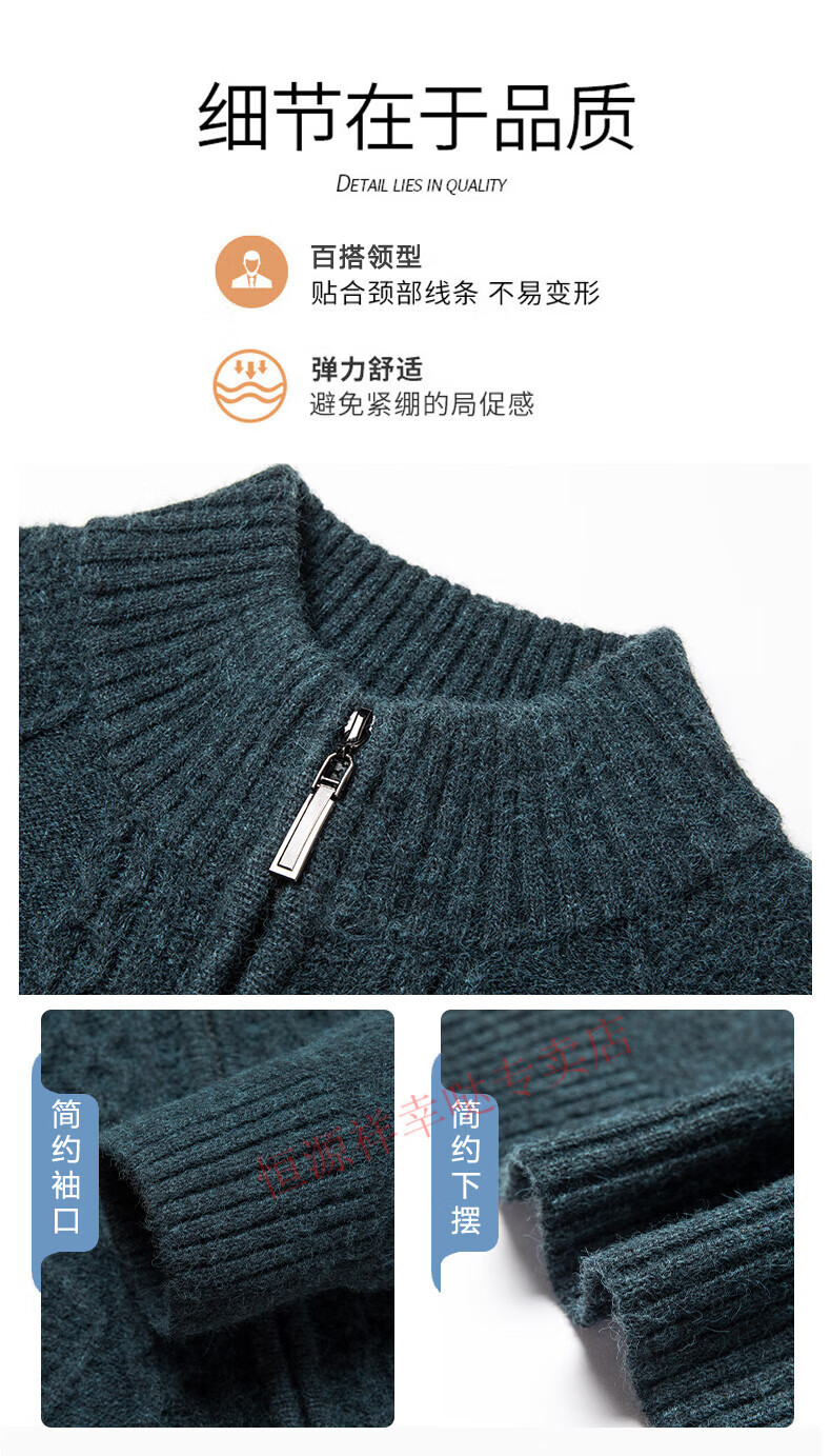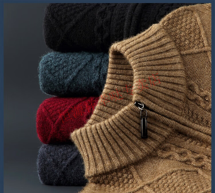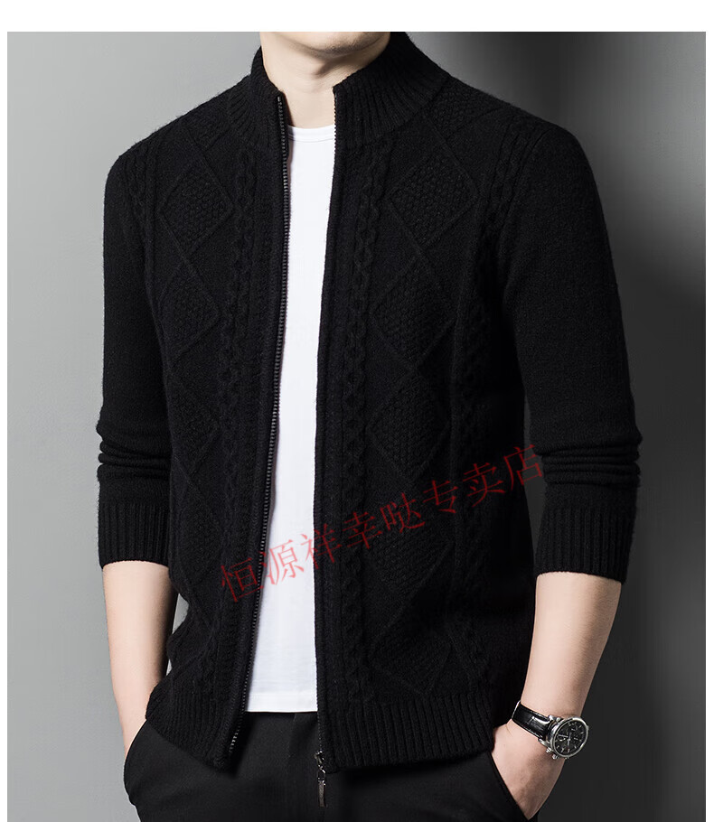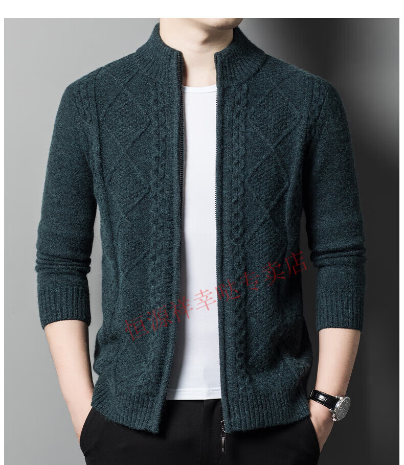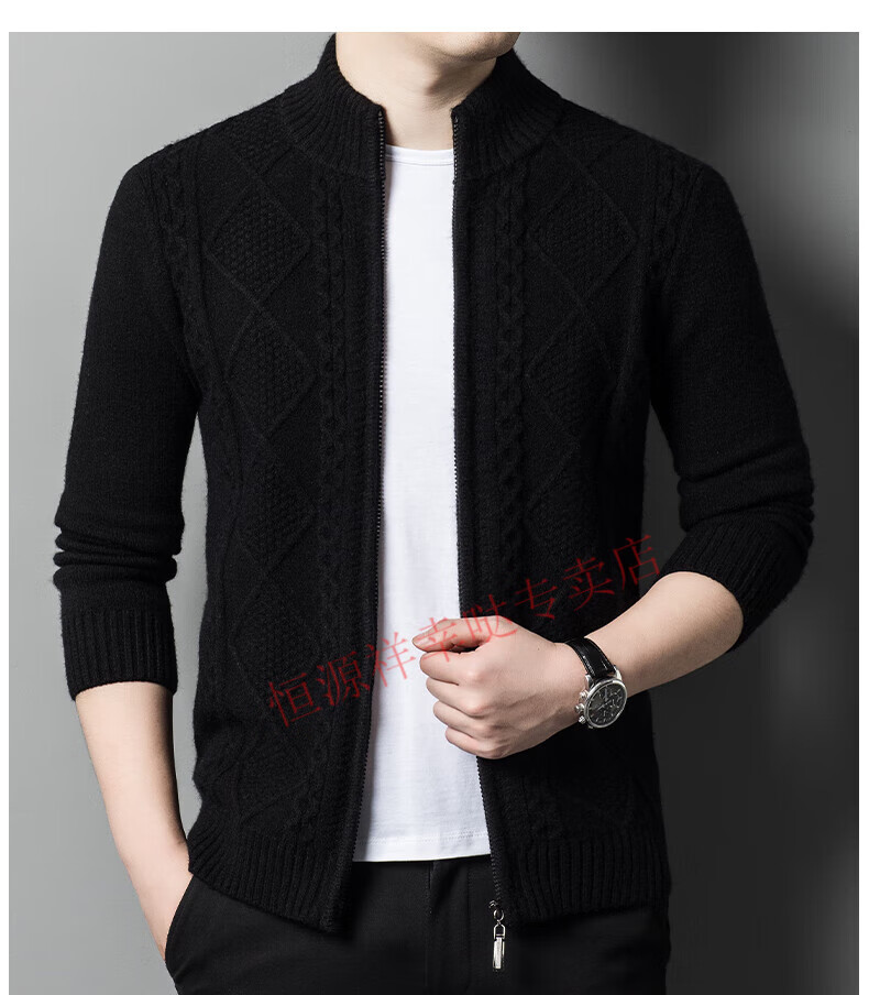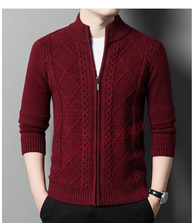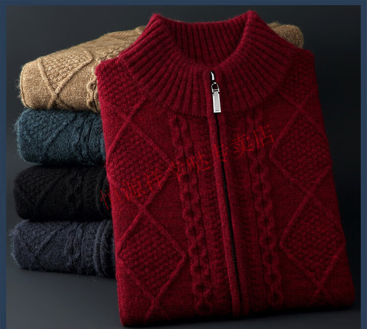 Hengyuanxiang 100% pure wool fleece men's autumn and winter thickened knitted cardigan coat sweater large size wool top men's camel pure new 100 175/XL