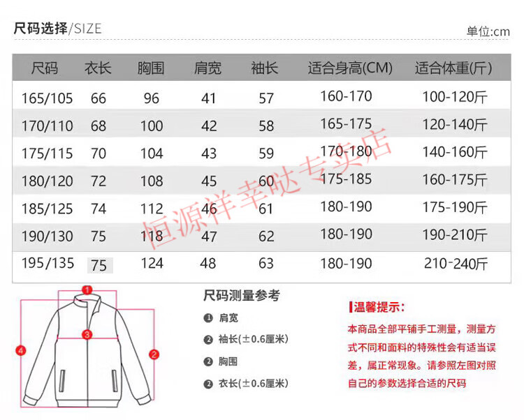 China (cm) 165 / 88-90 170 / 96-98 175 / 108-110 180 / 118-122 185 / 126-130