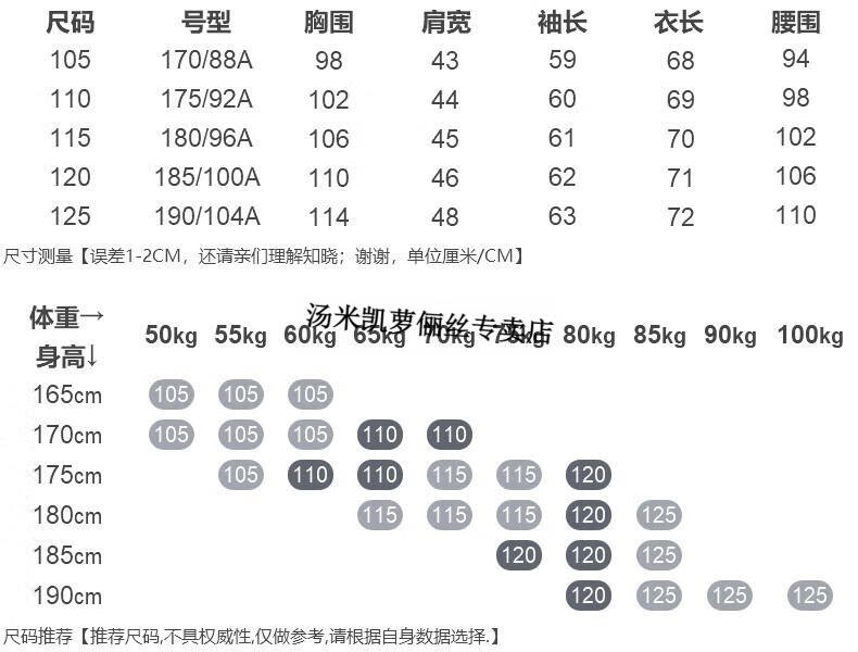 China (cm) 160-165/84-86 165-170 / 88-90 167-172 / 92-96 168-173 / 98-102 170-176 / 106-110