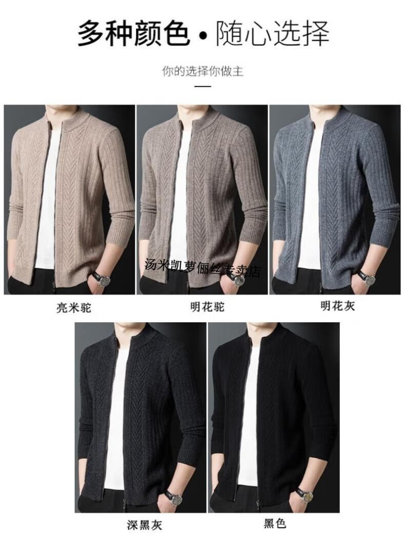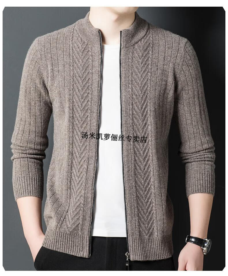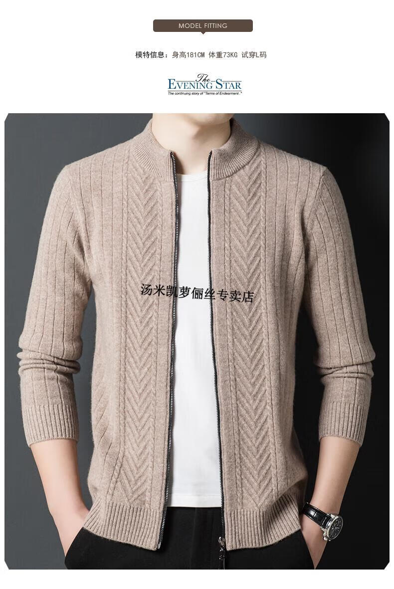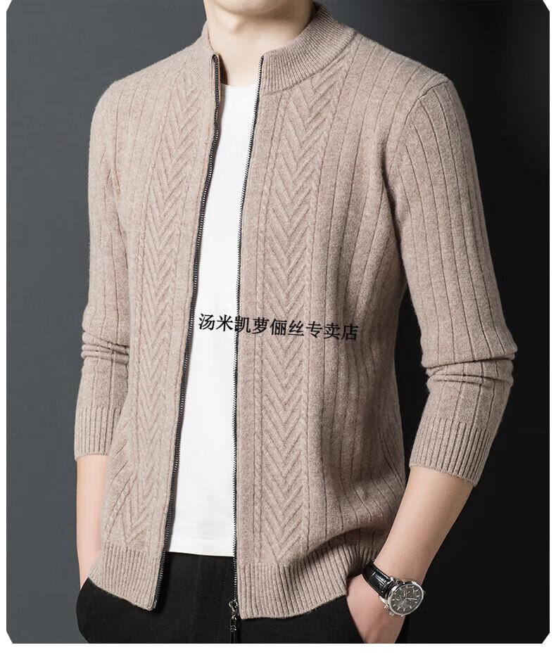 TOME BORNEK Tommy Tommy cardigan men's wool sweater cardigan 100% wool thickened warm zipper sweater jacket bright rice camel 105/M
