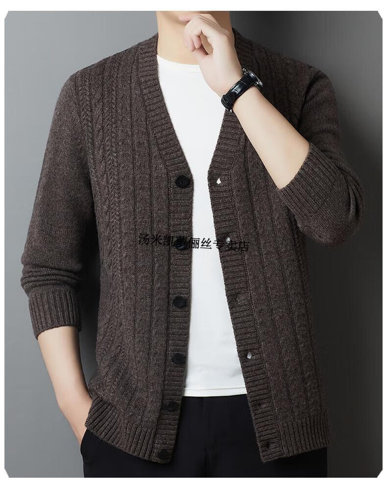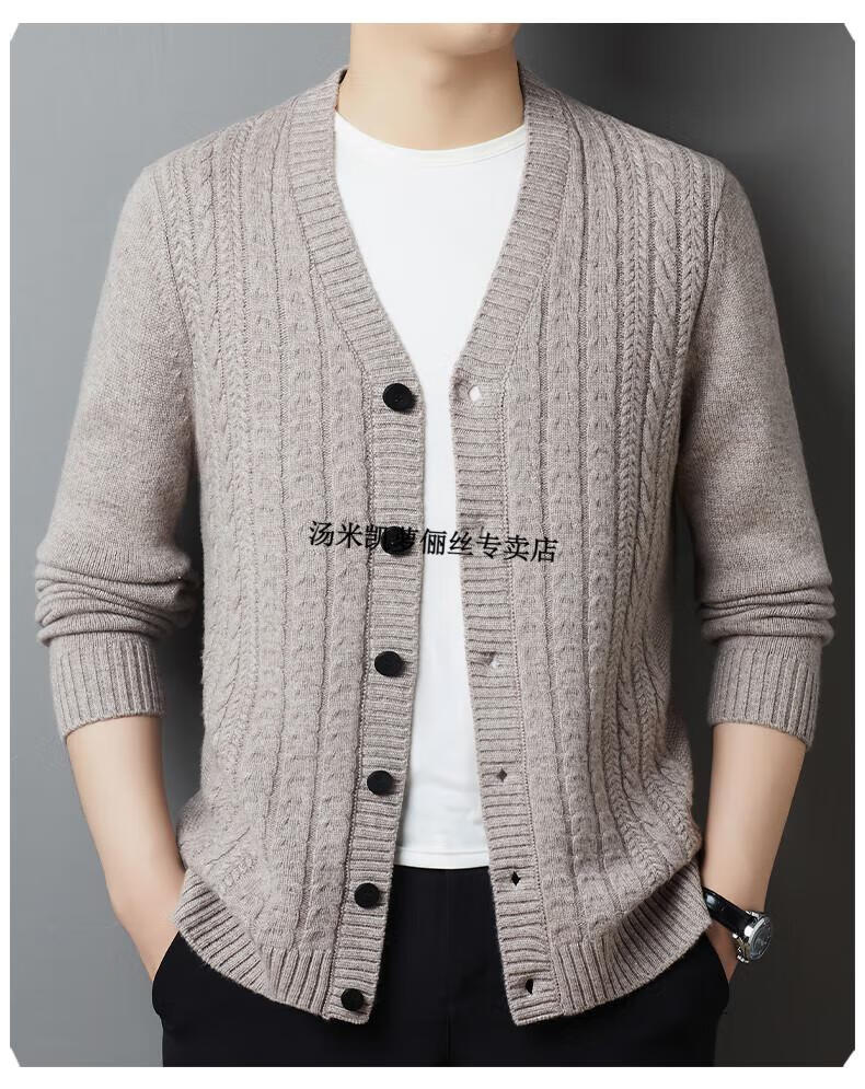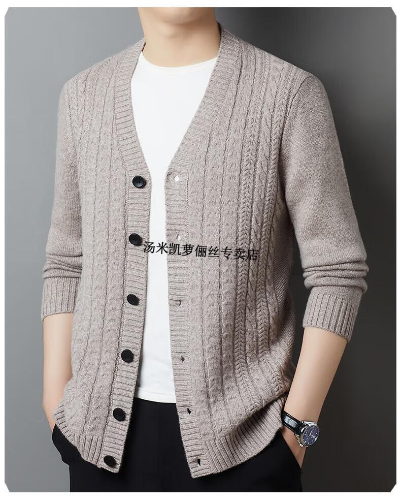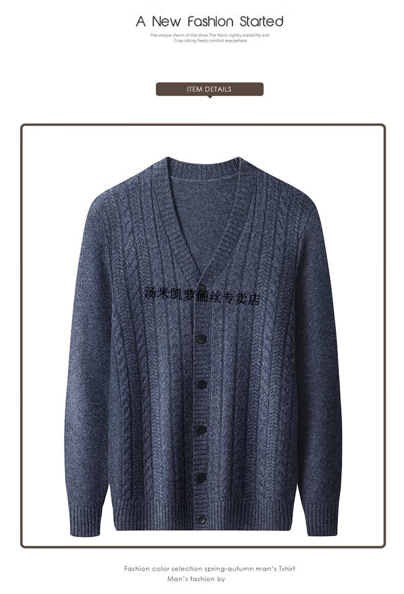 TOME BORNEK Tommy Tommy 100% wool cardigan men's high-end v-neck spring and autumn sweater jacket solid color casual men's wear medium gray 170/88A