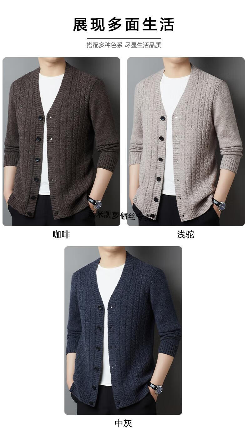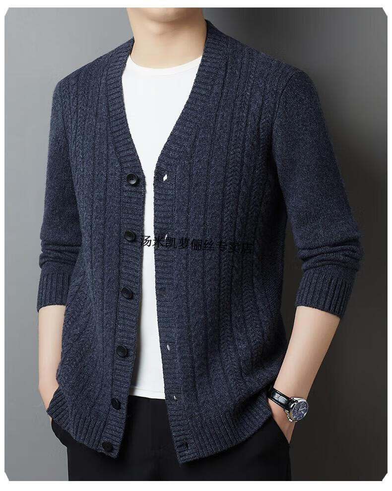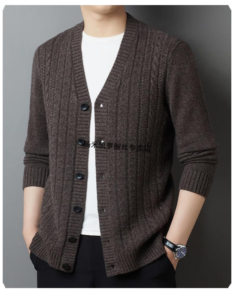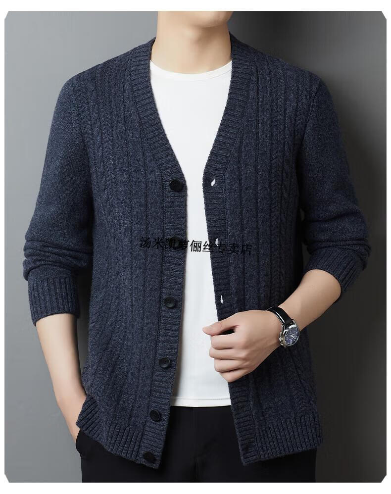 TOME BORNEK Tommy Tommy 100% wool cardigan men's high-end v-neck spring and autumn sweater jacket solid color casual men's wear medium gray 170/88A