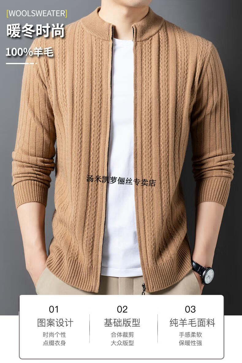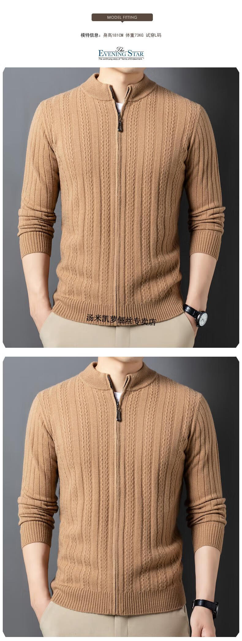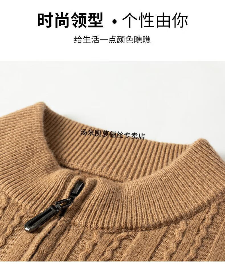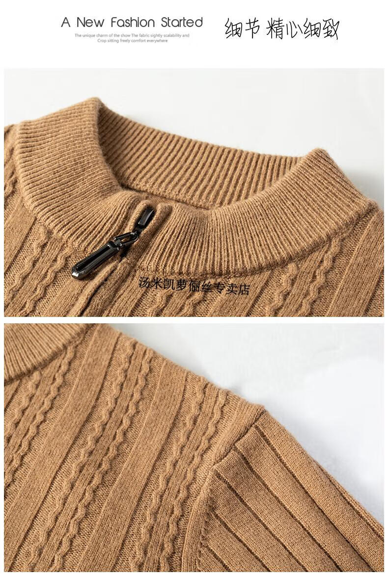 TOME BORNEK Tommy Tommy Men's Wool Knitted Cardigan Autumn and Winter Business Loose Sweater Long Sleeve Half Turtle Collar Jacket Casual Spring Jinhua Camel S 165