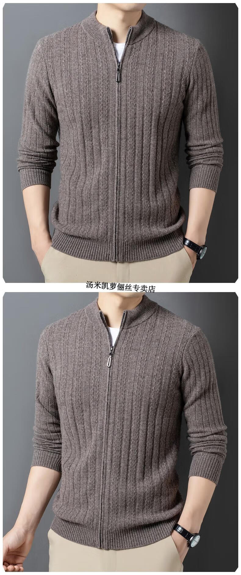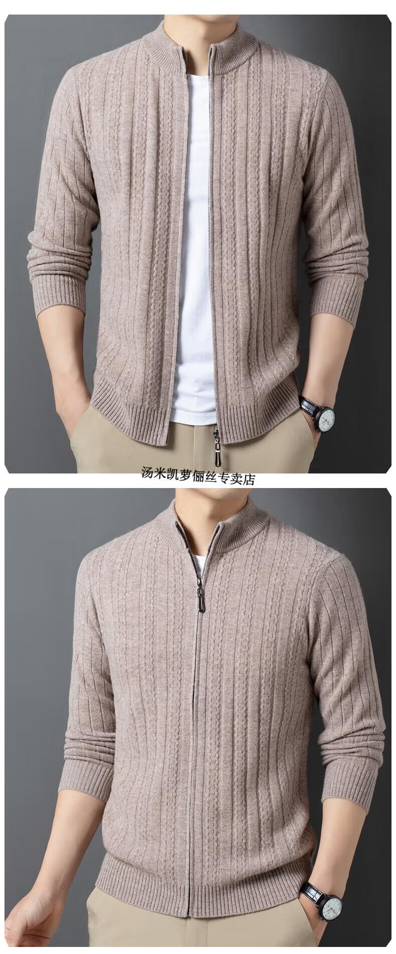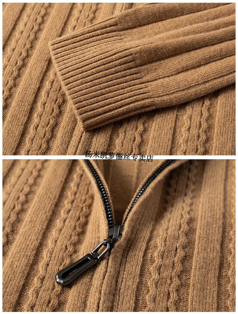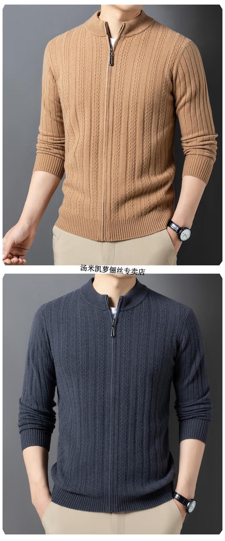 TOME BORNEK Tommy Tommy Men's Wool Knitted Cardigan Autumn and Winter Business Loose Sweater Long Sleeve Half Turtle Collar Jacket Casual Spring Jinhua Camel S 165