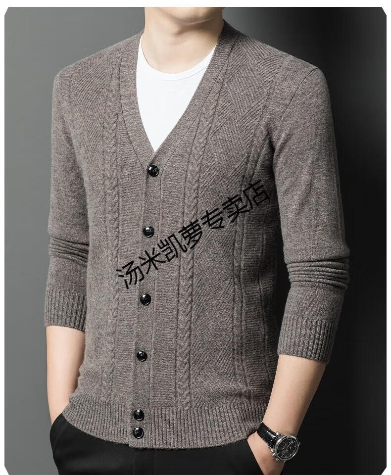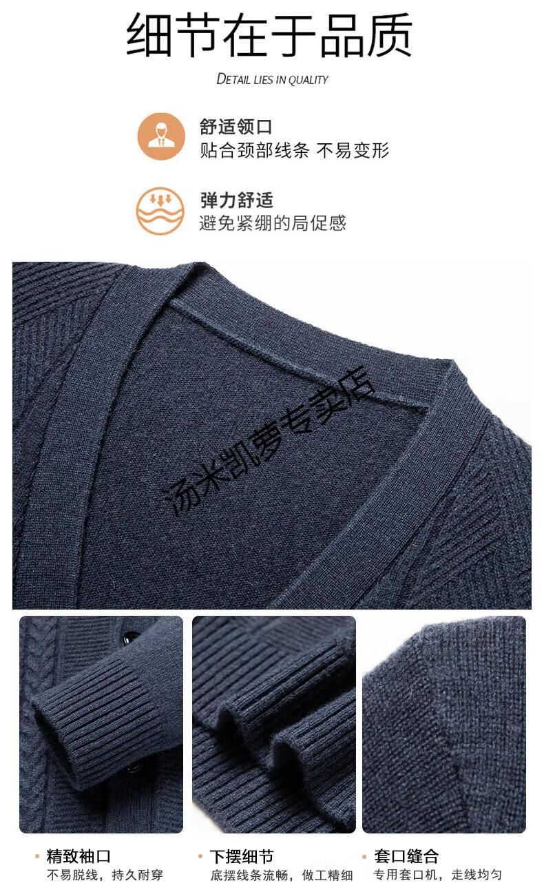 TOME BORNEK2024 New V-neck 100% Cardigan Sweater Men's Cardigan Jacket Casual Knitted Sweater Autumn and Winter Sweater Dad's Wear Yanyutuo 105