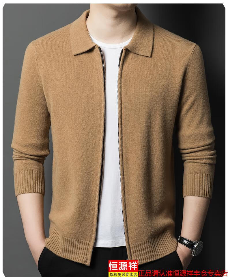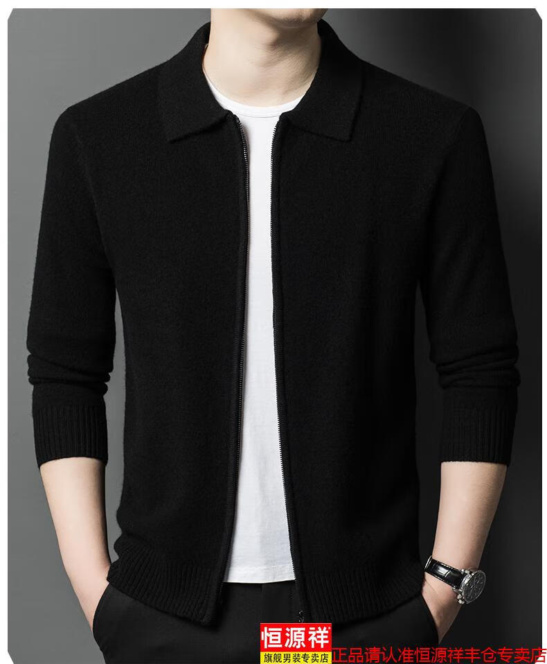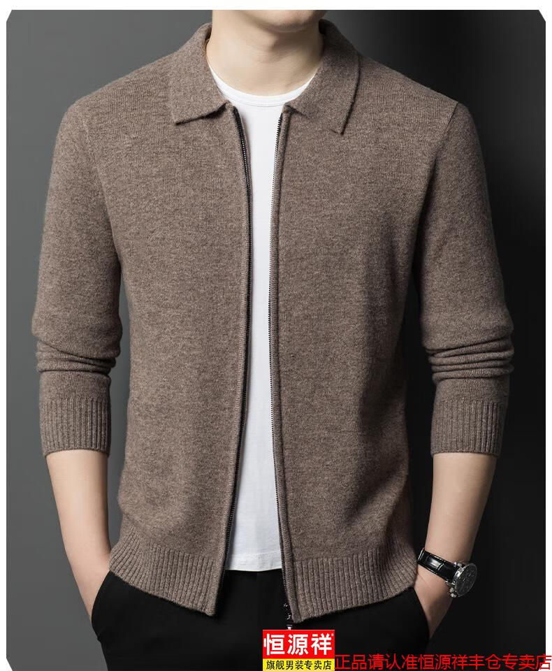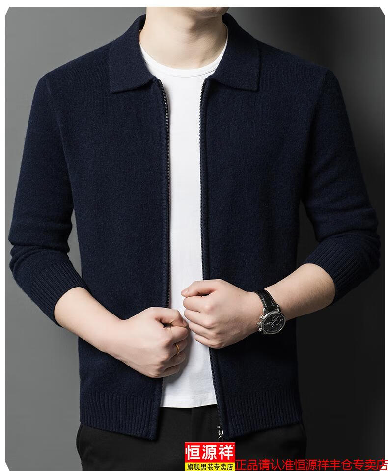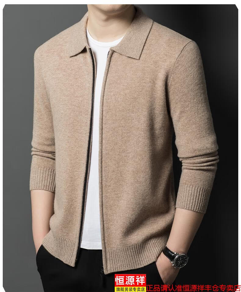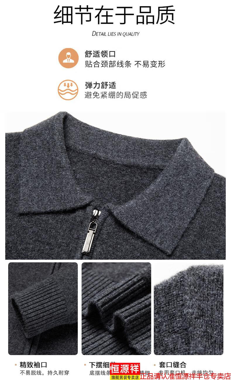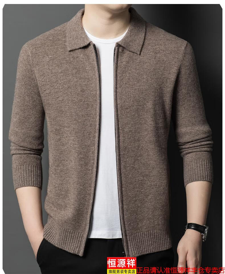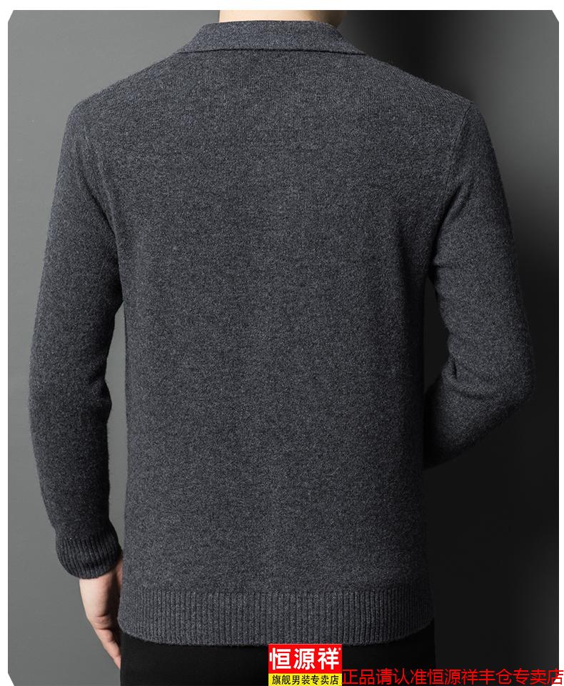 Hengyuanxiang light luxury high-end cashmere cardigan for men, full zipper sweater, autumn and winter thickened lapel sweater jacket, versatile new style, medium gray M 165