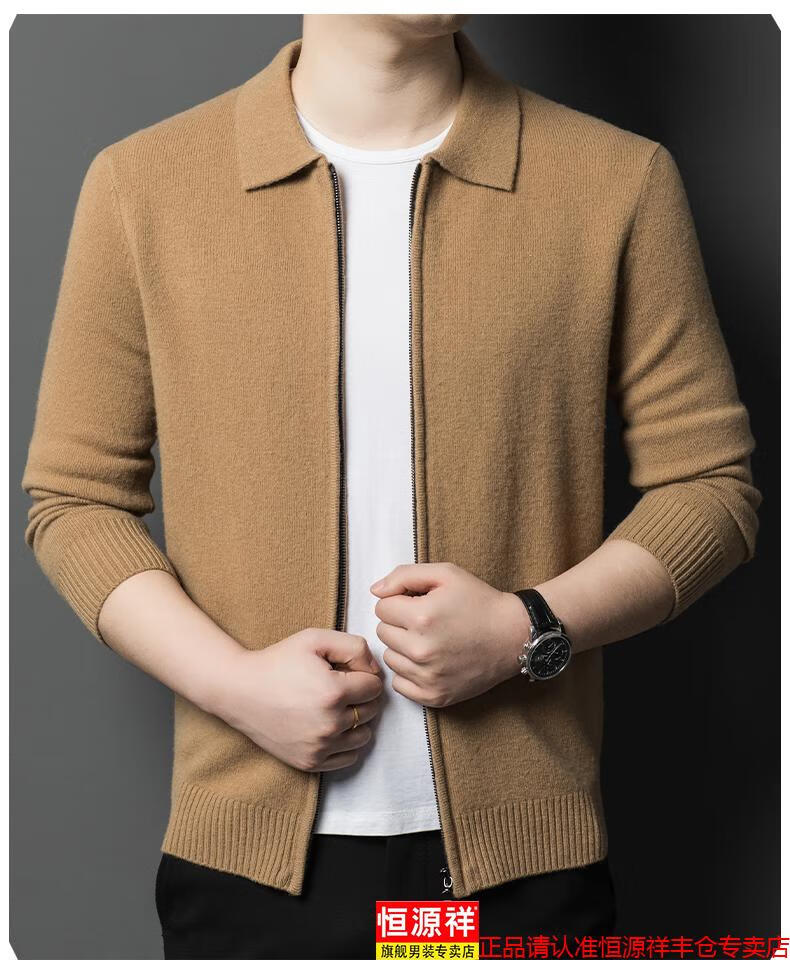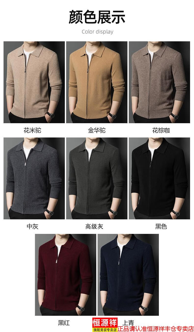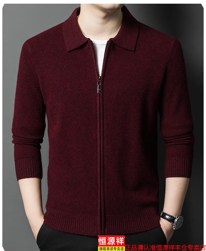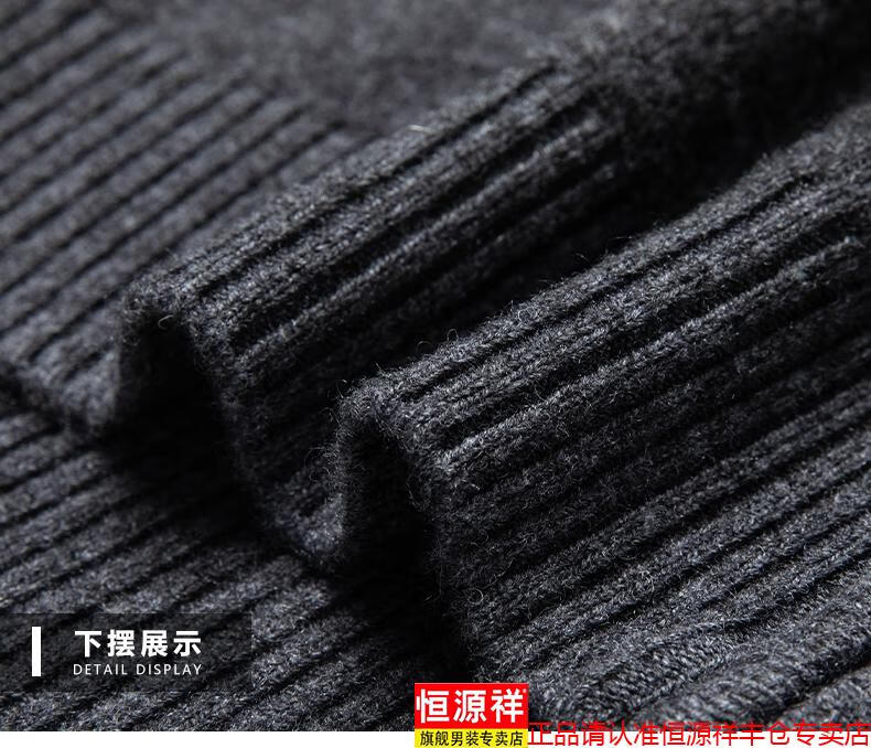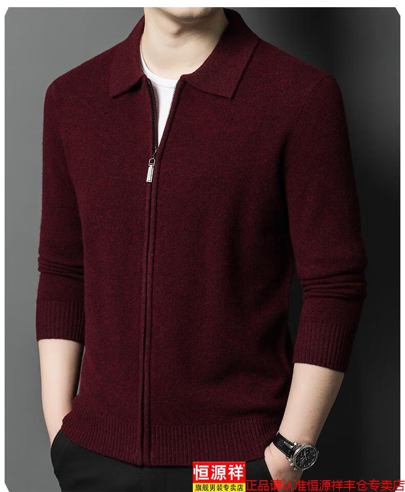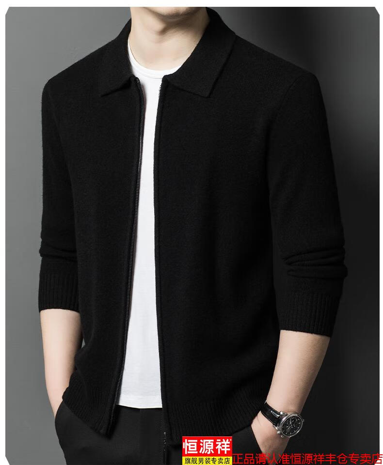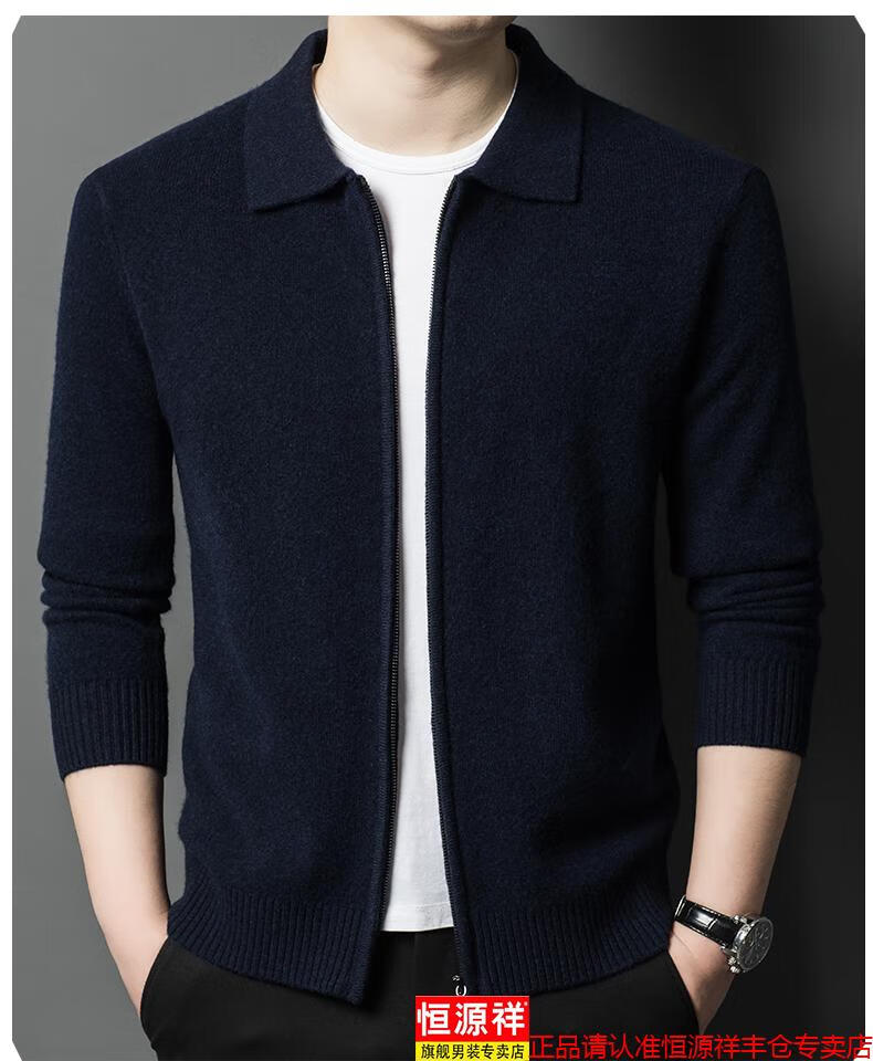 Hengyuanxiang light luxury high-end cashmere cardigan for men, full zipper sweater, autumn and winter thickened lapel sweater jacket, versatile new style, medium gray M 165