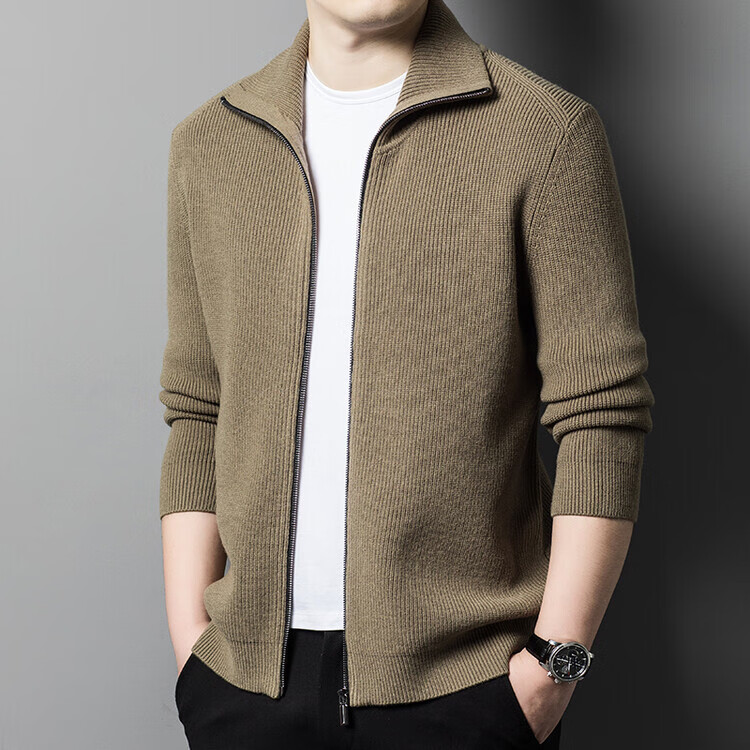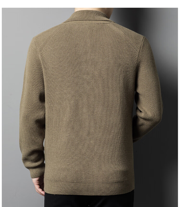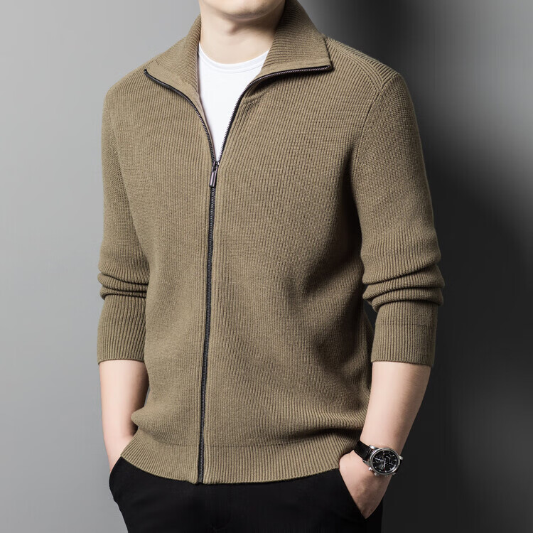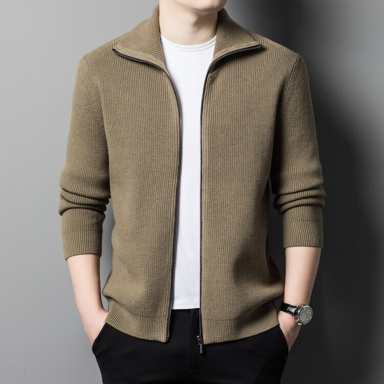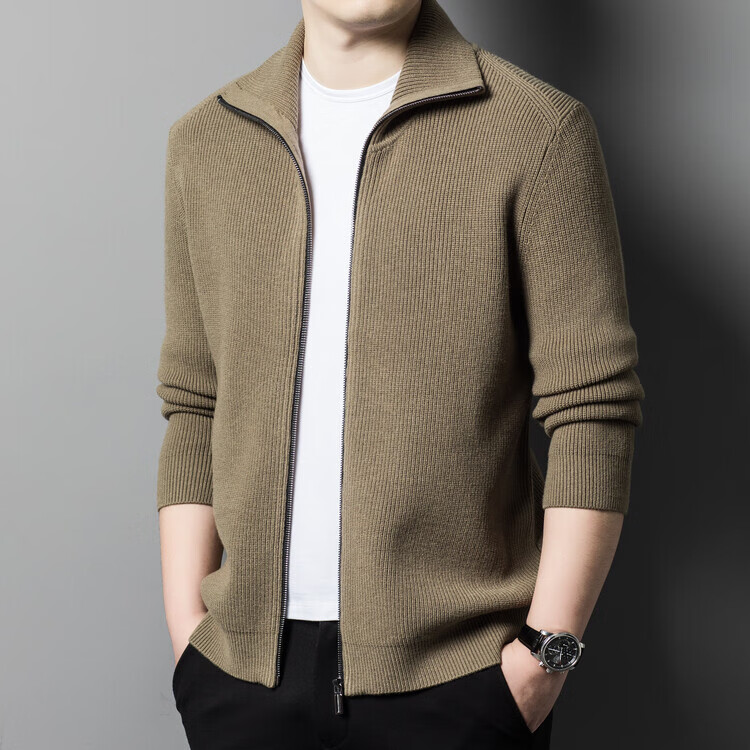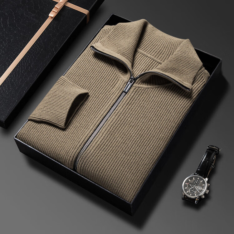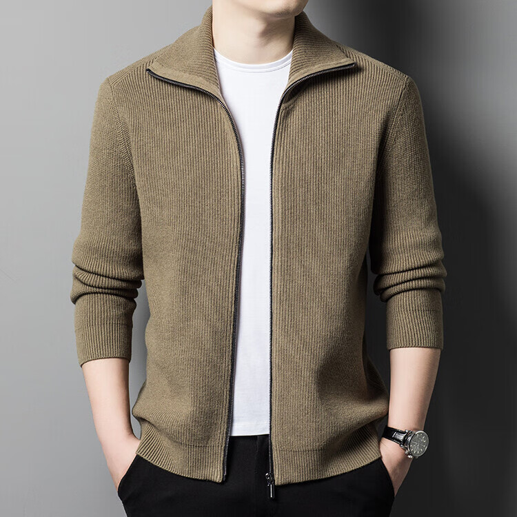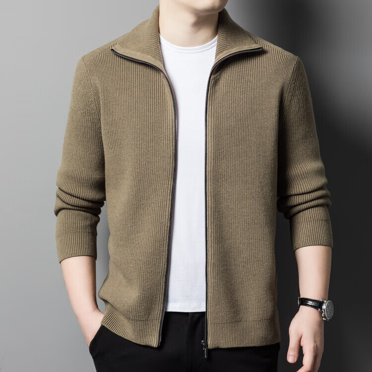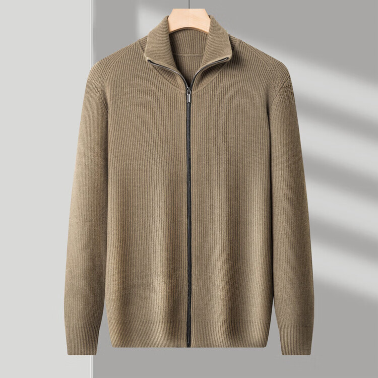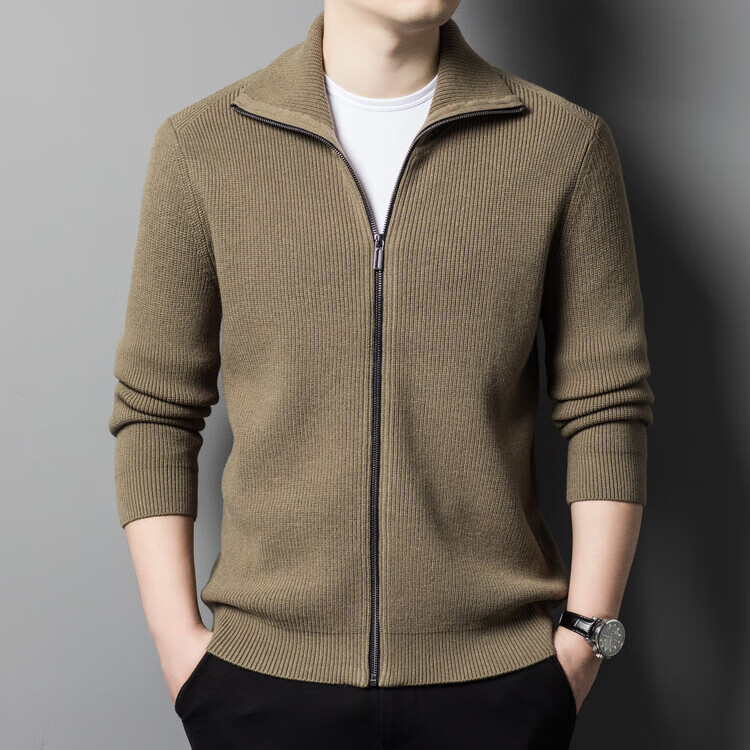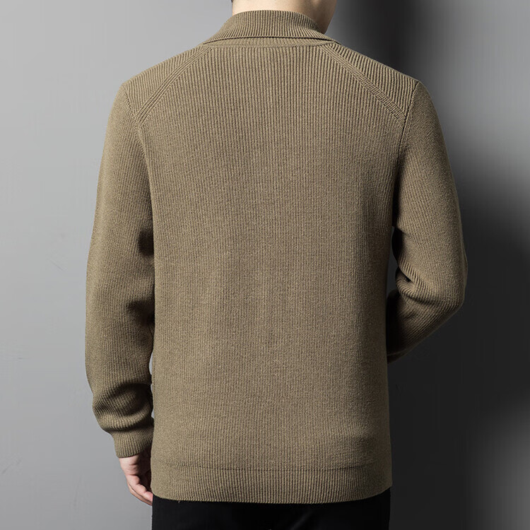 Hengyuanxiang Erdo pure wool cardigan men's autumn and winter middle-aged thickened lapel fashion sweater sweater zipper jacket tea green 175