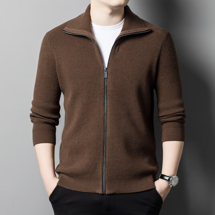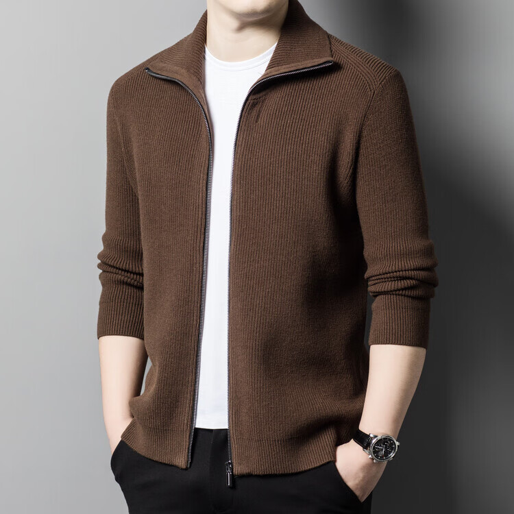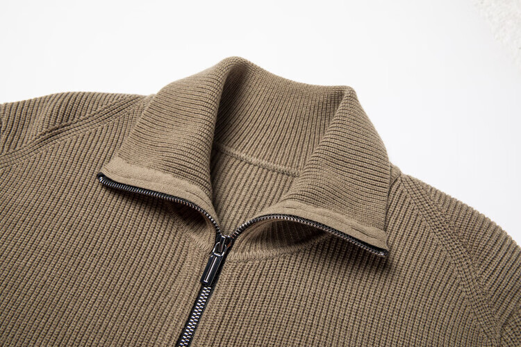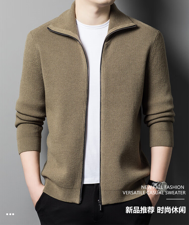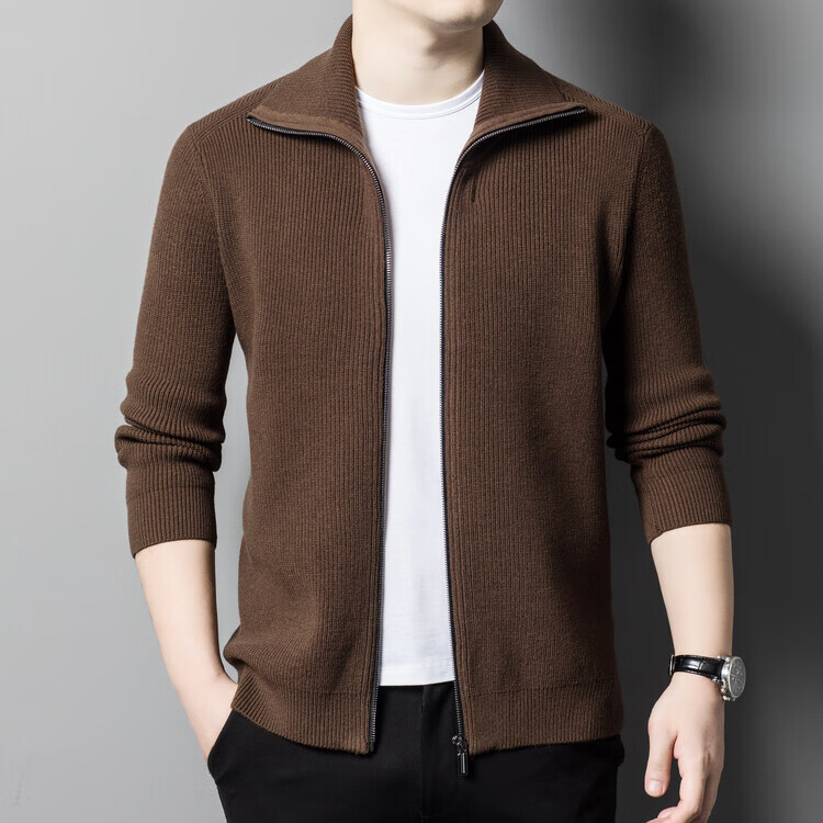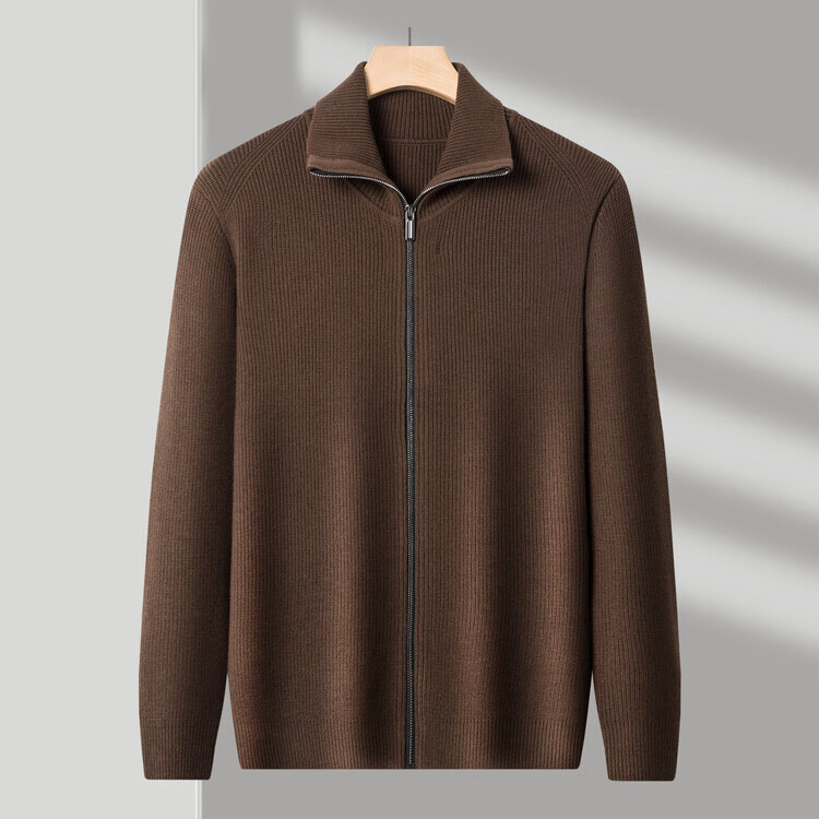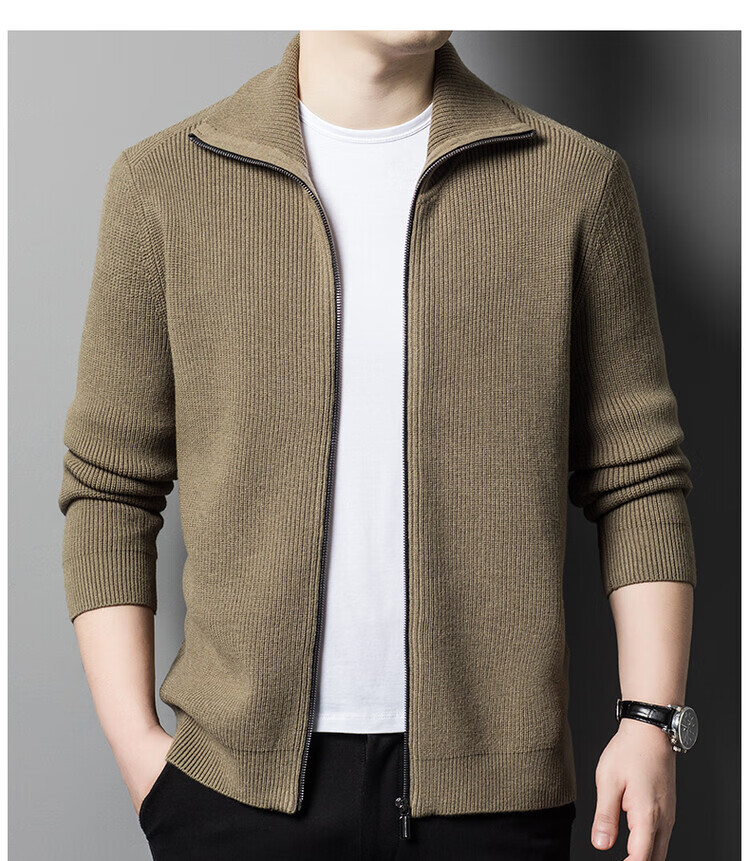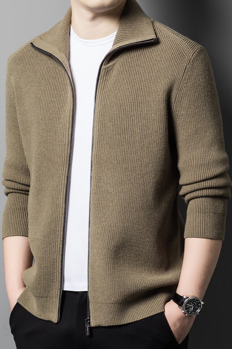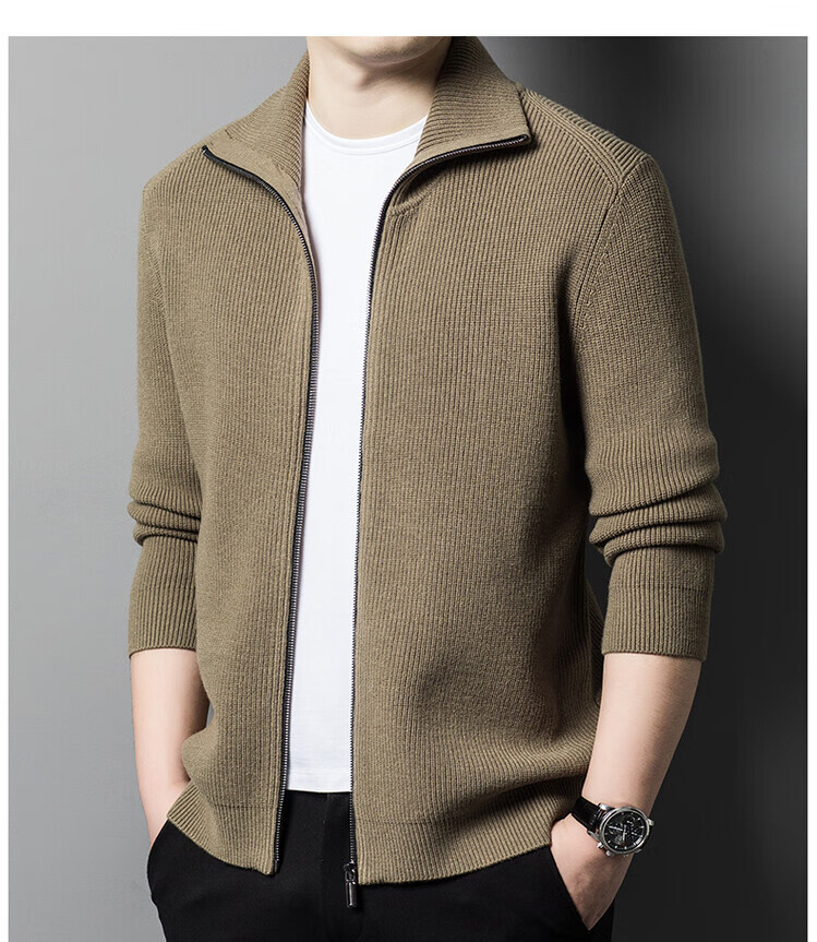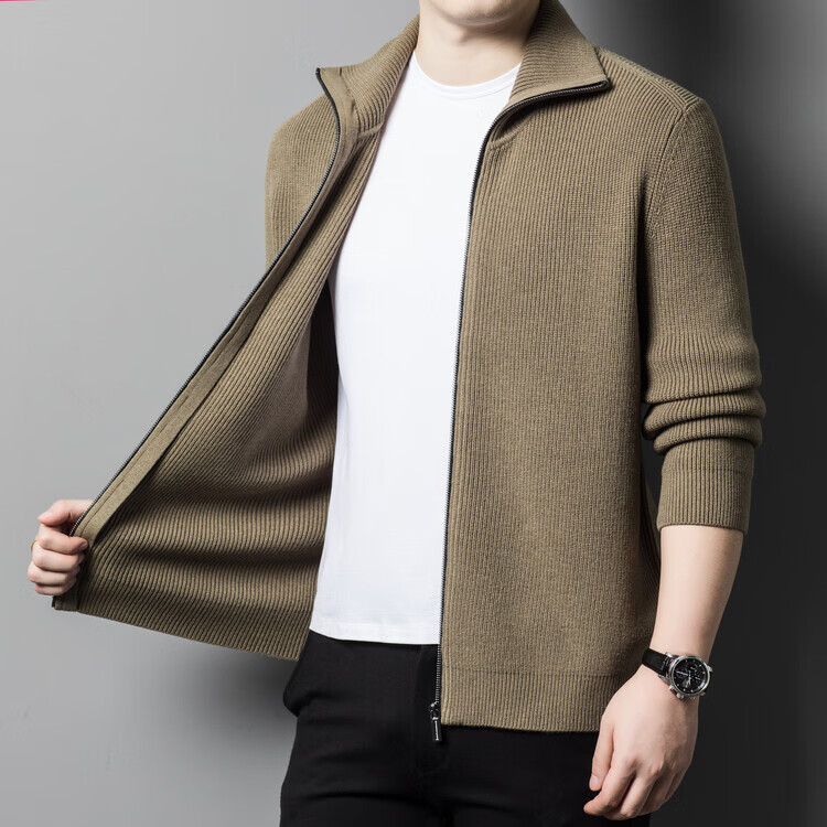 Hengyuanxiang Erdo pure wool cardigan men's autumn and winter middle-aged thickened lapel fashion sweater sweater zipper jacket tea green 175