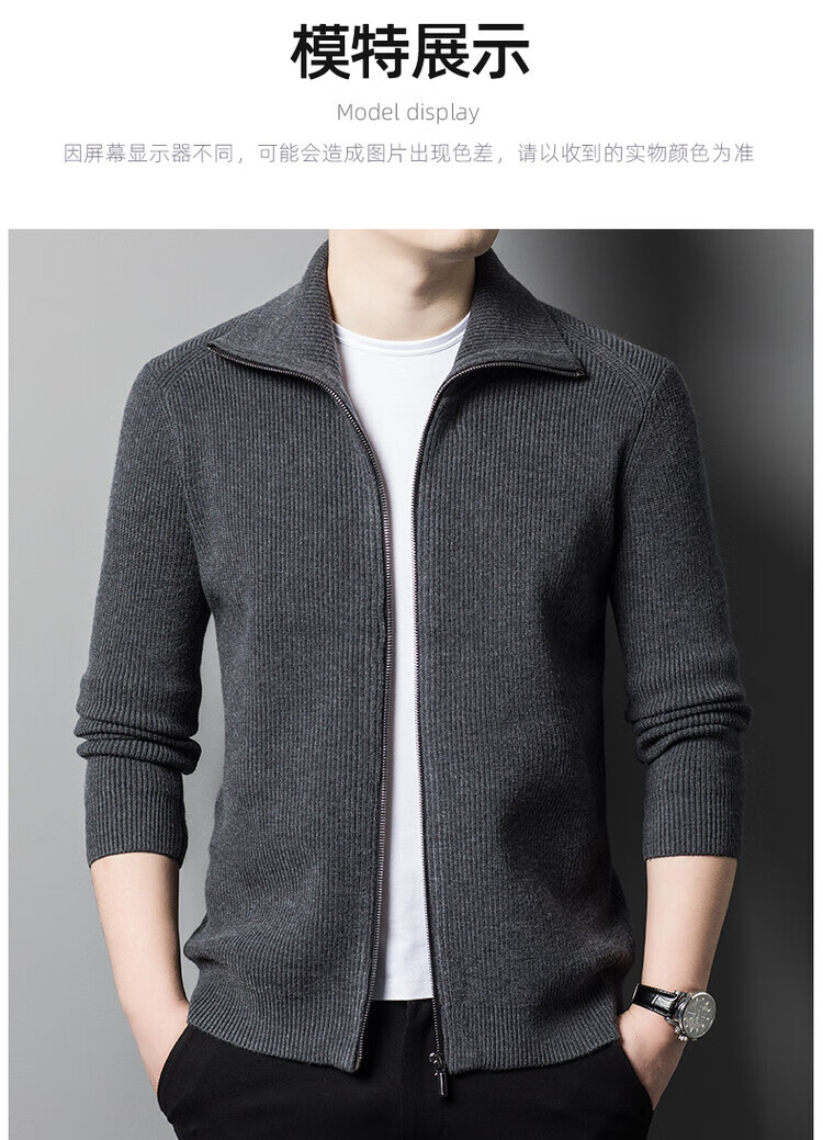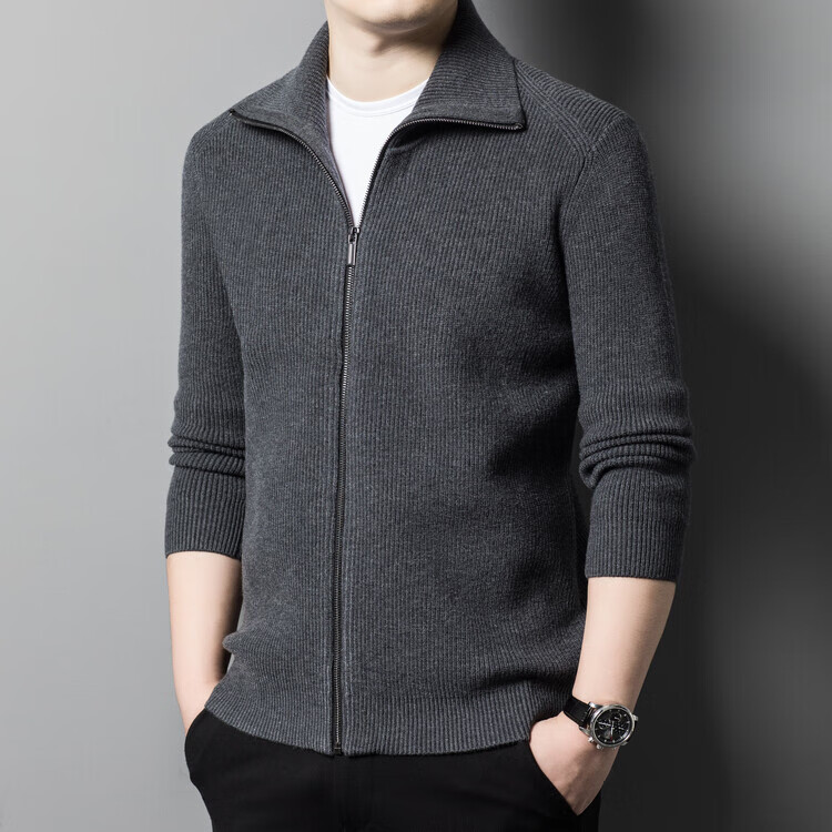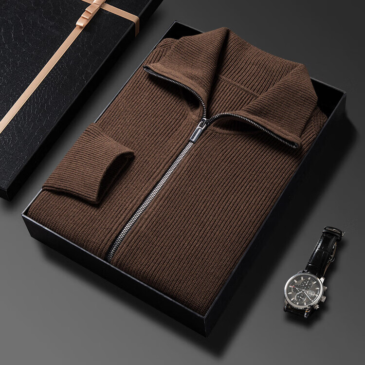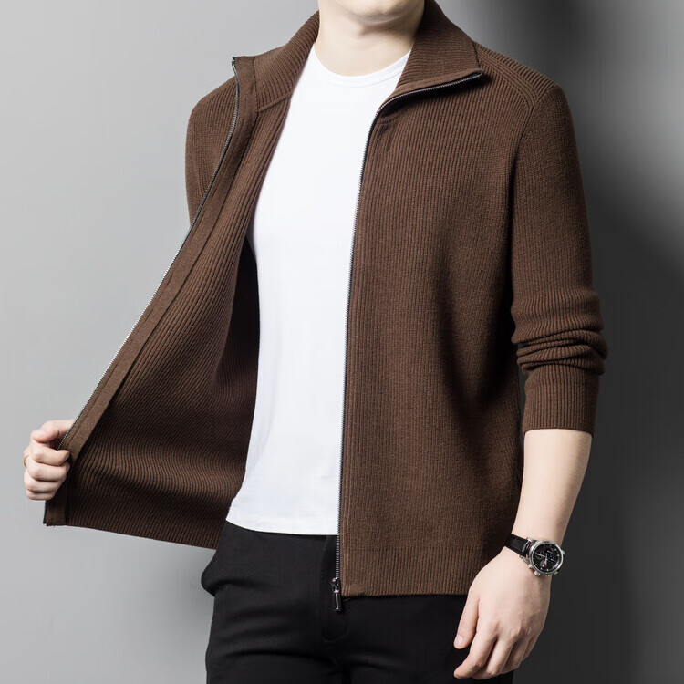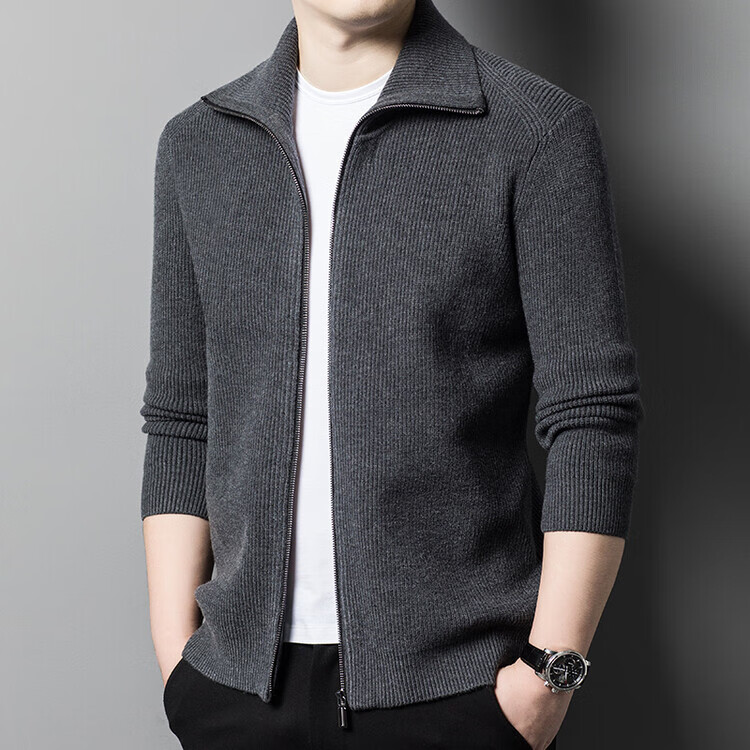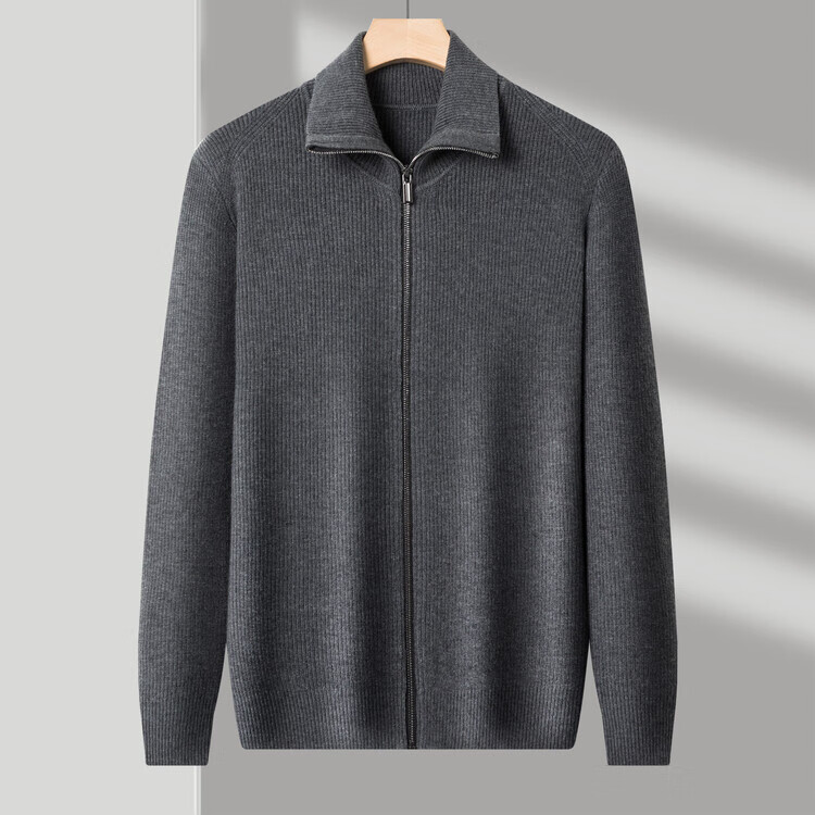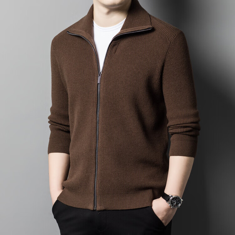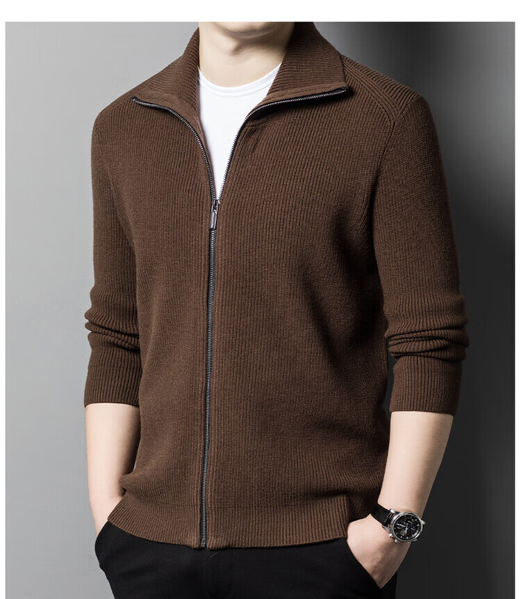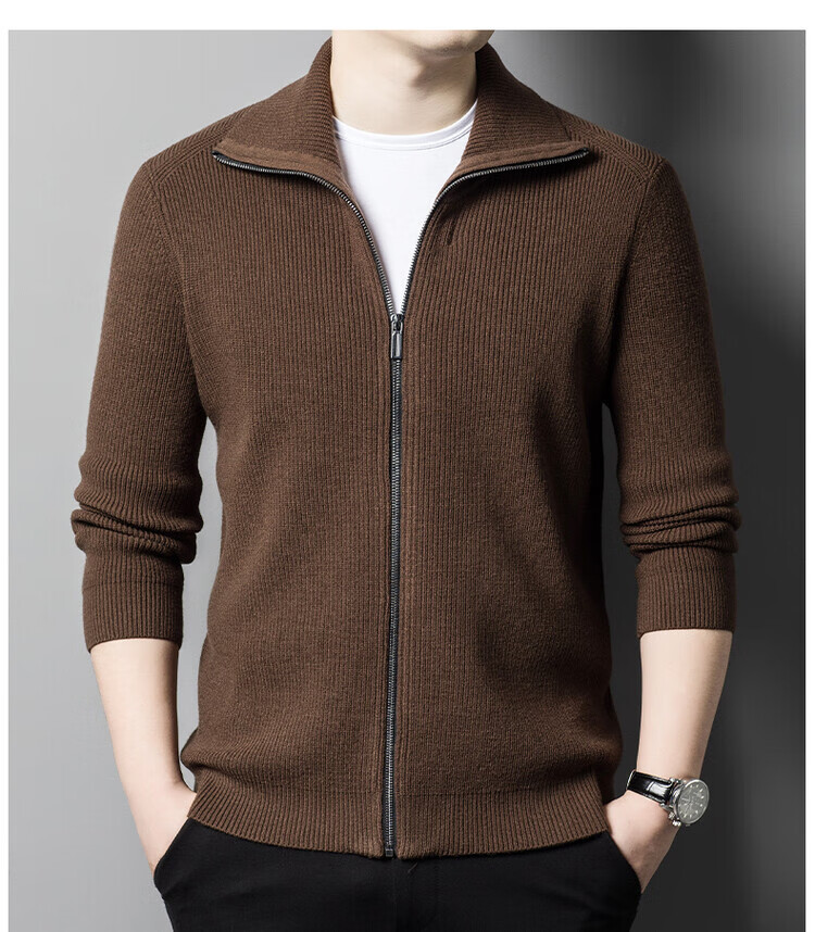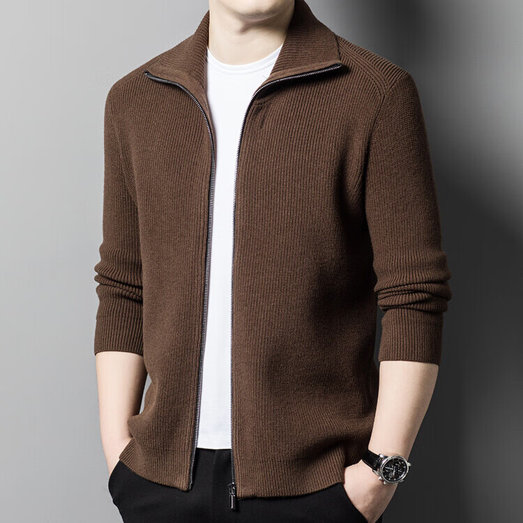Hengyuanxiang Erdo pure wool cardigan men's autumn and winter middle-aged thickened lapel fashion sweater sweater zipper jacket tea green 175