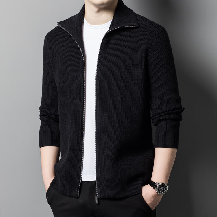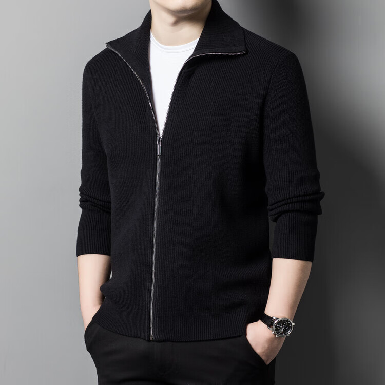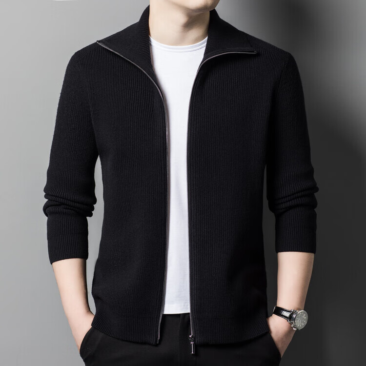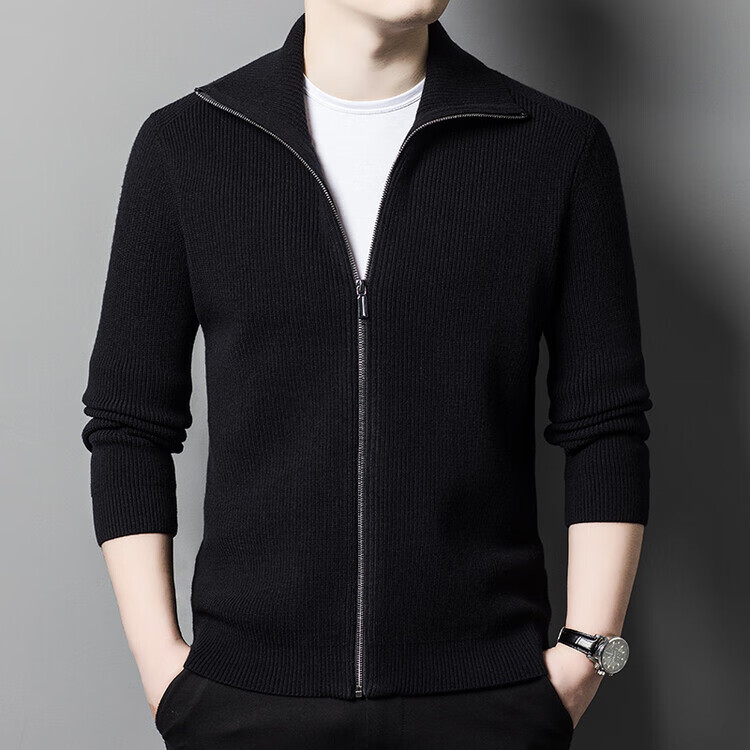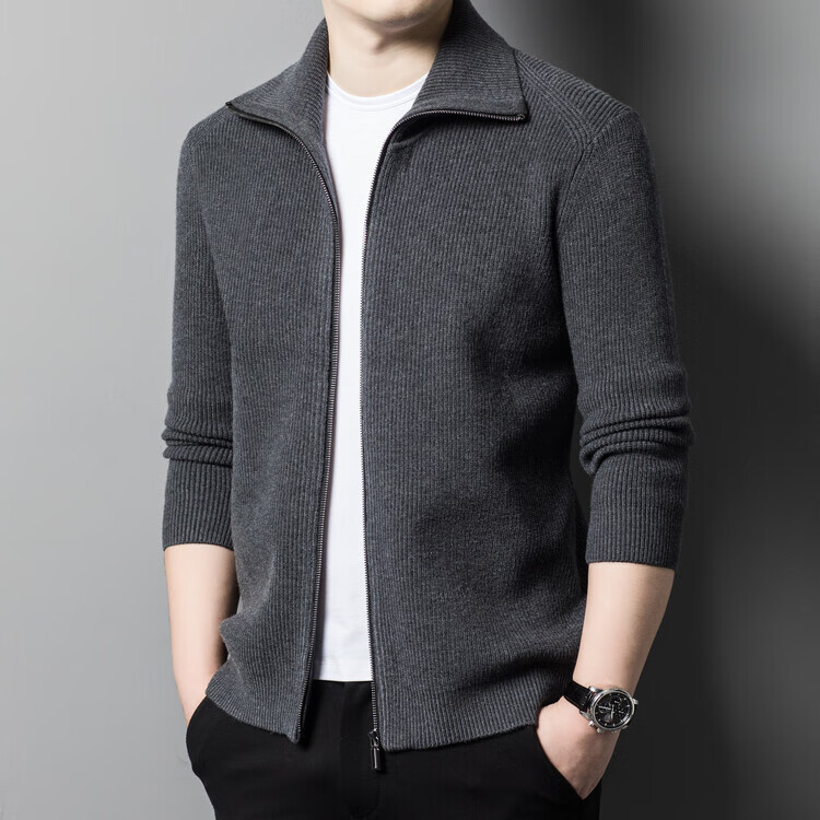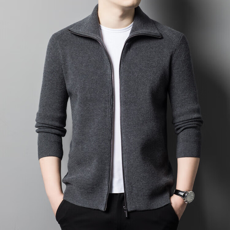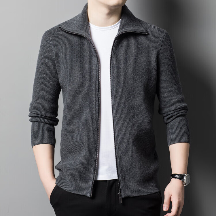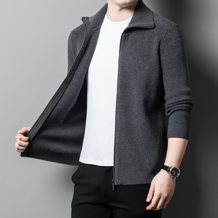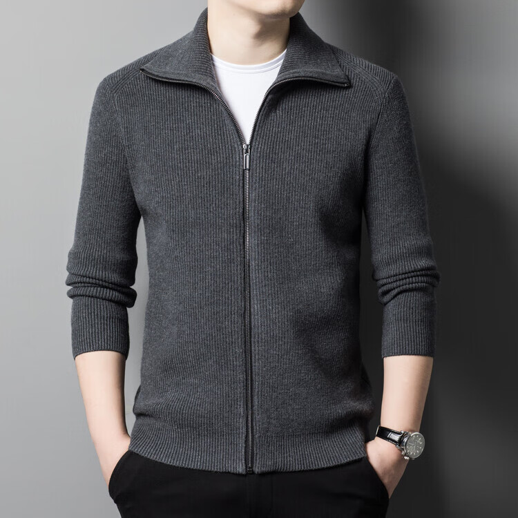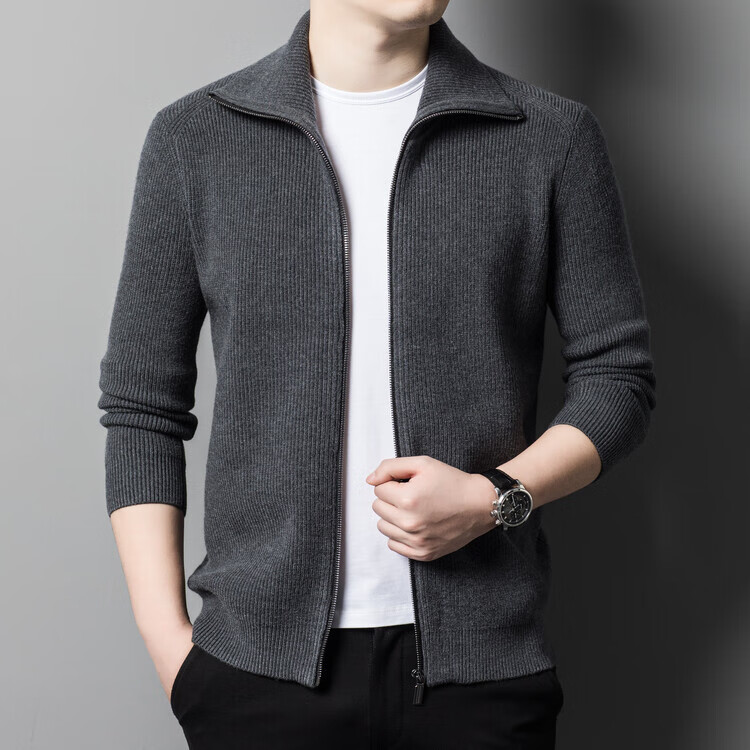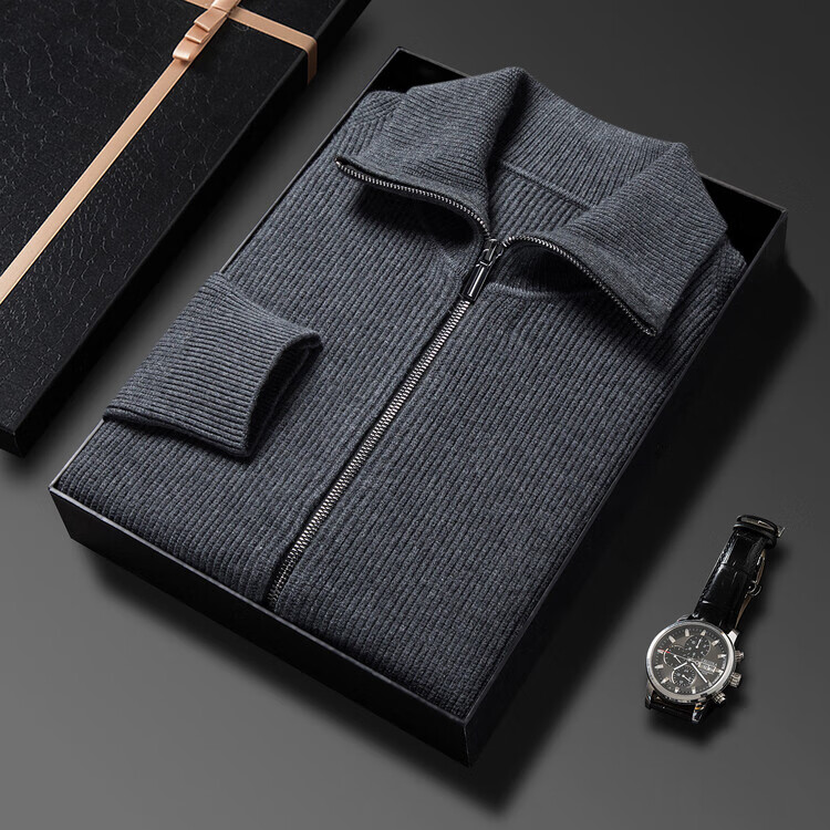 Hengyuanxiang Erdo pure wool cardigan men's autumn and winter middle-aged thickened lapel fashion sweater sweater zipper jacket tea green 175
