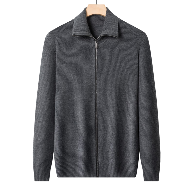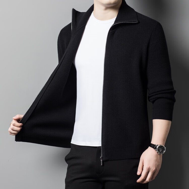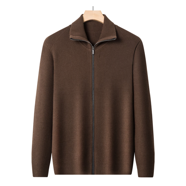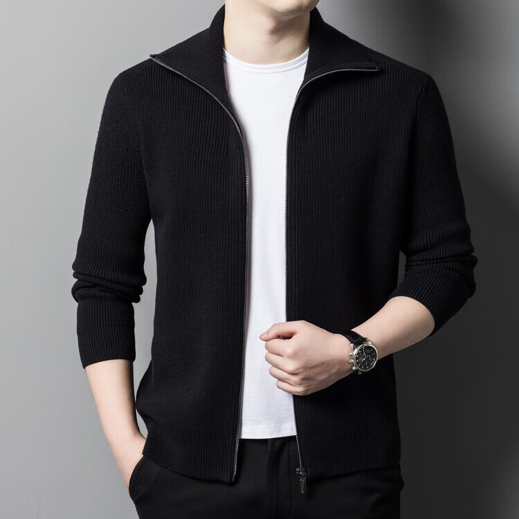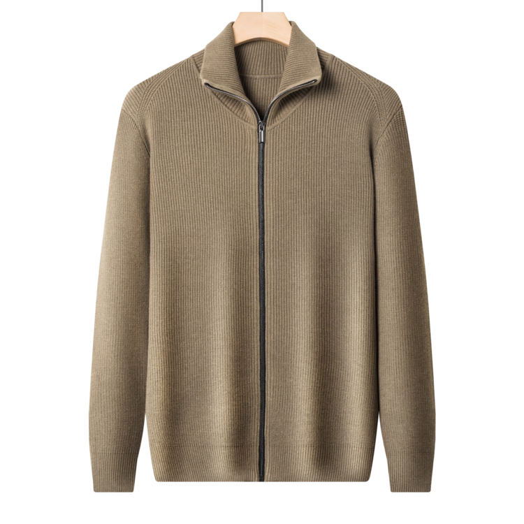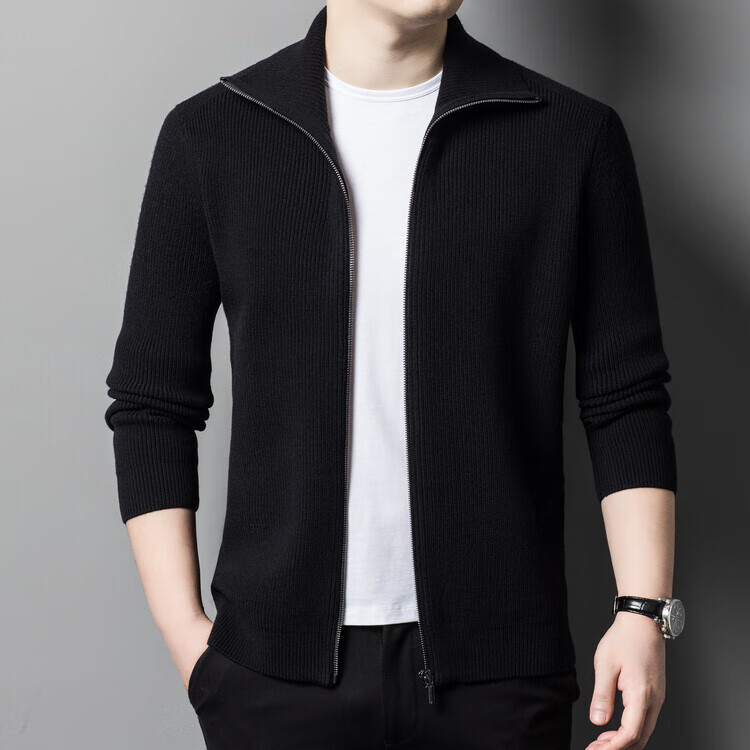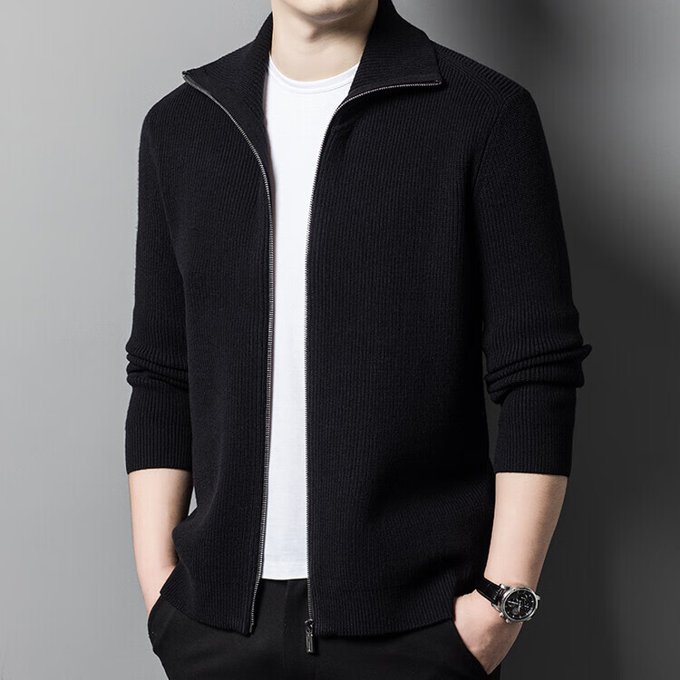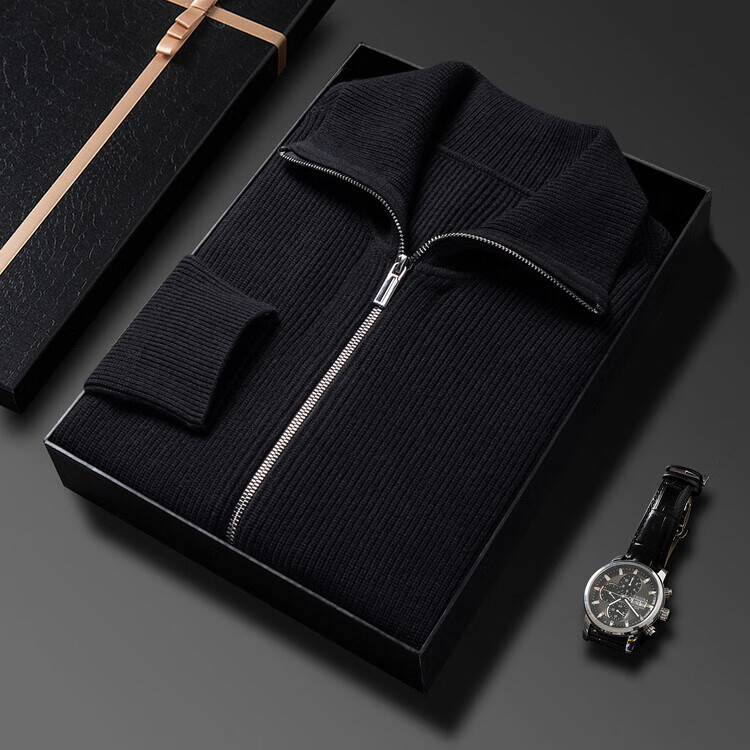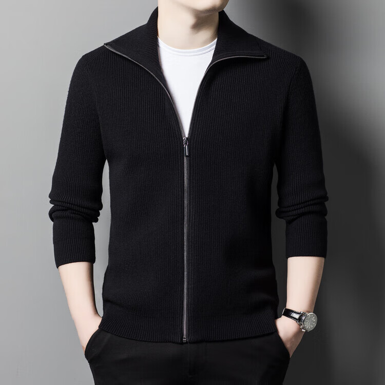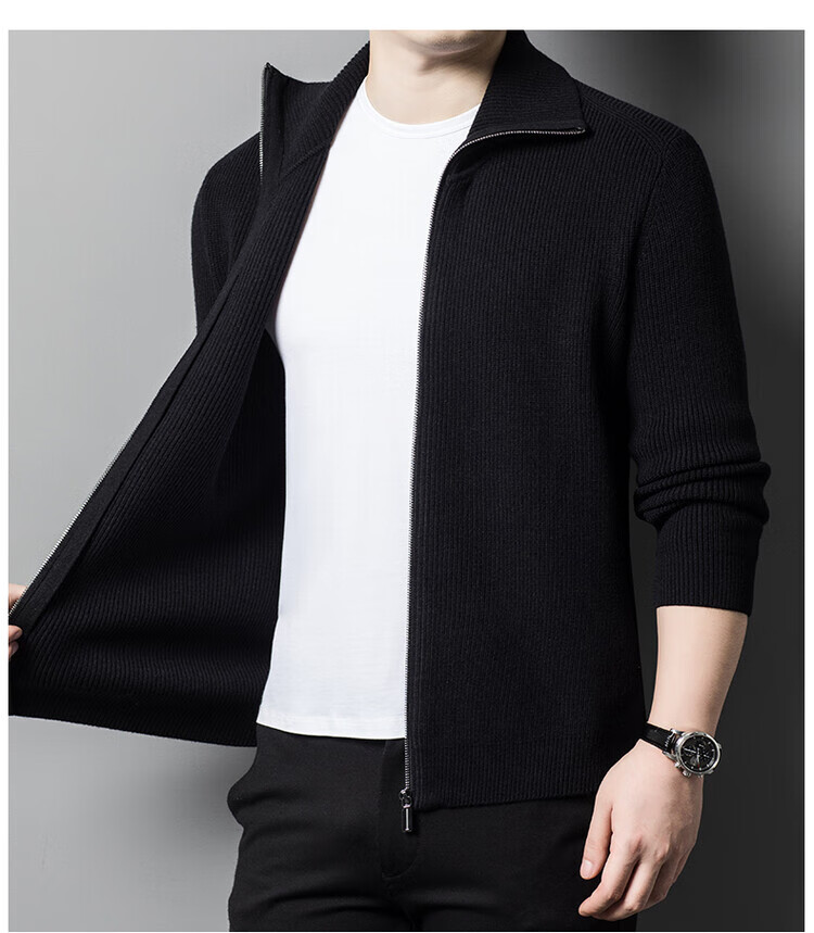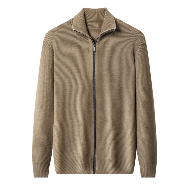 Hengyuanxiang Erdo pure wool cardigan men's autumn and winter middle-aged thickened lapel fashion sweater sweater zipper jacket tea green 175