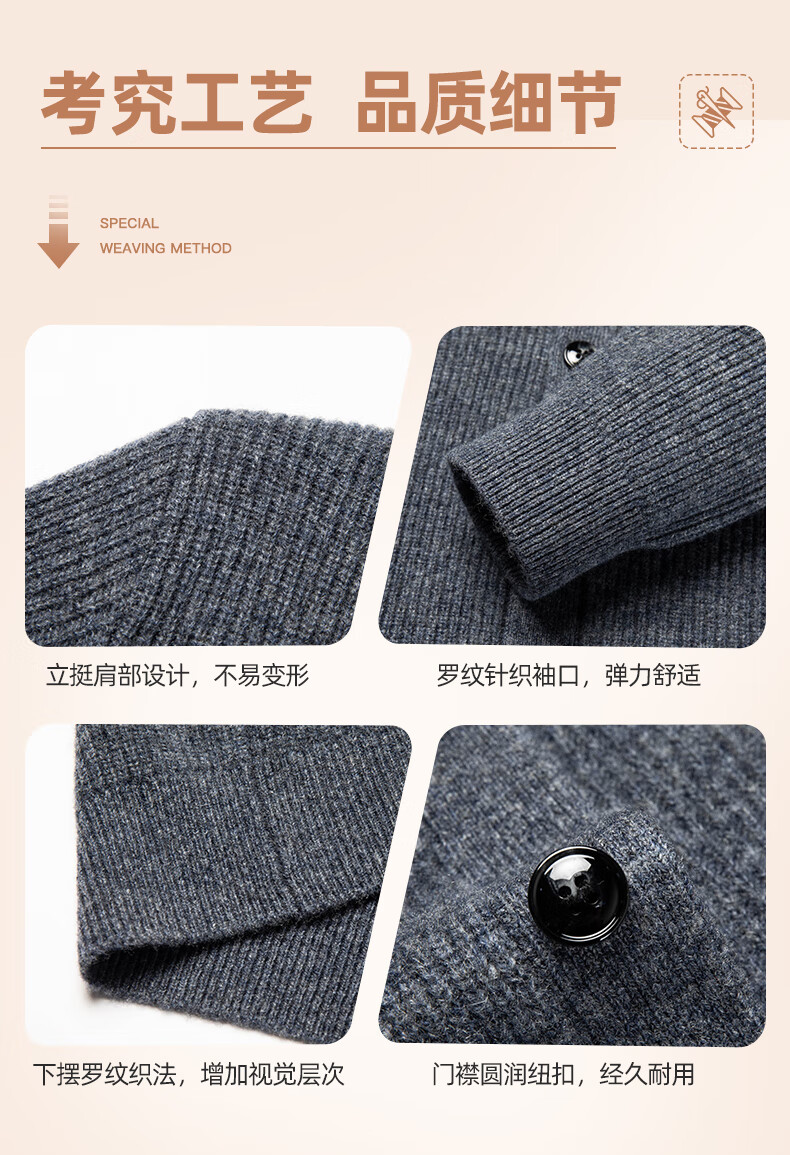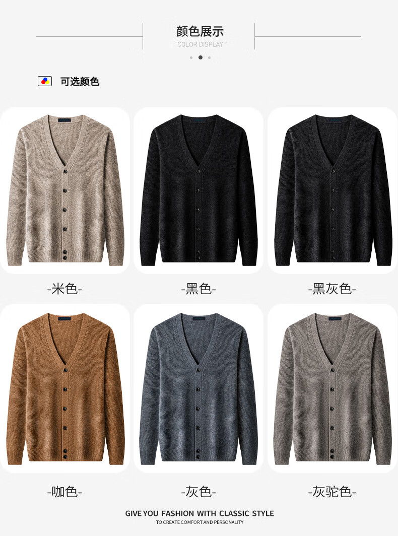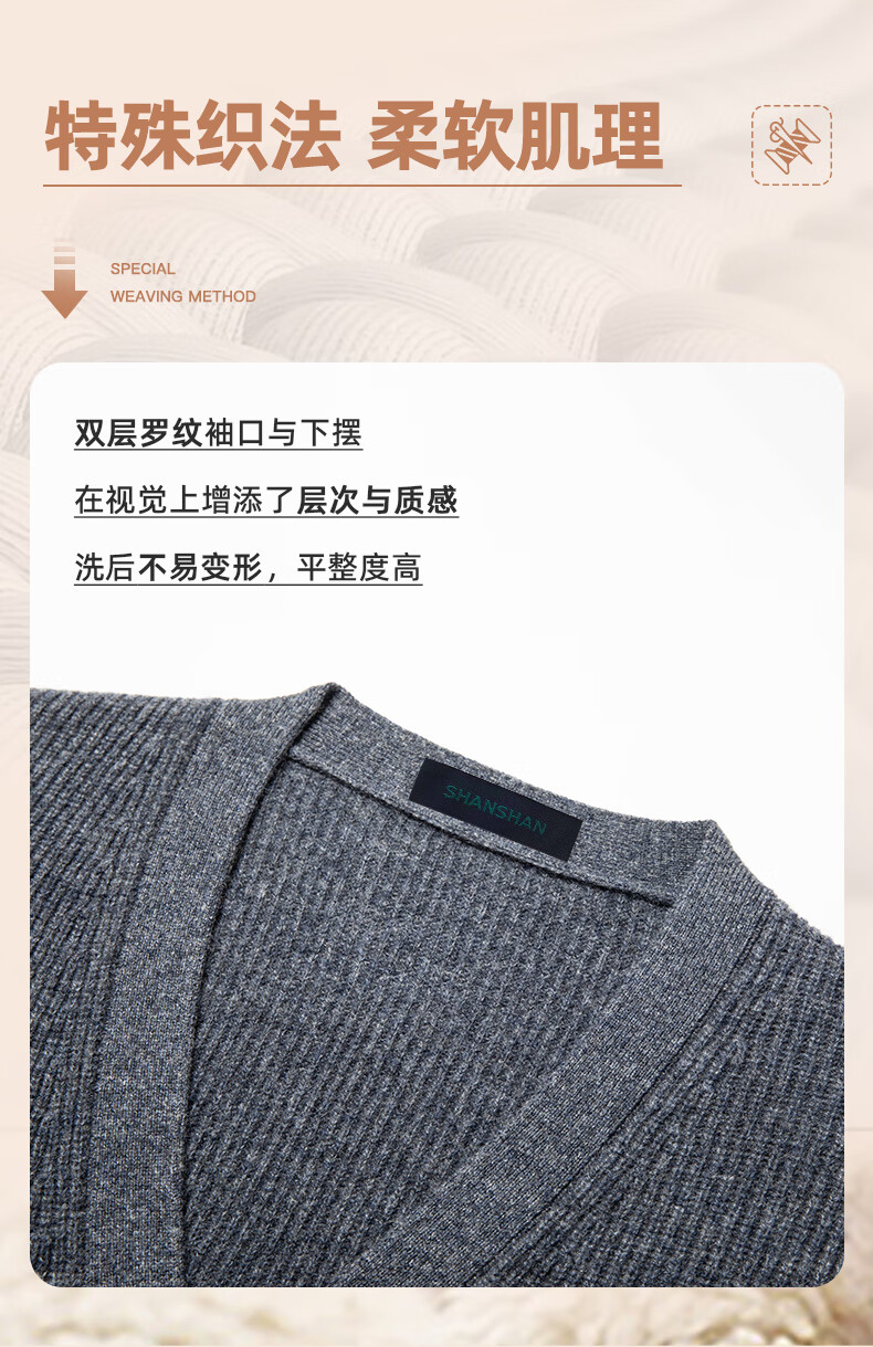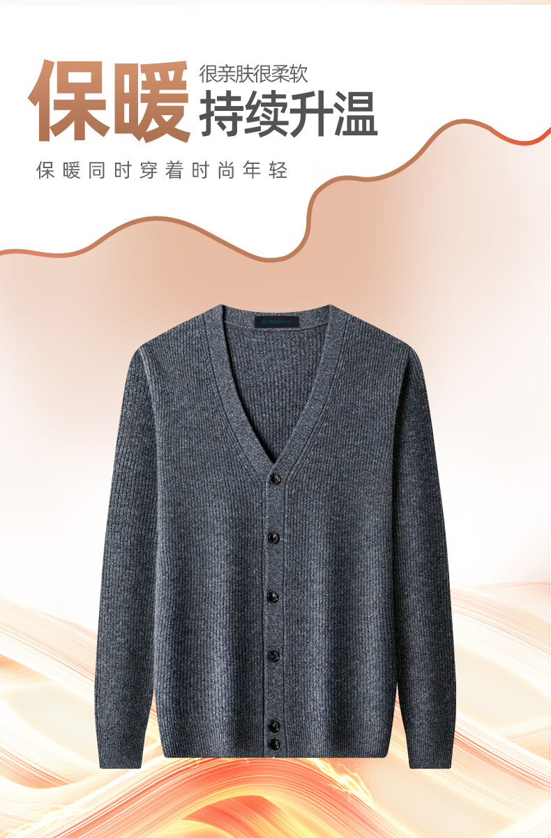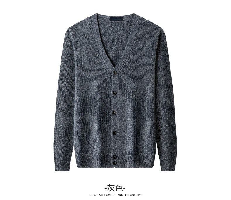 SHANSHAN Shanshan 100% cardigan men's autumn and winter warm casual versatile v-neck cardigan knitted sweater top men's inner wear gray XL /180