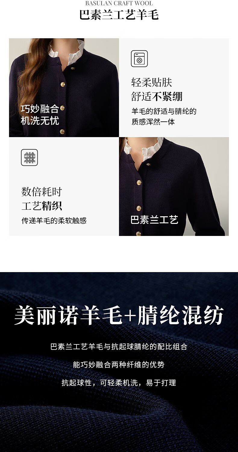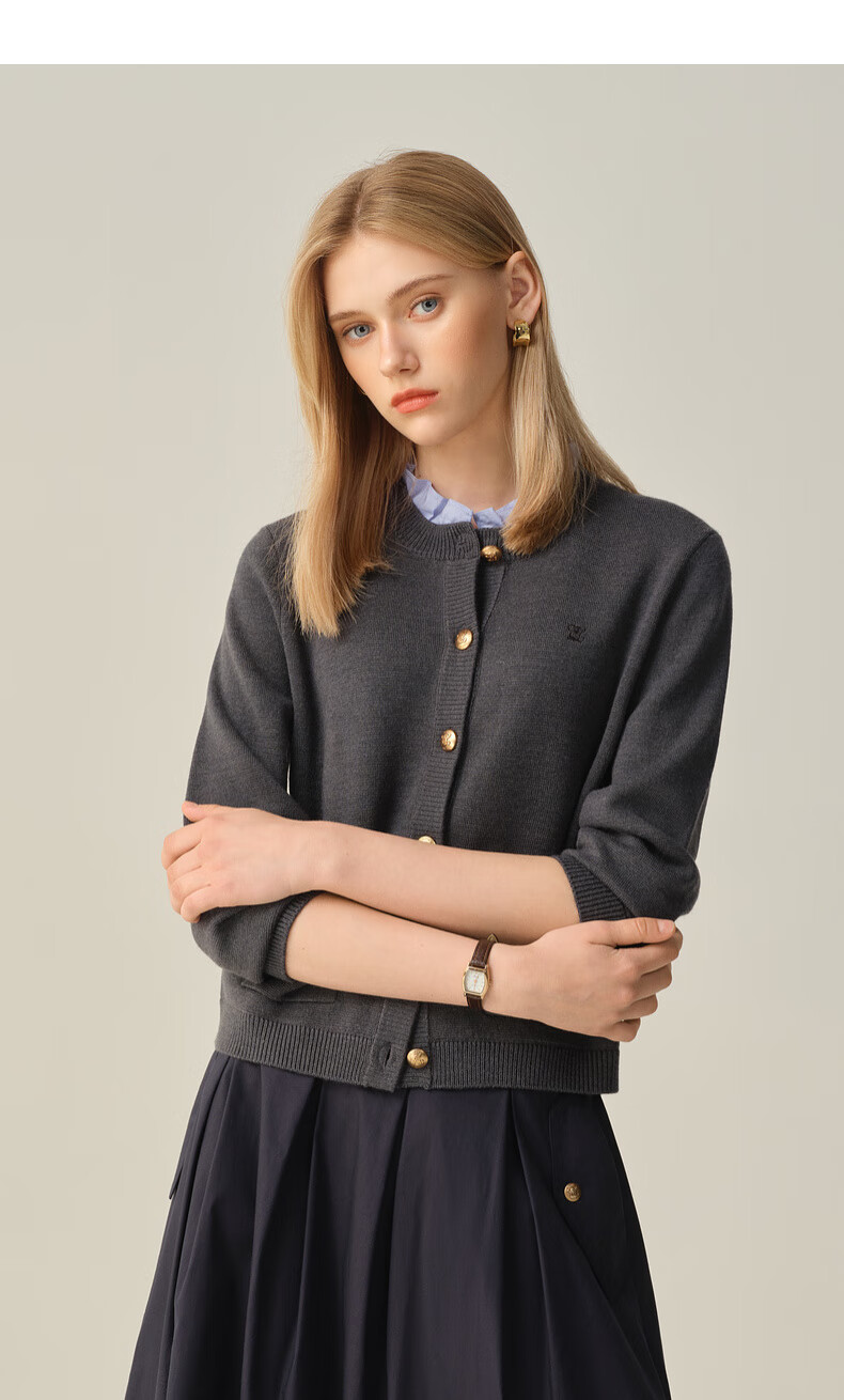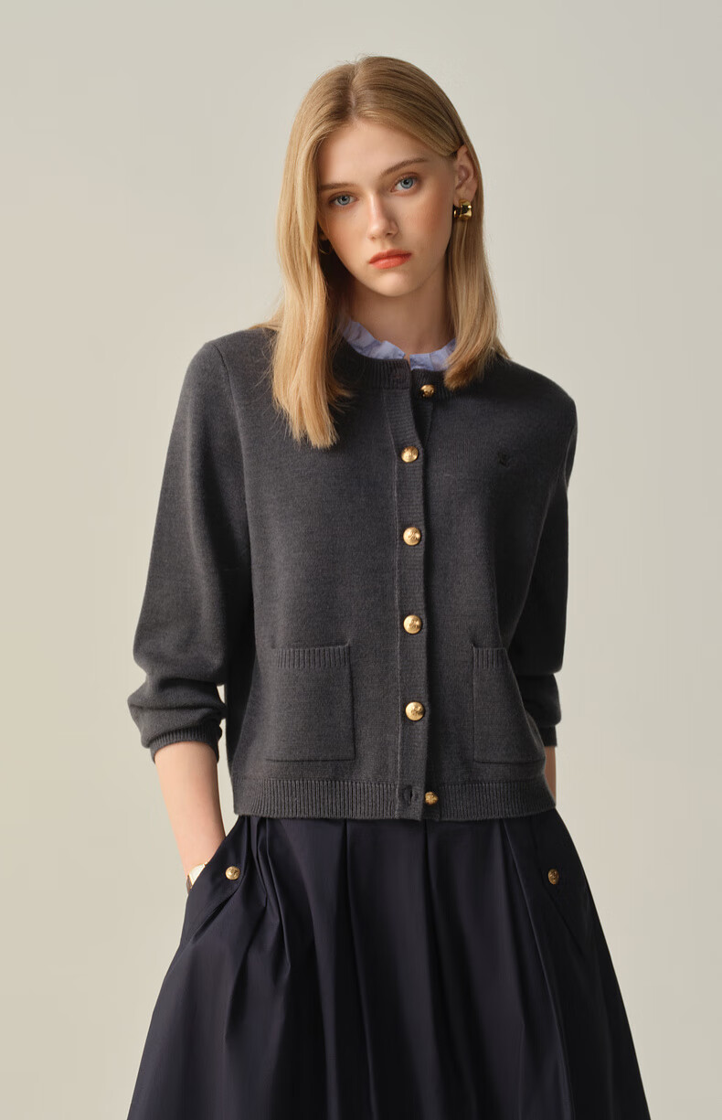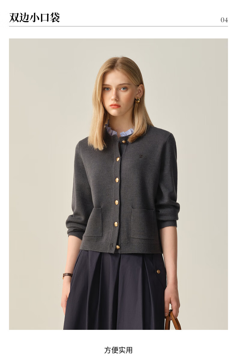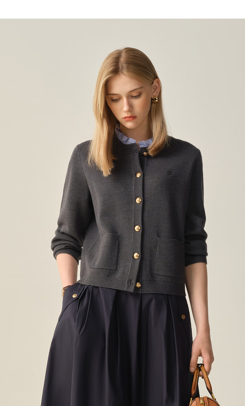 ELAND sheep wool sweater women's cardigan single-breasted jacket 2025 winter new style Gray (15) Gray S /160