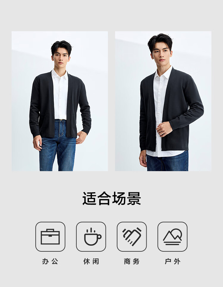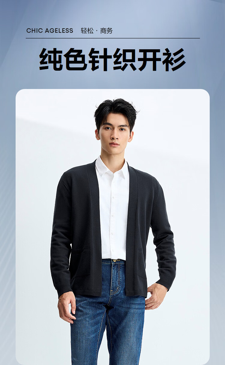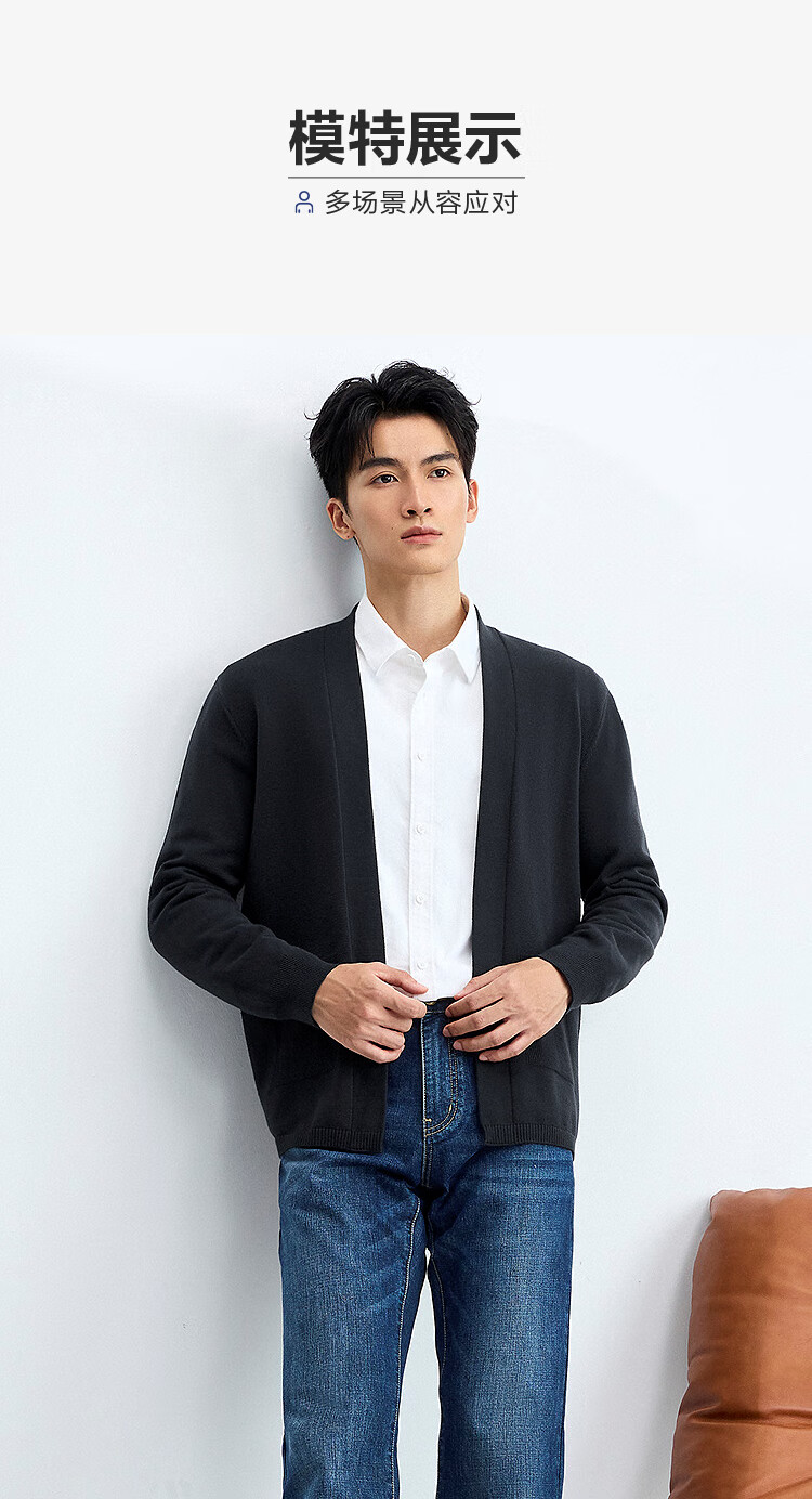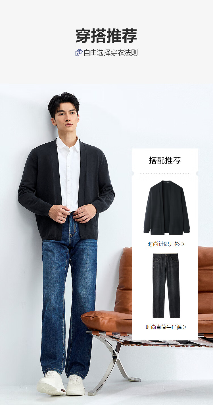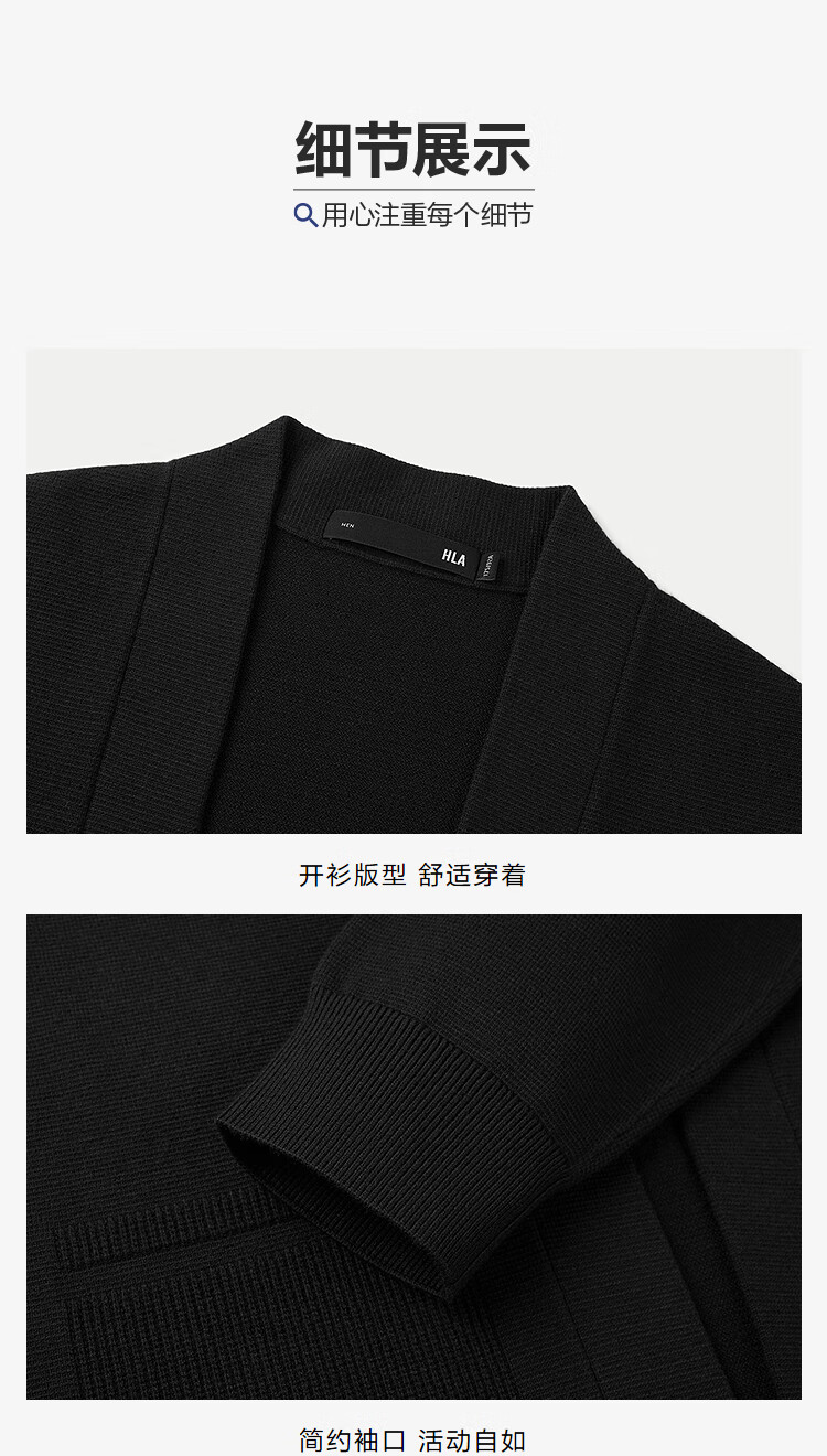 Heilan House (HLA) Knitted Cardigan Men's 25 New Warm Sweater Men's Autumn Black 08 L 175/92A Recommended 137~150Jin Jin equals 0.5 kg
