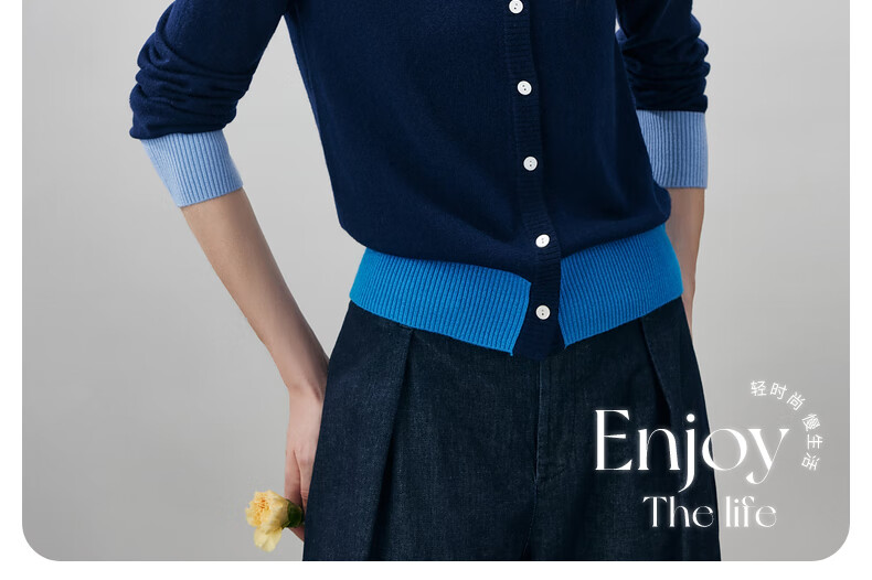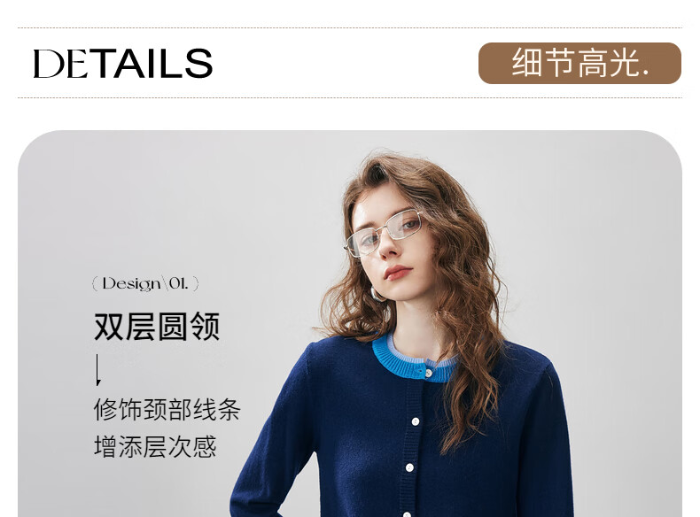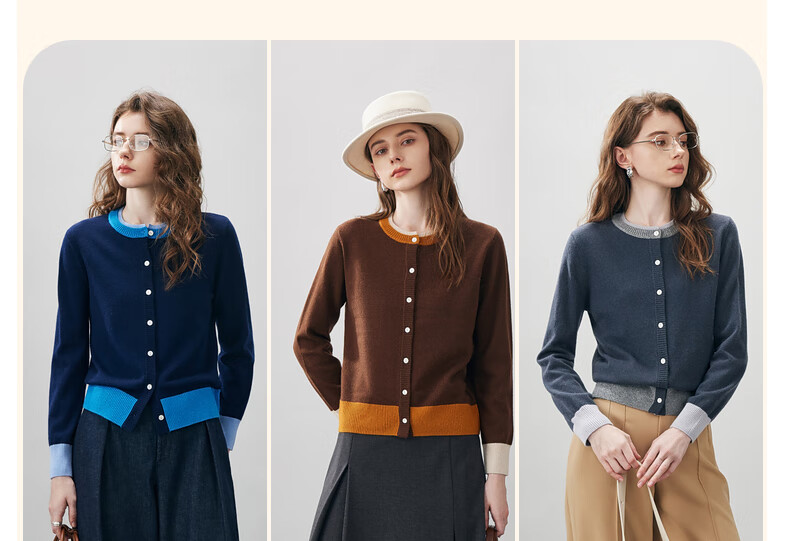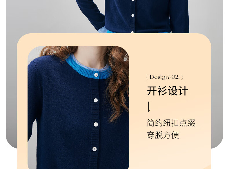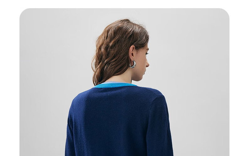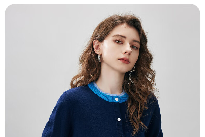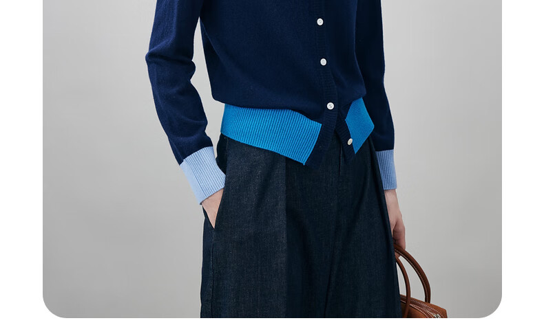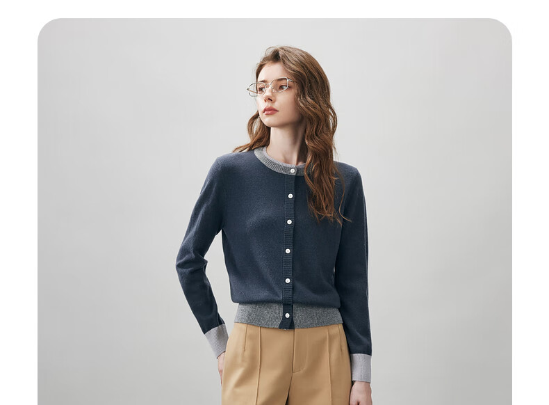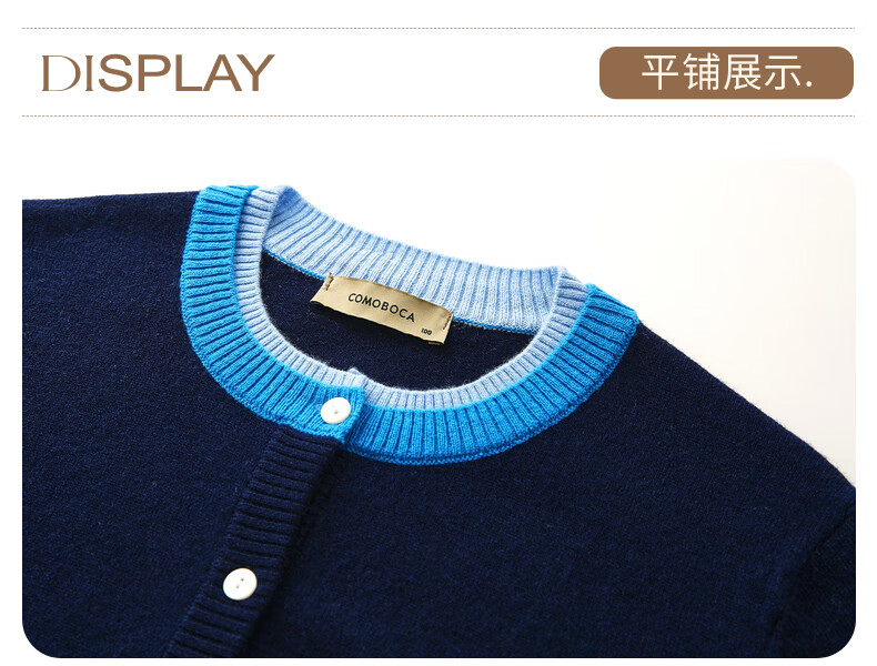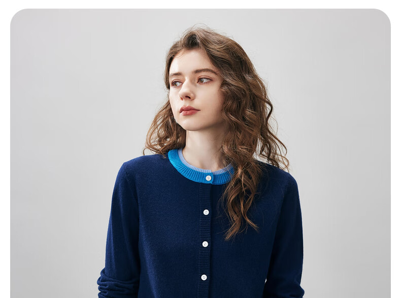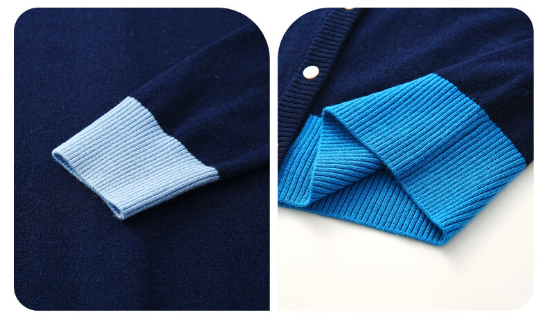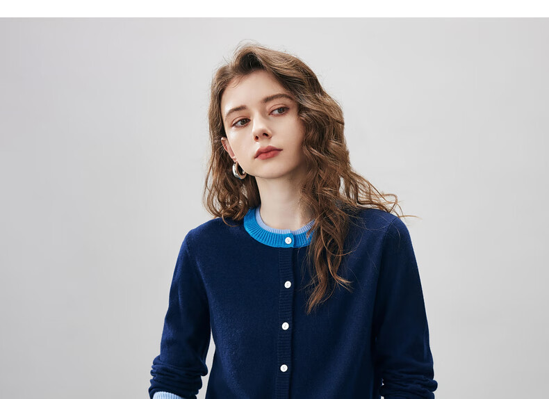 Komenboca 2025 autumn and winter new double-layer round neck cardigan women's contrast color cardigan coat long-sleeved knitted sweater top Navy L