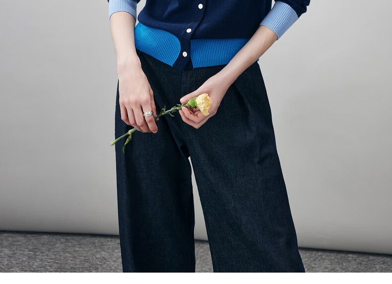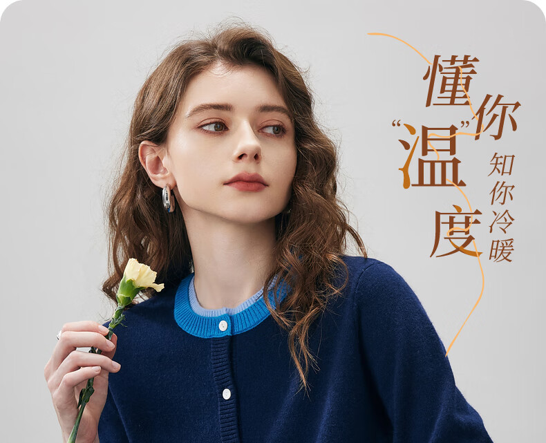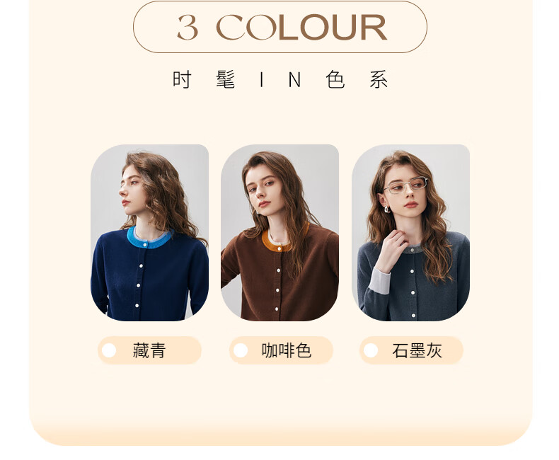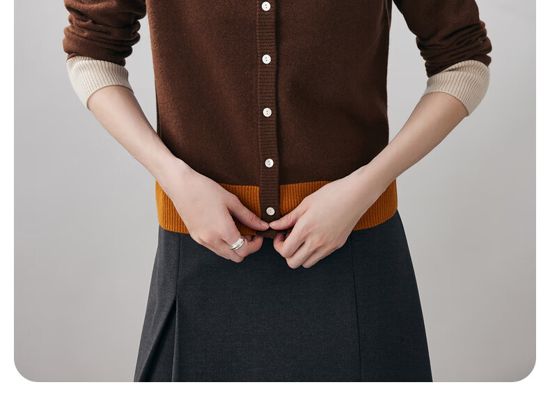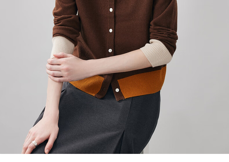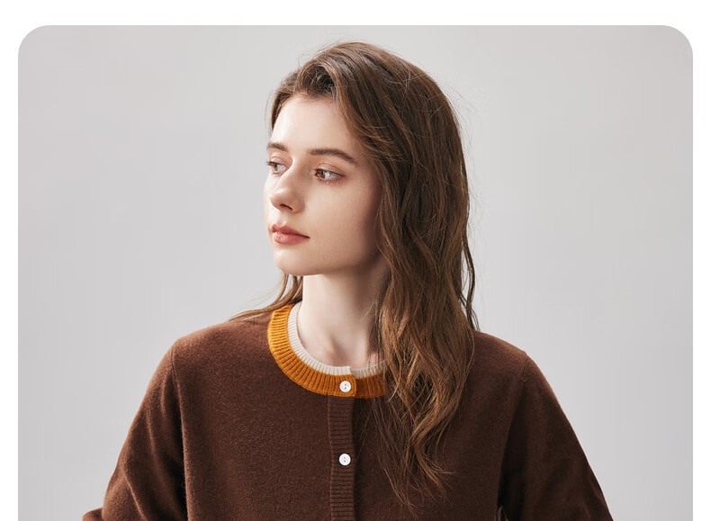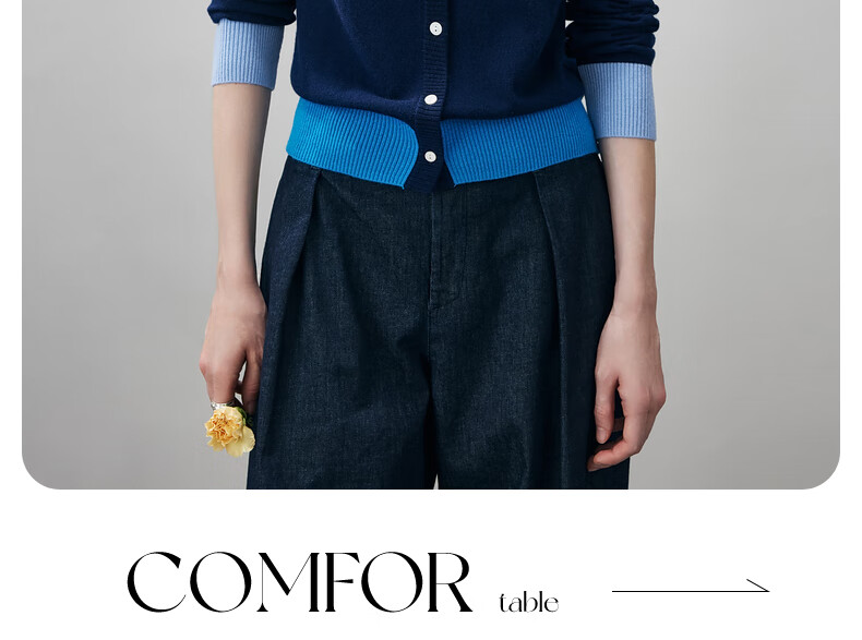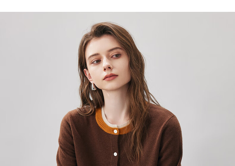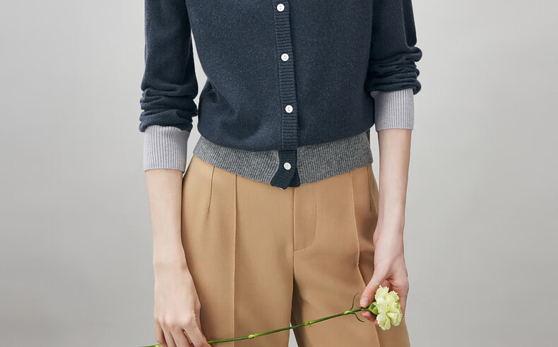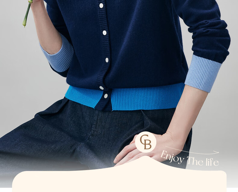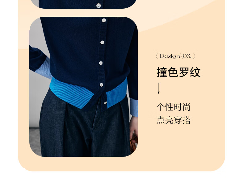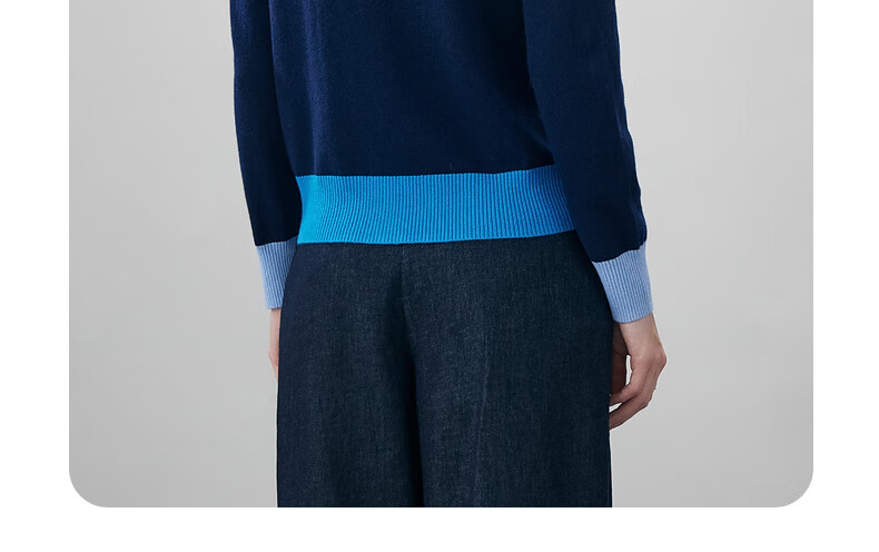 Komenboca 2025 autumn and winter new double-layer round neck cardigan women's contrast color cardigan coat long-sleeved knitted sweater top Navy L