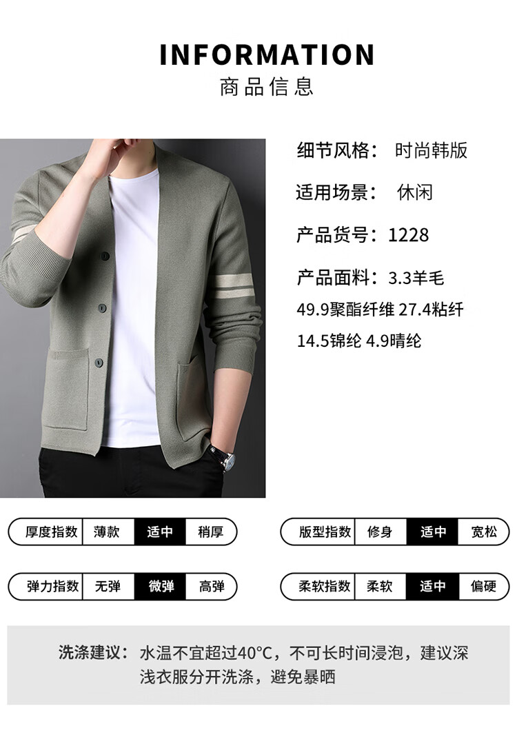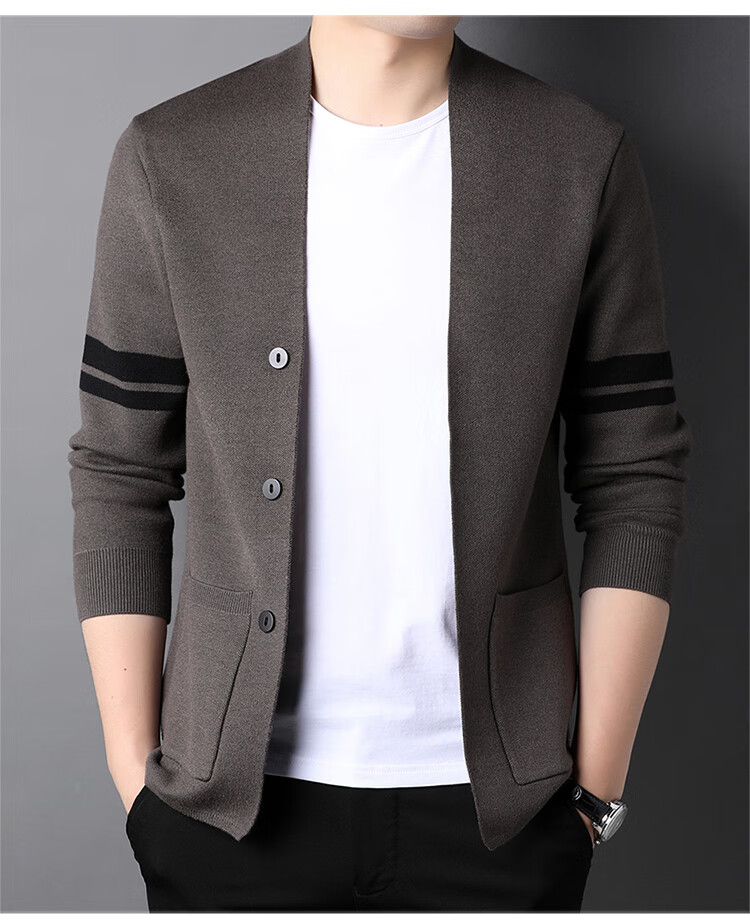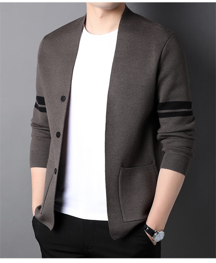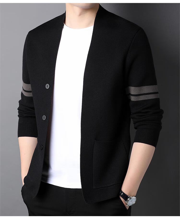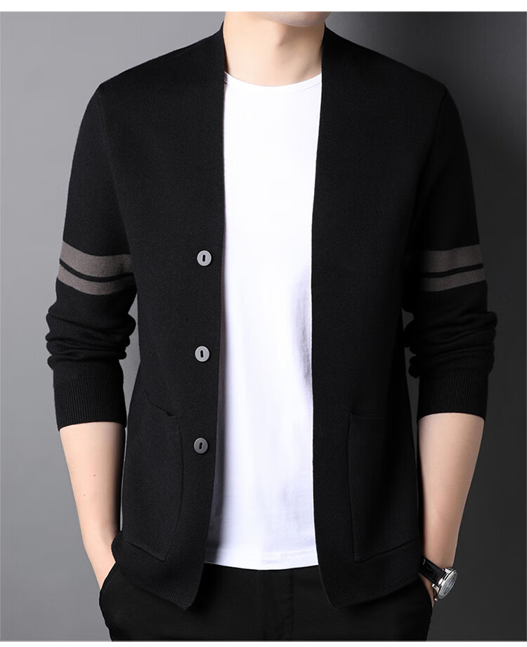 Pierre Cardin high-end knitted cardigan for men spring and autumn 2025 new trend wool outer sweater men's casual jacket for men black 2XL 180