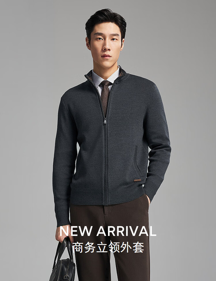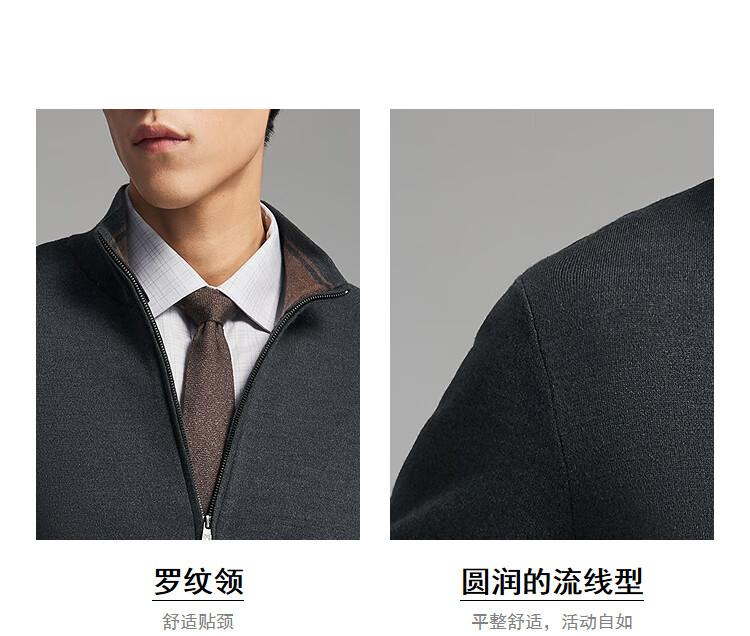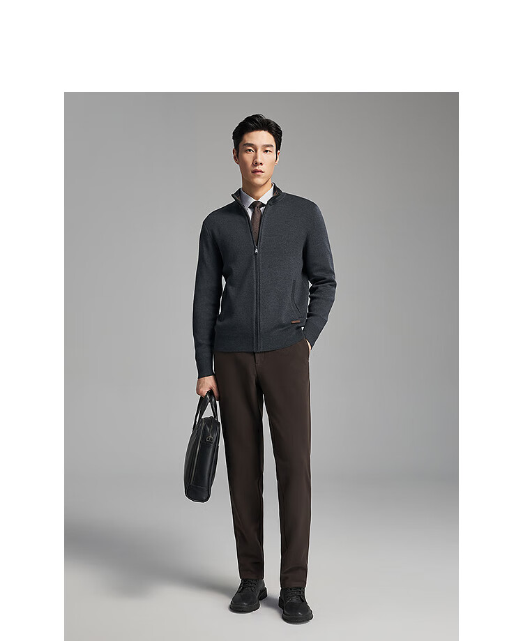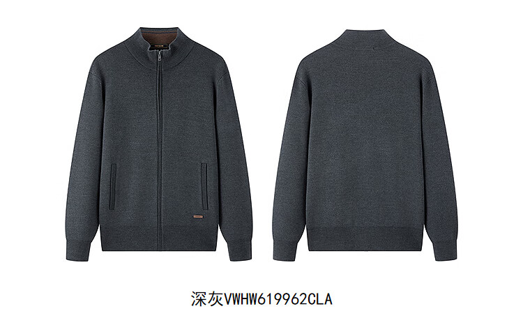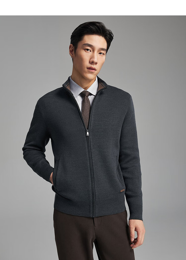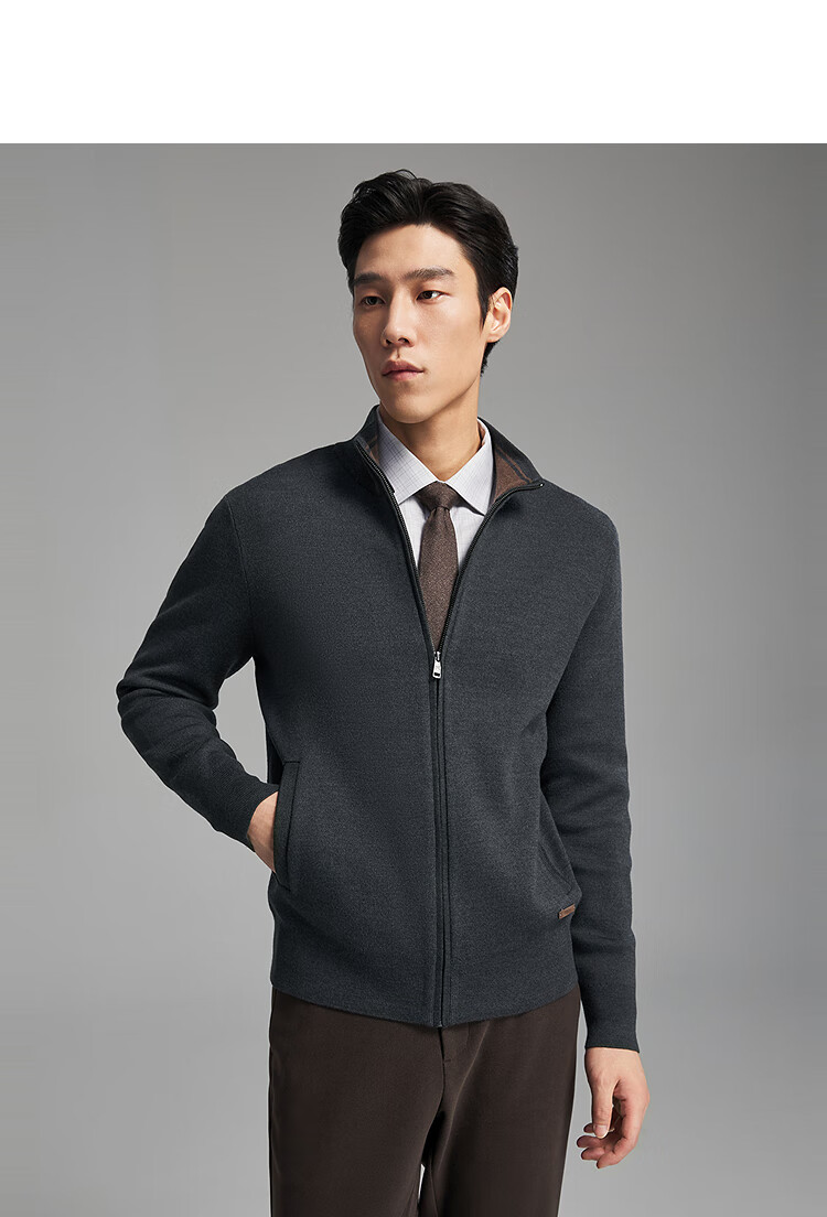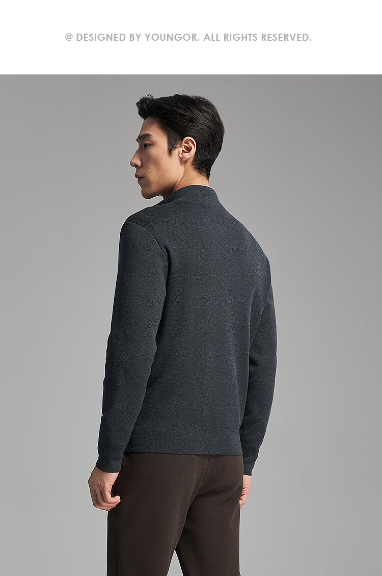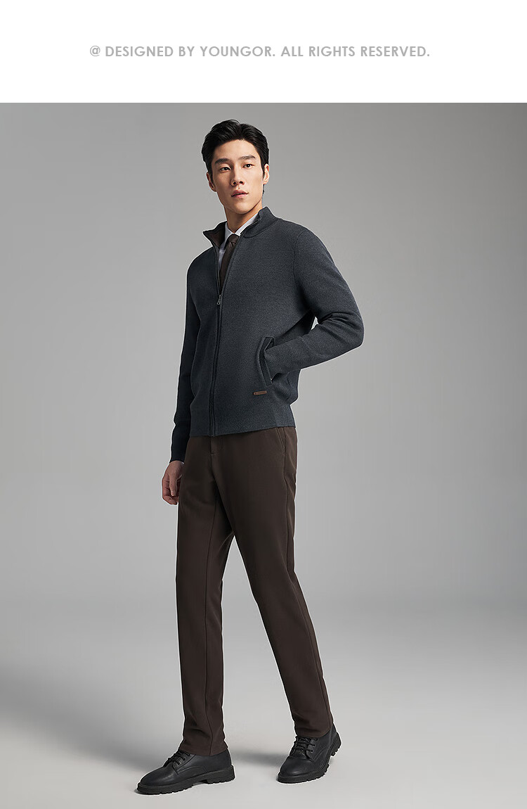 YOUNGOR sweater men's wool blended stand-up collar sweater jacket cardigan suede plump warm and comfortable 2025 new product dark gray VWHW619962CLA XL 110cm (recommended 165-180Jin Jin equals 0.5 kg)