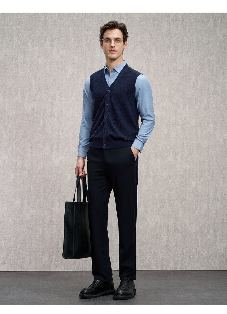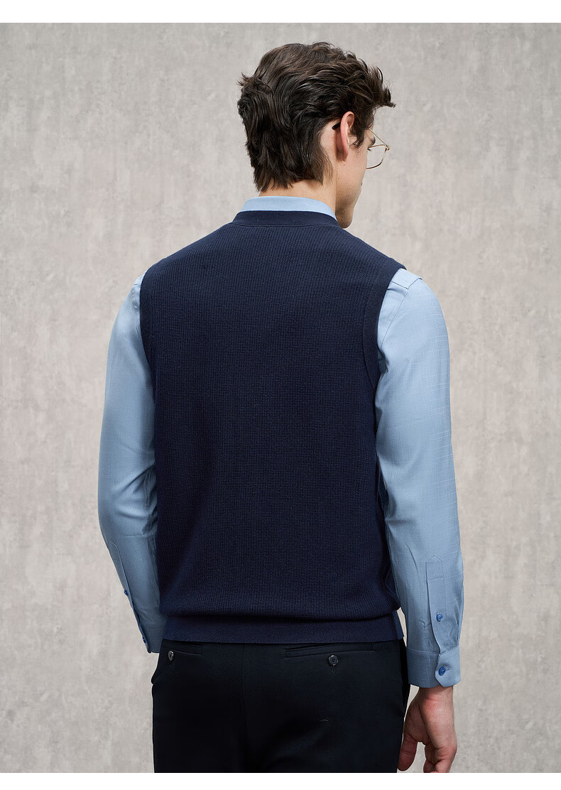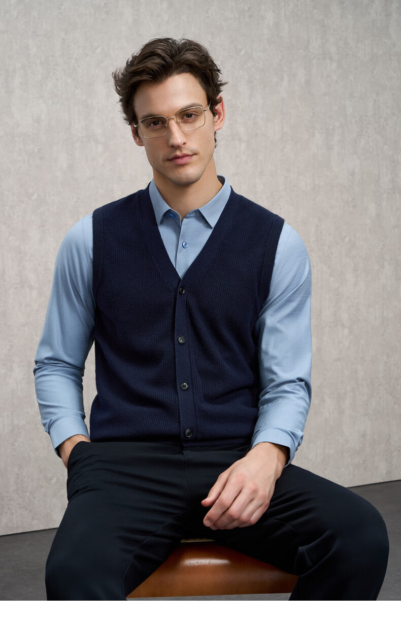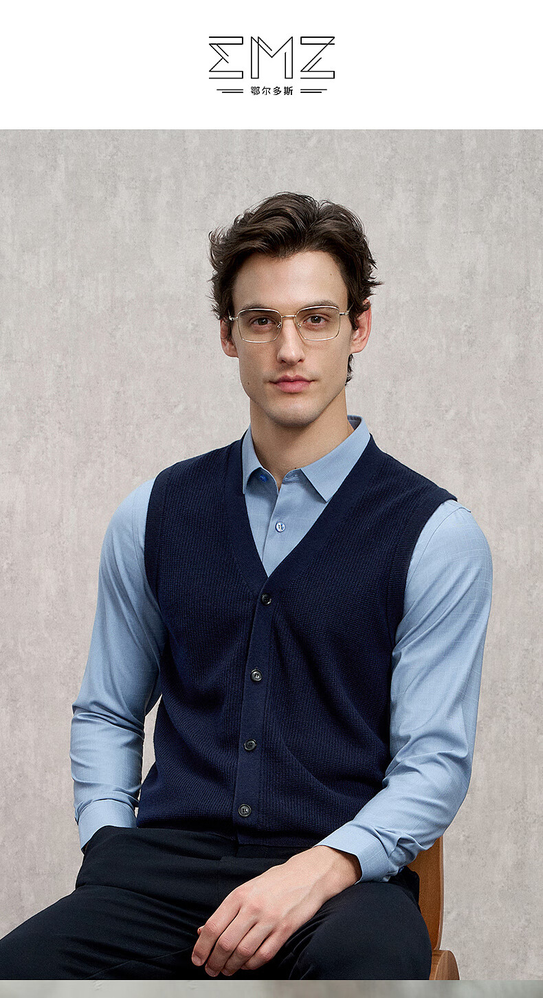 EMZ Ordos Mercerized Australian Wool 25 Autumn and Winter New 7A Antibacterial Wool Cardigan Men's V-neck Vest Sweater Navy XL 180/96A