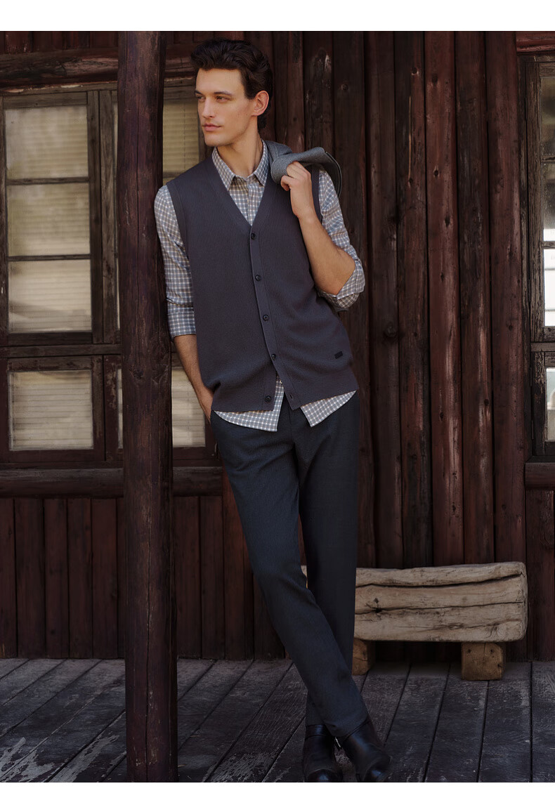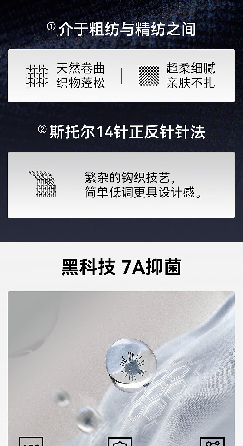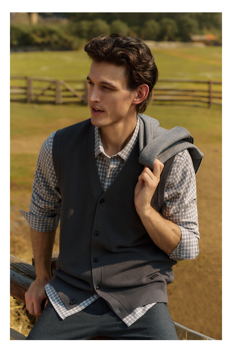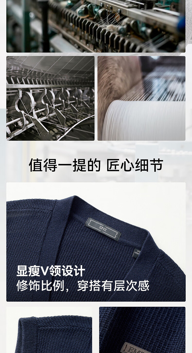EMZ Ordos Mercerized Australian Wool 25 Autumn and Winter New 7A Antibacterial Wool Cardigan Men's V-neck Vest Sweater Navy XL 180/96A