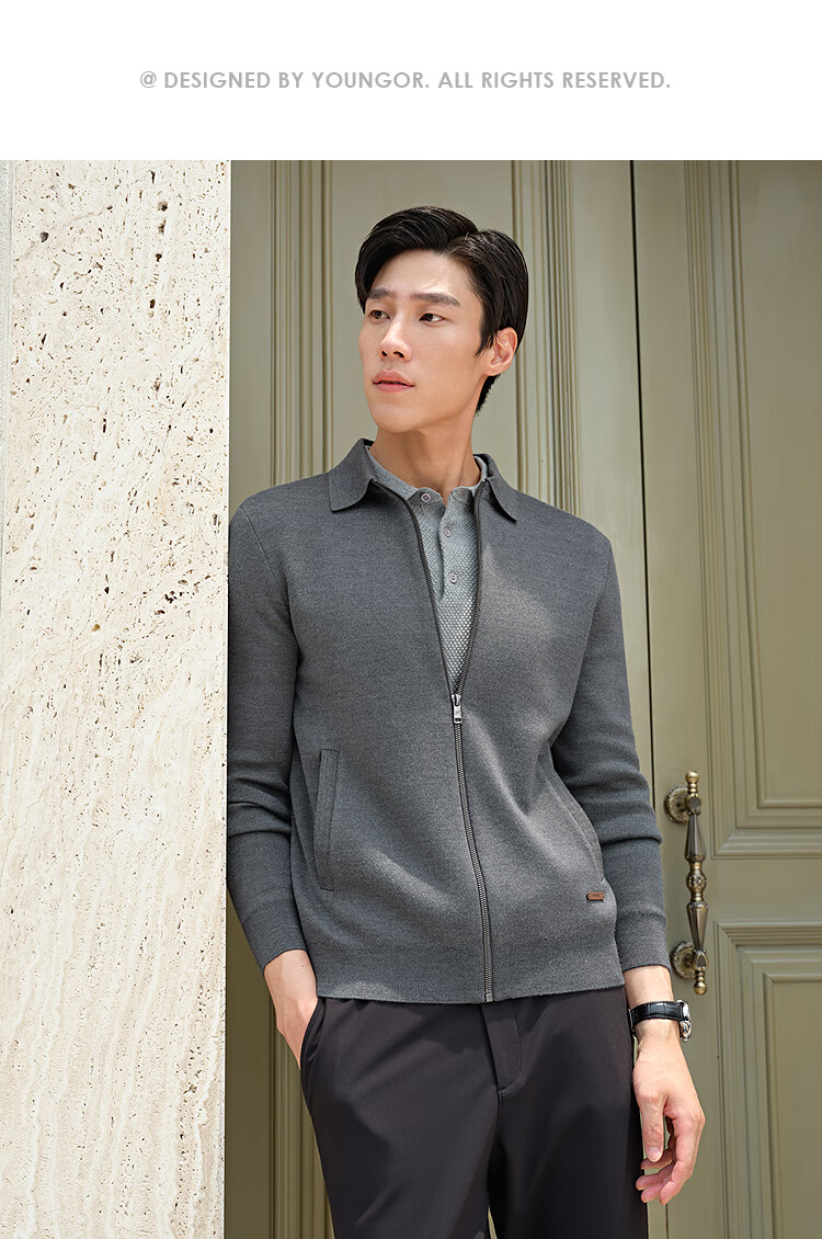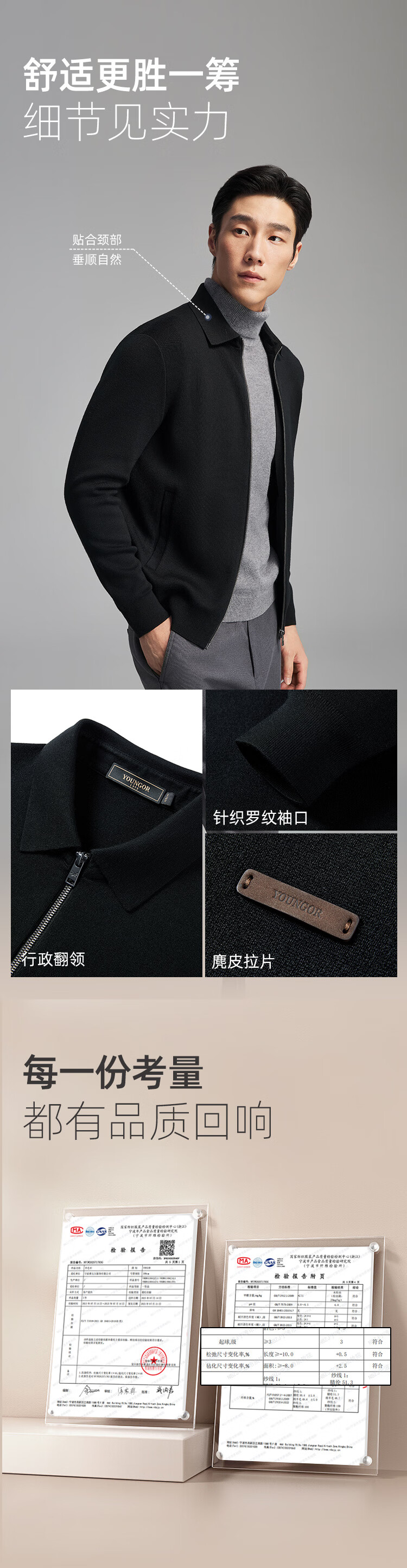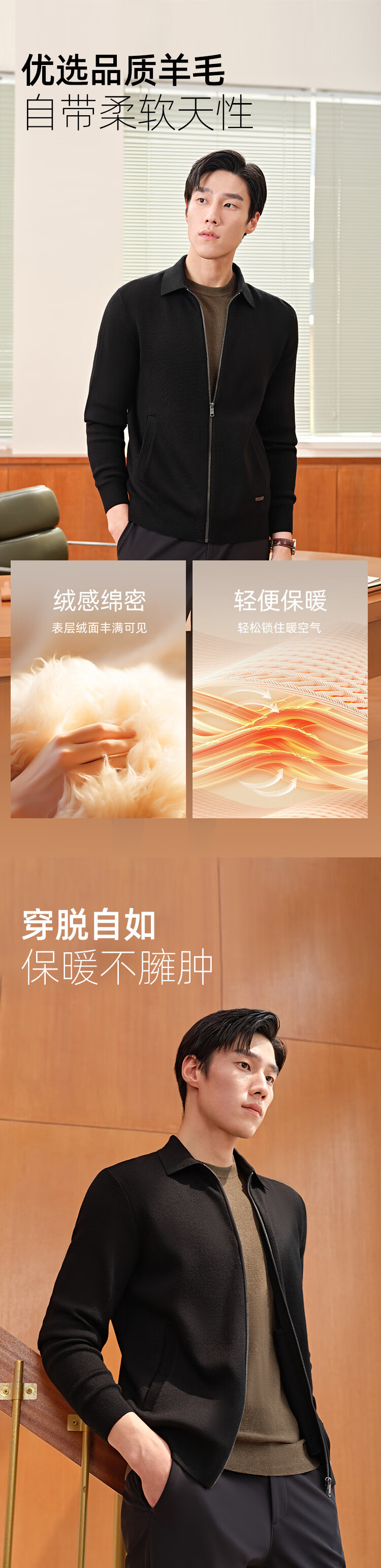 Youngor Sweater Men's Wool Blended Lapel Sweater Jacket Cardigan Suede Full Warm Comfort 2025 New Arrival Style Black VWHW619961AFA L 105cm (Recommended 145-165Jin Jin equals 0.5kg)