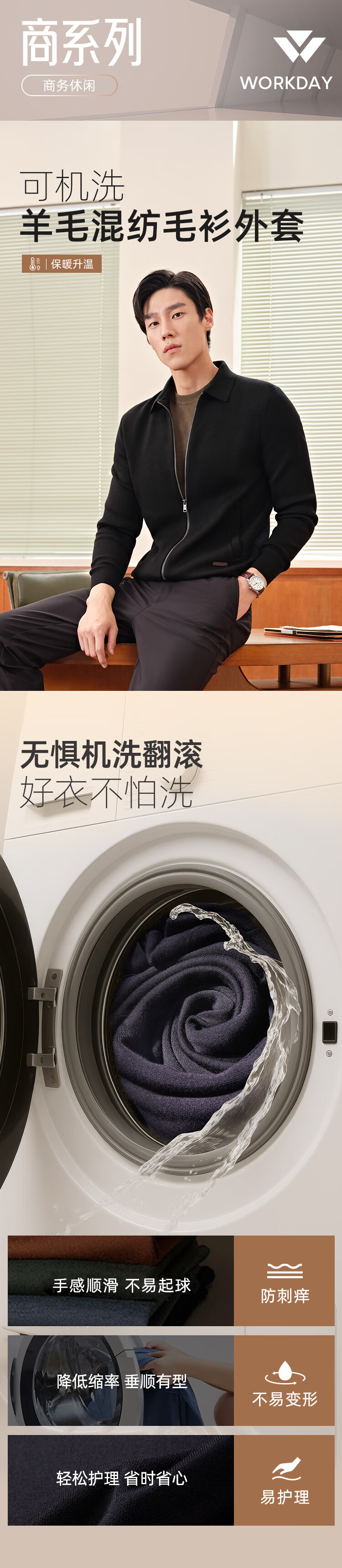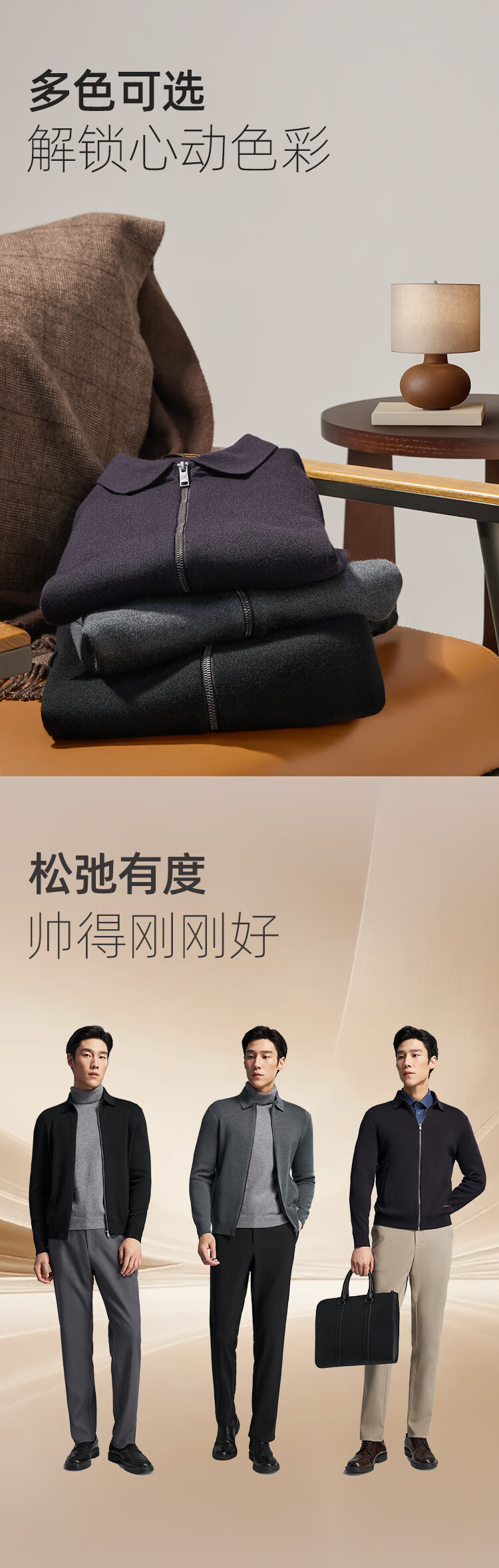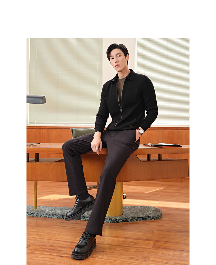 Youngor Sweater Men's Wool Blended Lapel Sweater Jacket Cardigan Suede Full Warm Comfort 2025 New Arrival Style Black VWHW619961AFA L 105cm (Recommended 145-165Jin Jin equals 0.5kg)