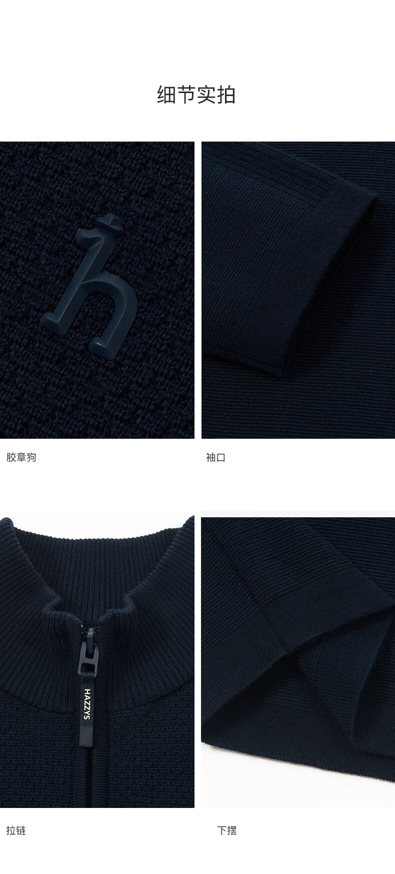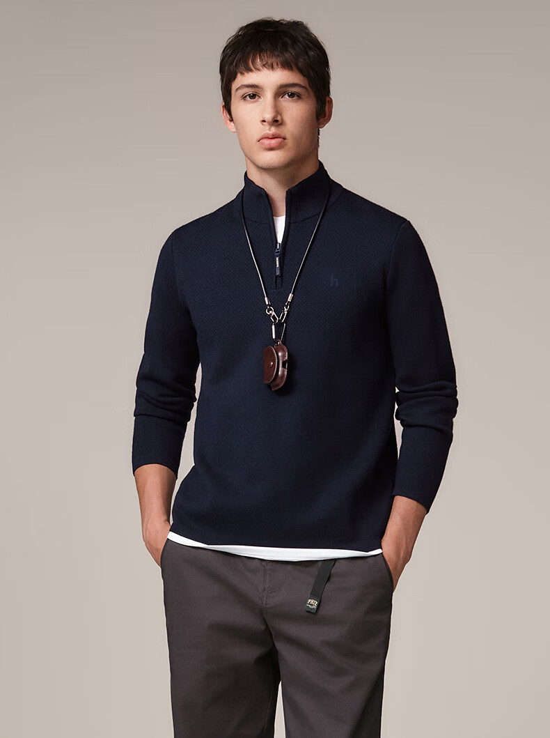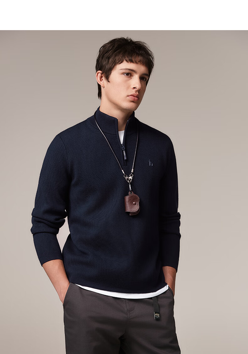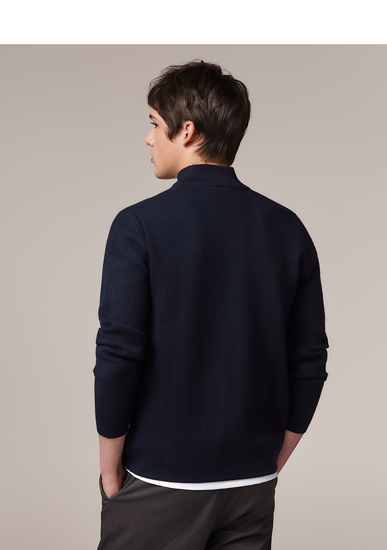 HAZZYS Men's Autumn and Winter Knitted Cardigan Men's Half-Open Zipper Pullover Men's Sweater ABYZD0BDDF1 Navy Blue NV L (175/96A 48)