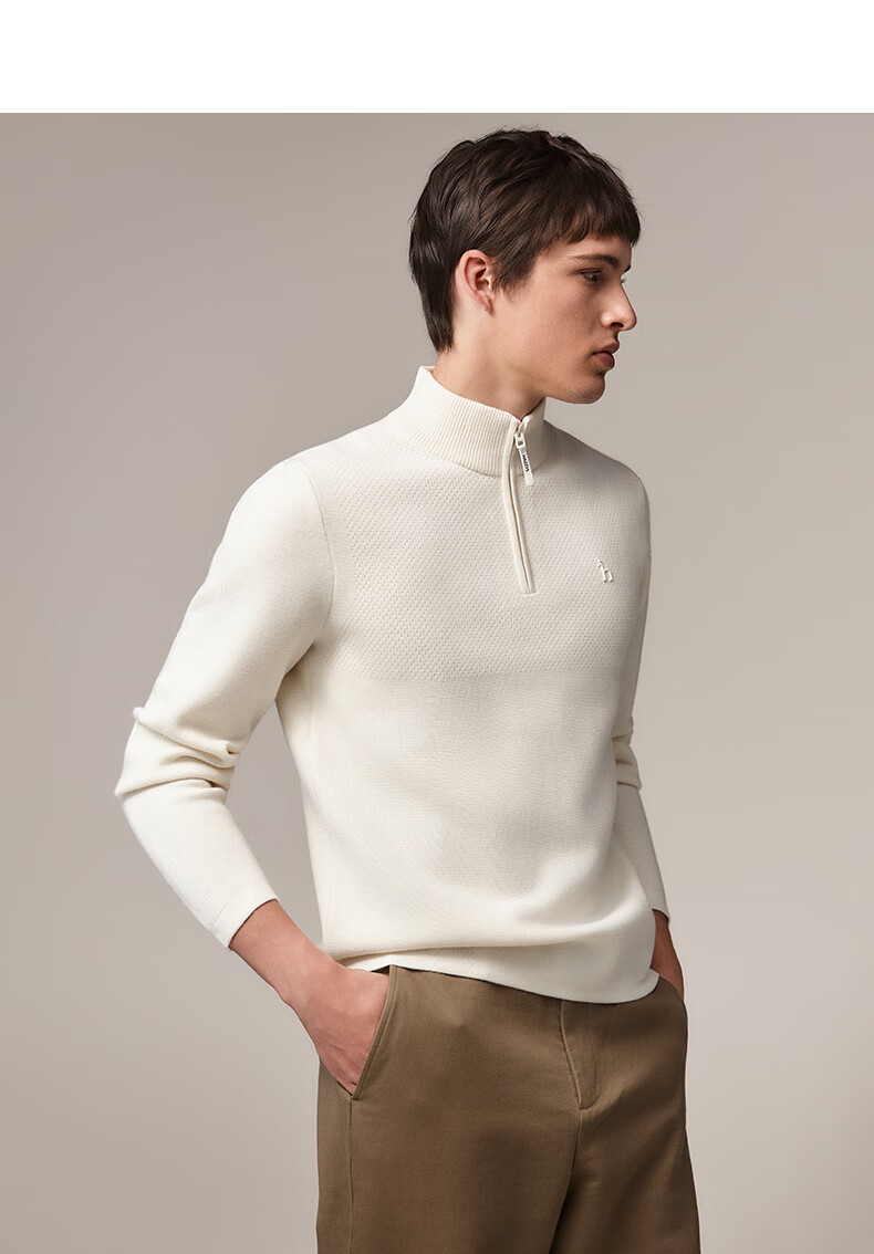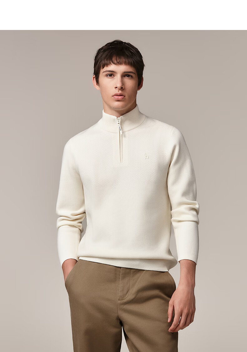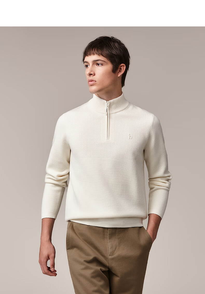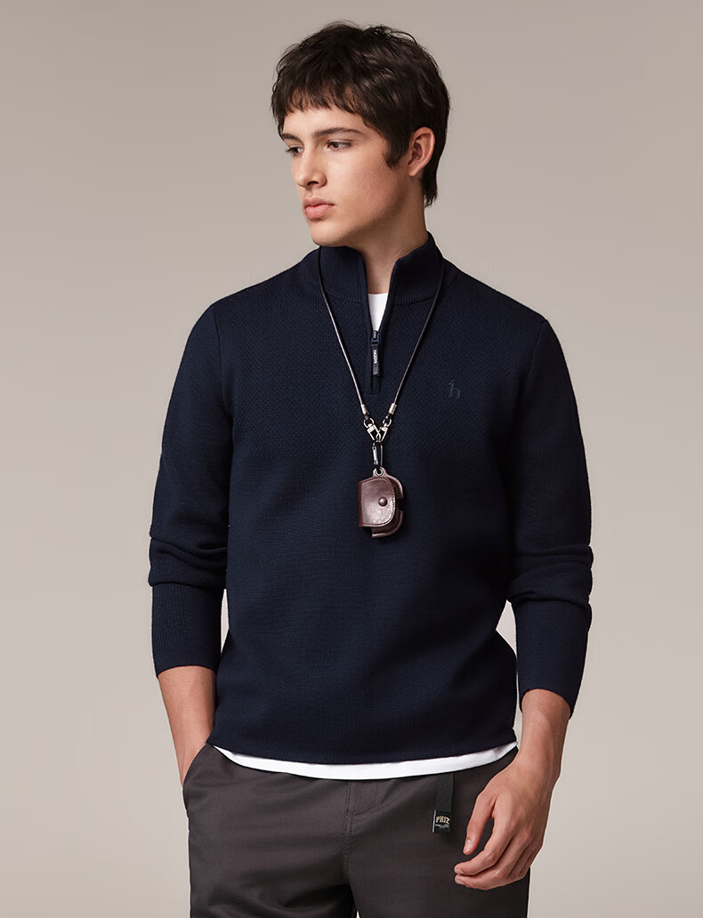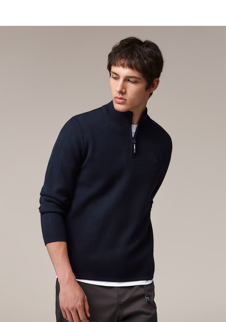 HAZZYS Men's Autumn and Winter Knitted Cardigan Men's Half-Open Zipper Pullover Men's Sweater ABYZD0BDDF1 Navy Blue NV L (175/96A 48)