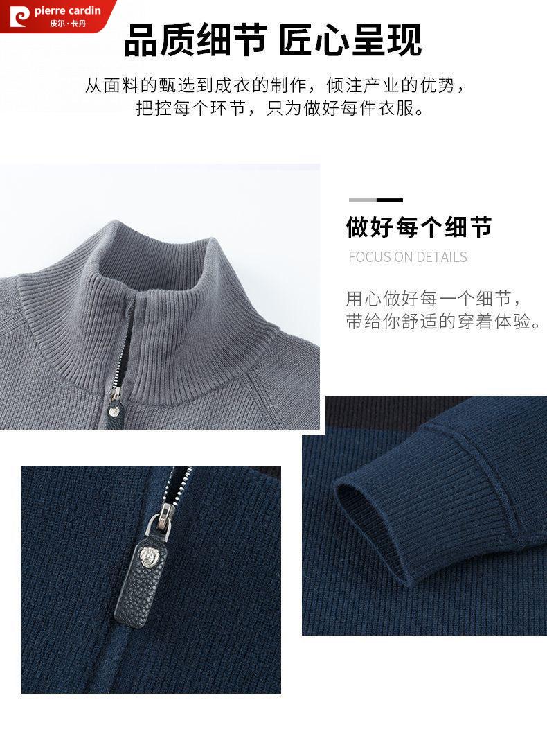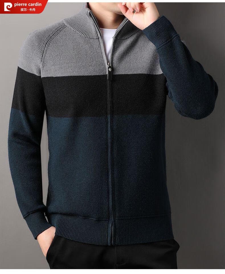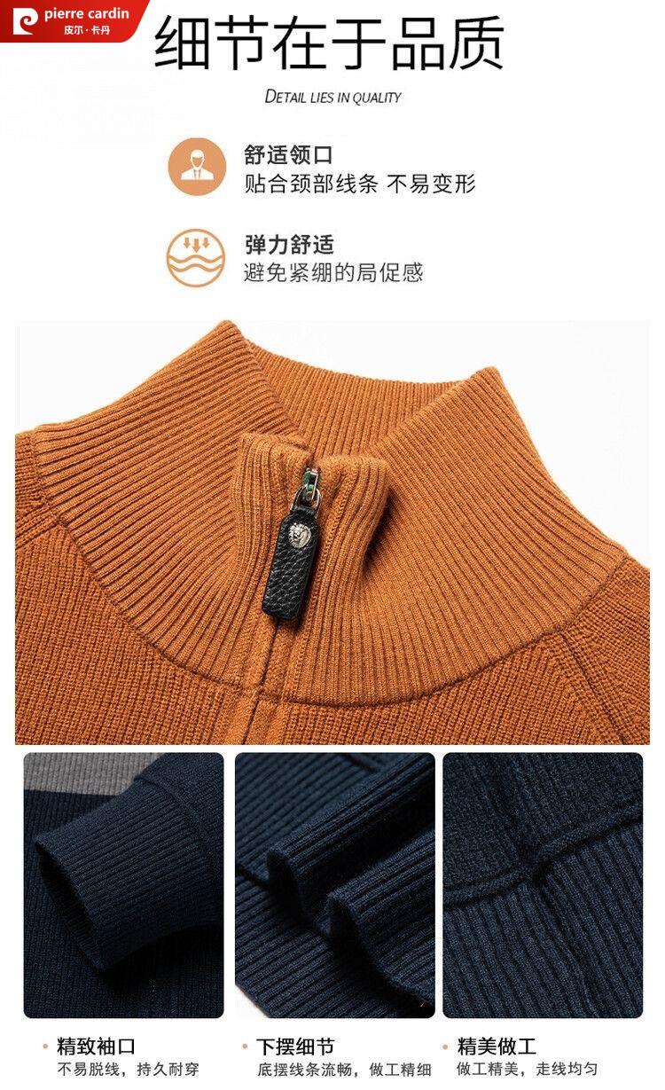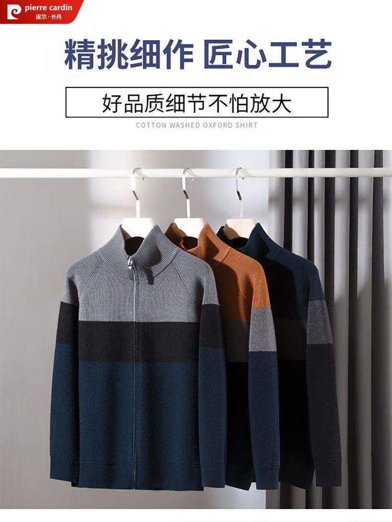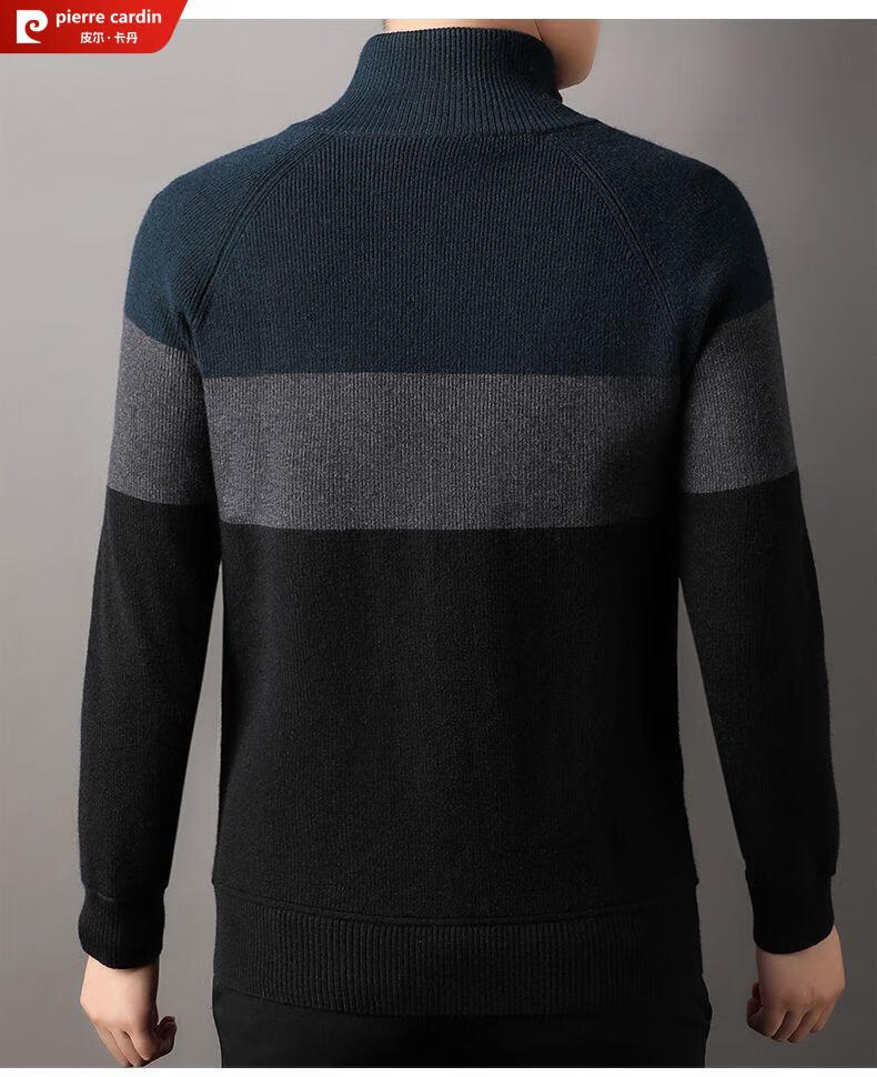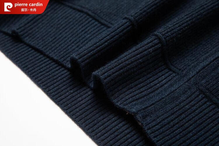 Pierre Cardin 100% wool men's knitted cardigan sweater zipper autumn and winter new thickened turtleneck warm casual jacket navy blue high quality wool 2XL (150-165Jin Jin equals 0.5kg)
