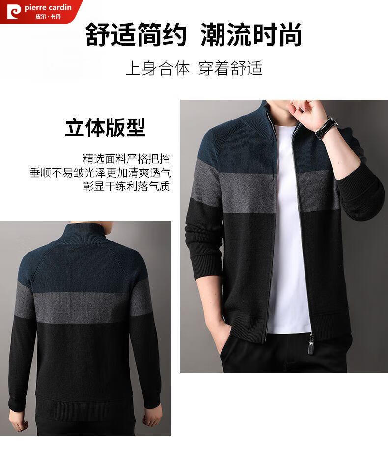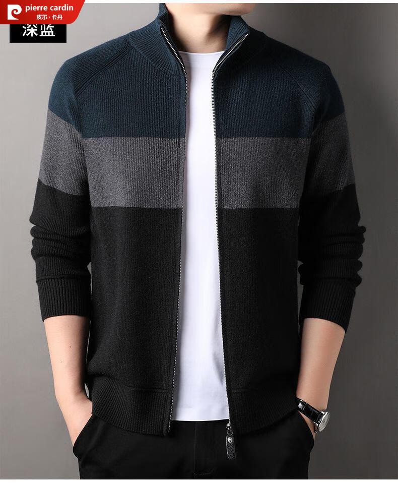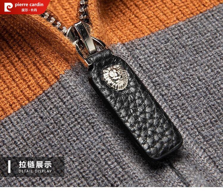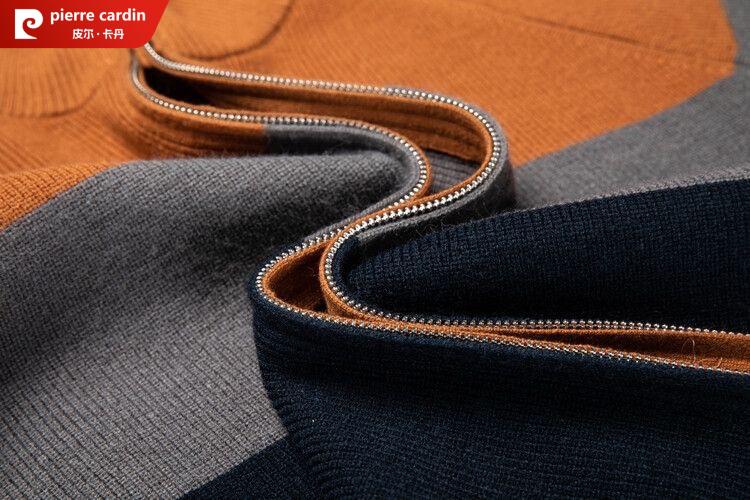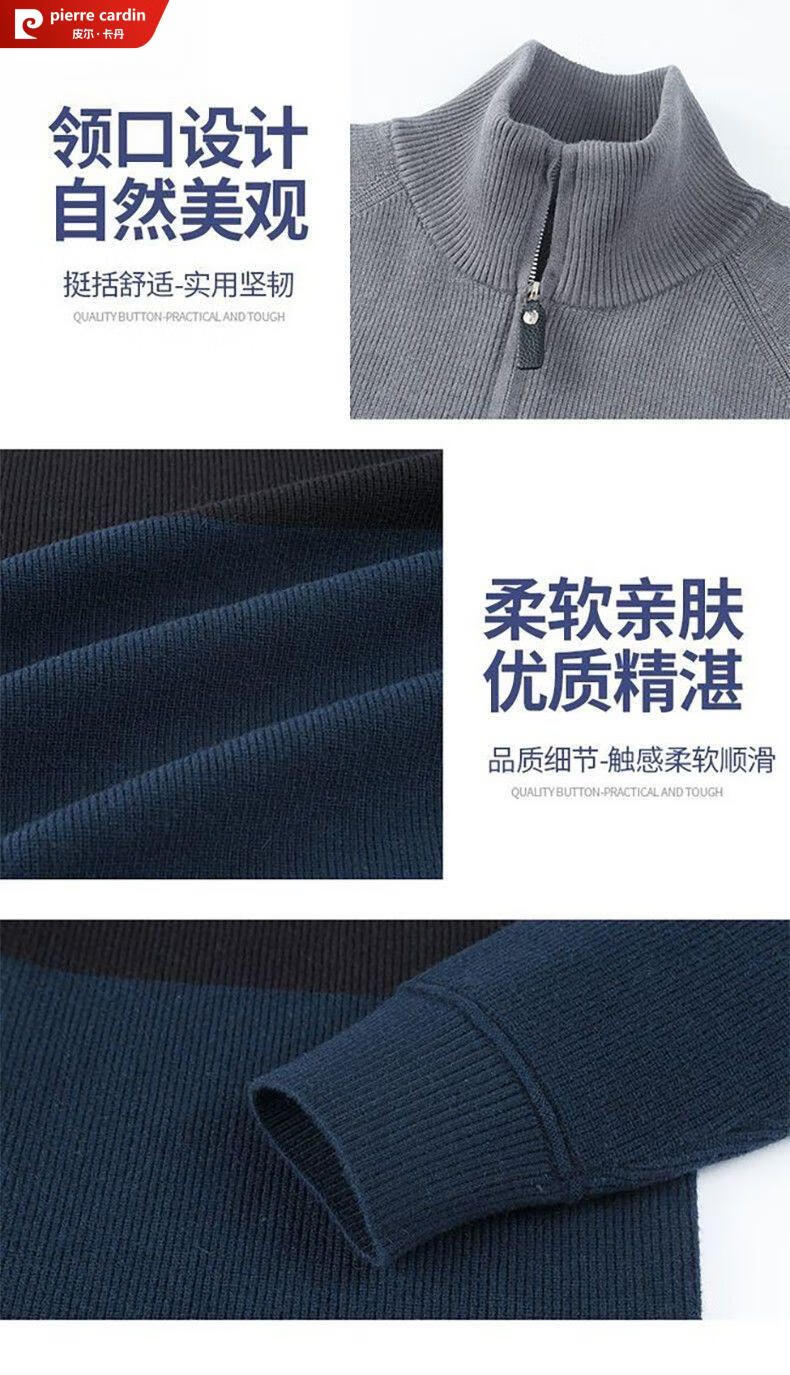 Pierre Cardin 100% wool men's knitted cardigan sweater zipper autumn and winter new thickened turtleneck warm casual jacket navy blue high quality wool 2XL (150-165Jin Jin equals 0.5kg)