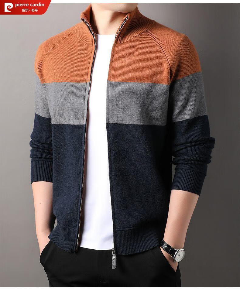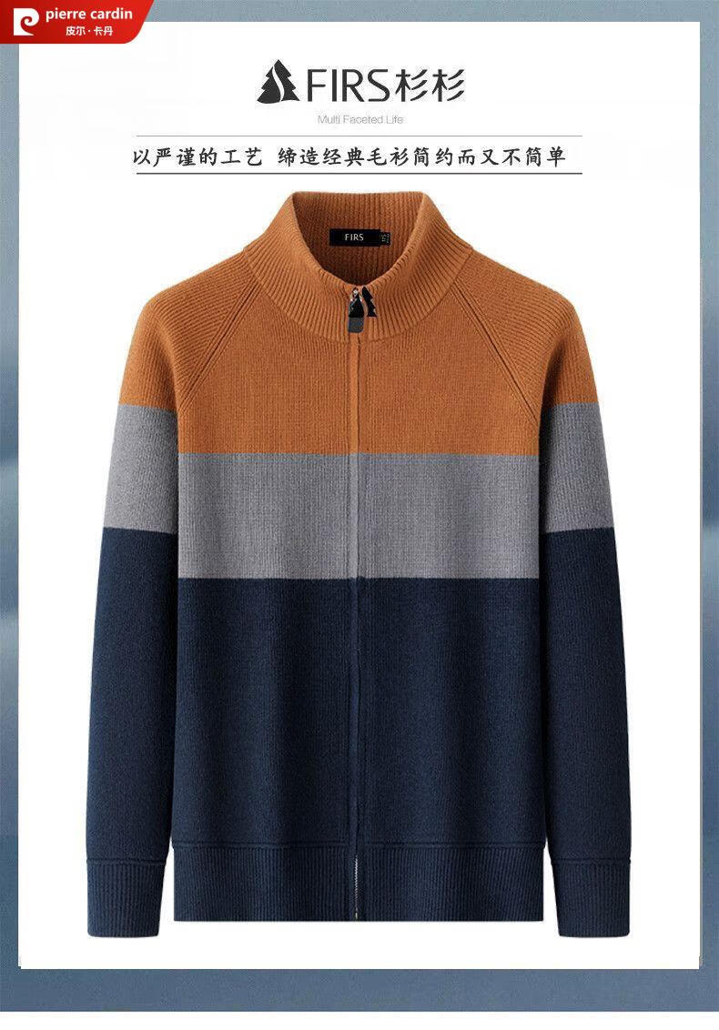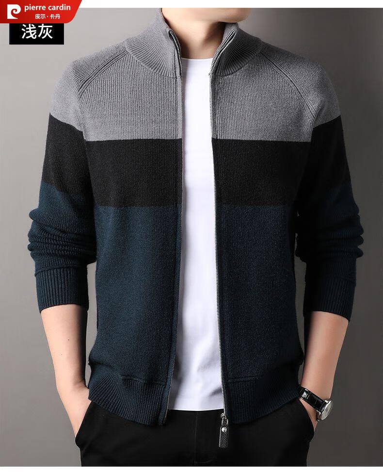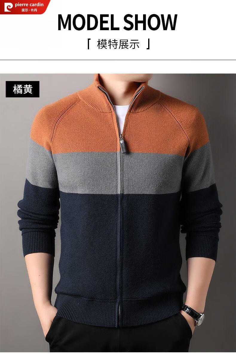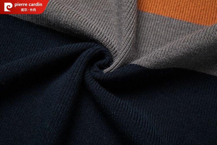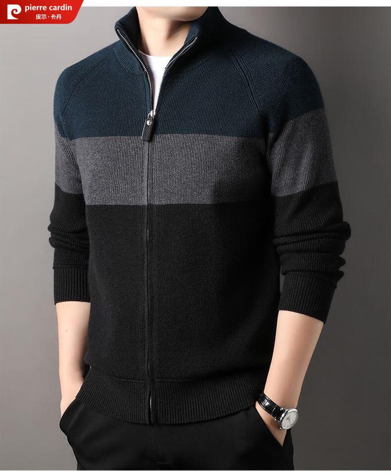 Pierre Cardin 100% wool men's knitted cardigan sweater zipper autumn and winter new thickened turtleneck warm casual jacket navy blue high quality wool 2XL (150-165Jin Jin equals 0.5kg)