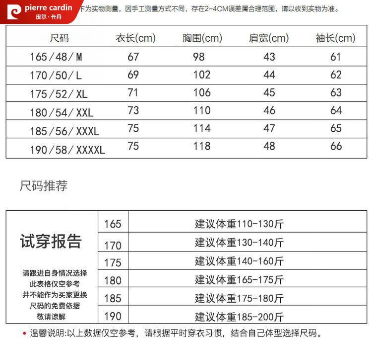 China (cm) 165 / 88-90 170 / 96-98 175 / 108-110 180 / 118-122 185 / 126-130