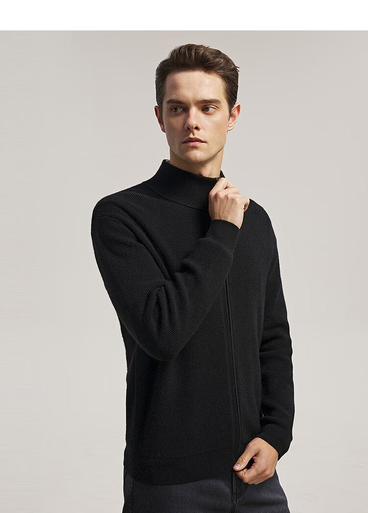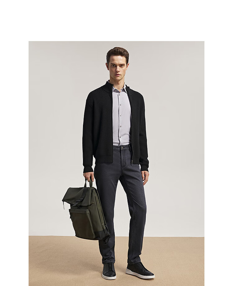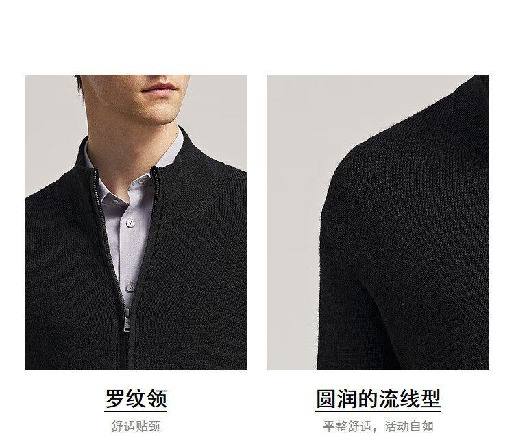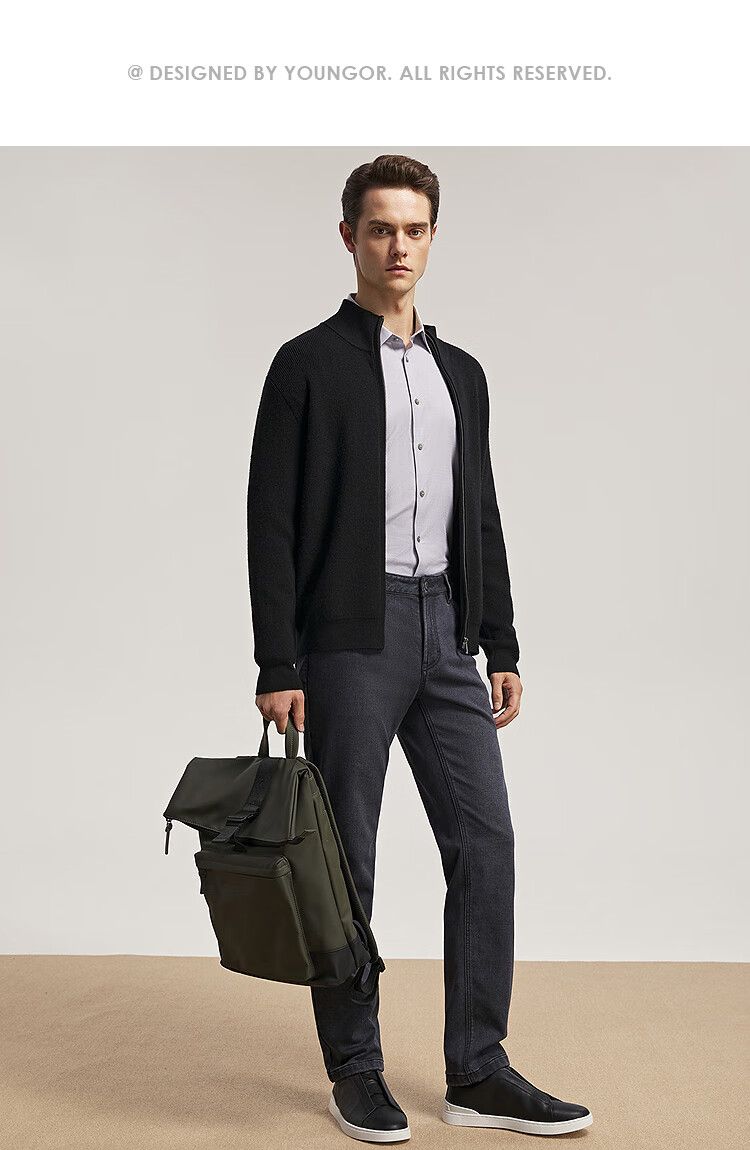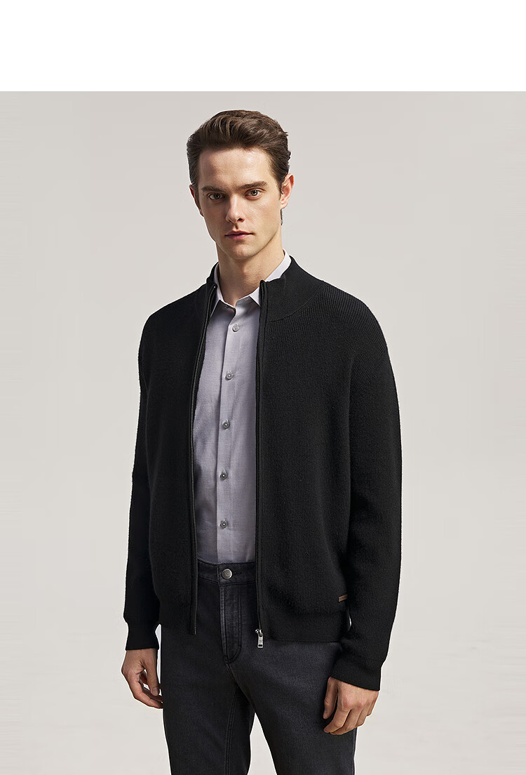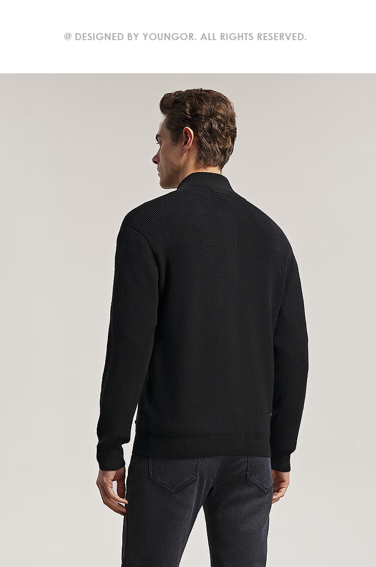 YOUNGOR sweater men's wool blended fabric men's stand-up collar zipper cardigan velvety and comfortable 2025 new arrival black VWHW619967ALA L 105cm (recommended 145-165Jin Jin equals 0.5kg)