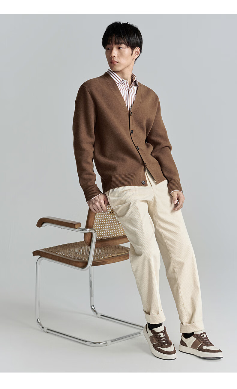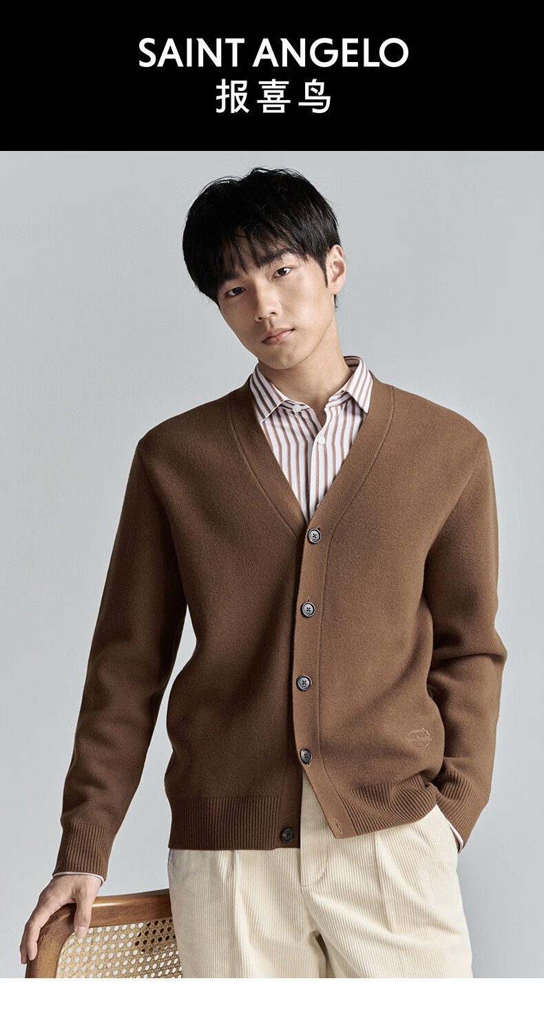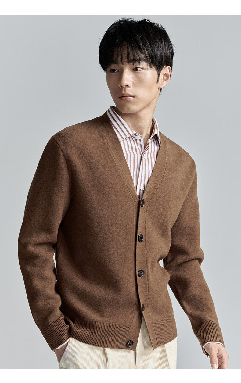 Angel Bird Cardigan Men's Autumn Men's Business Casual Cardigan V-neck Pure Wool Versatile Long-Sleeved Sweater Jacket Men Gravel Color L -48(175/96)