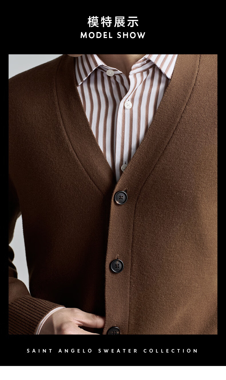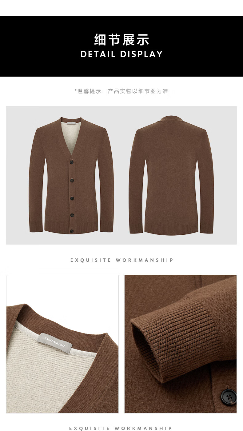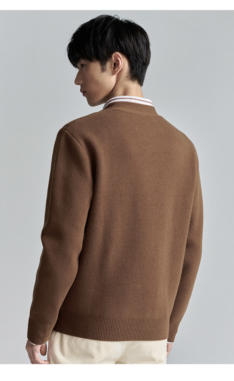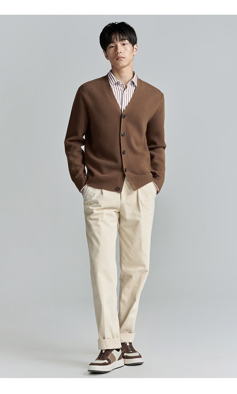 Angel Bird Cardigan Men's Autumn Men's Business Casual Cardigan V-neck Pure Wool Versatile Long-Sleeved Sweater Jacket Men Gravel Color L -48(175/96)