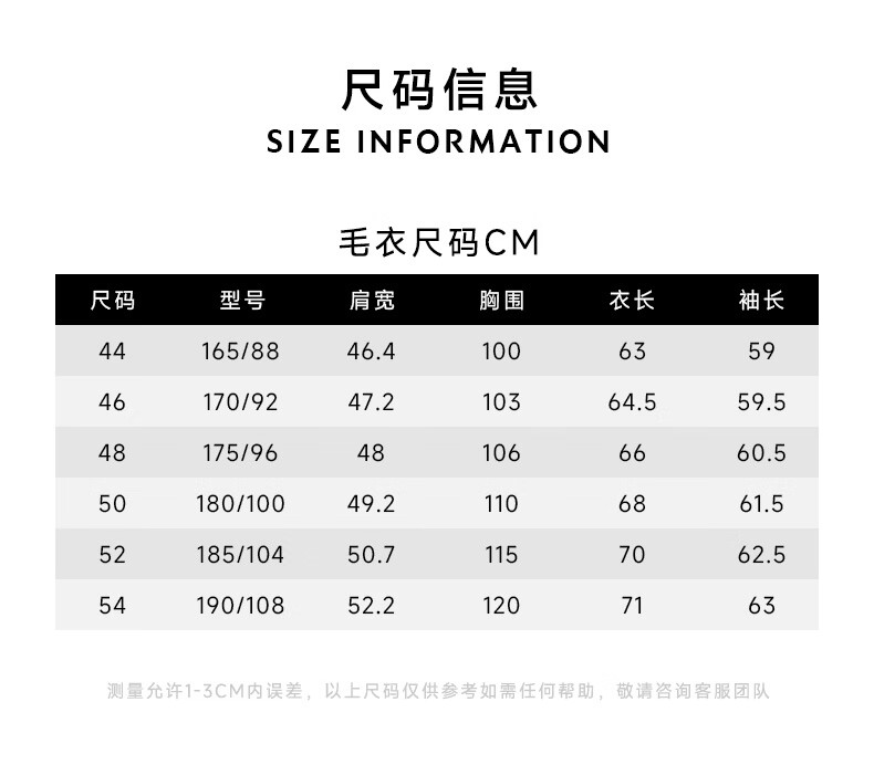 China (cm) 165 / 88-90 170 / 96-98 175 / 108-110 180 / 118-122 185 / 126-130